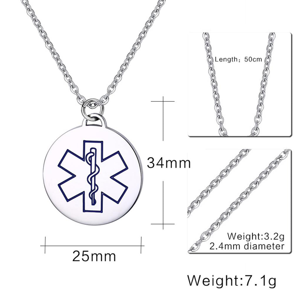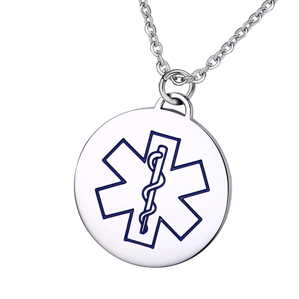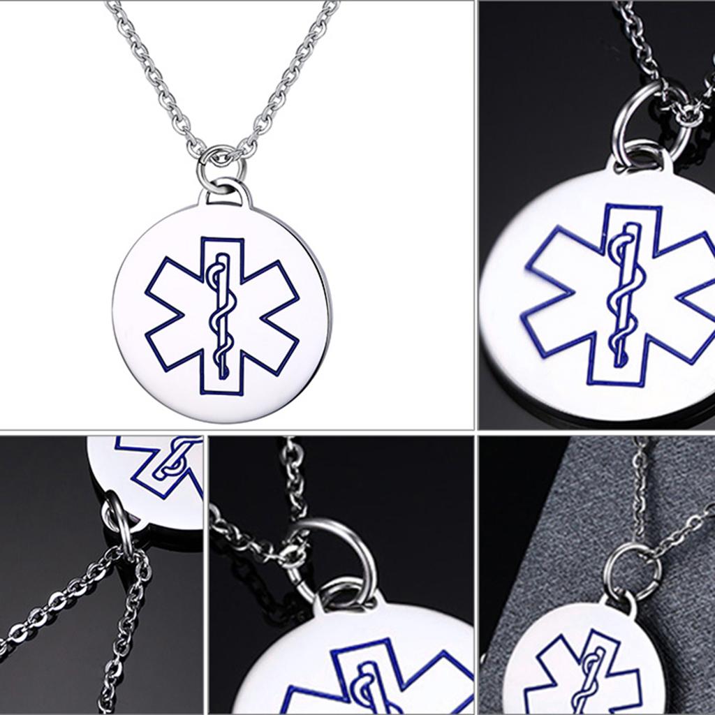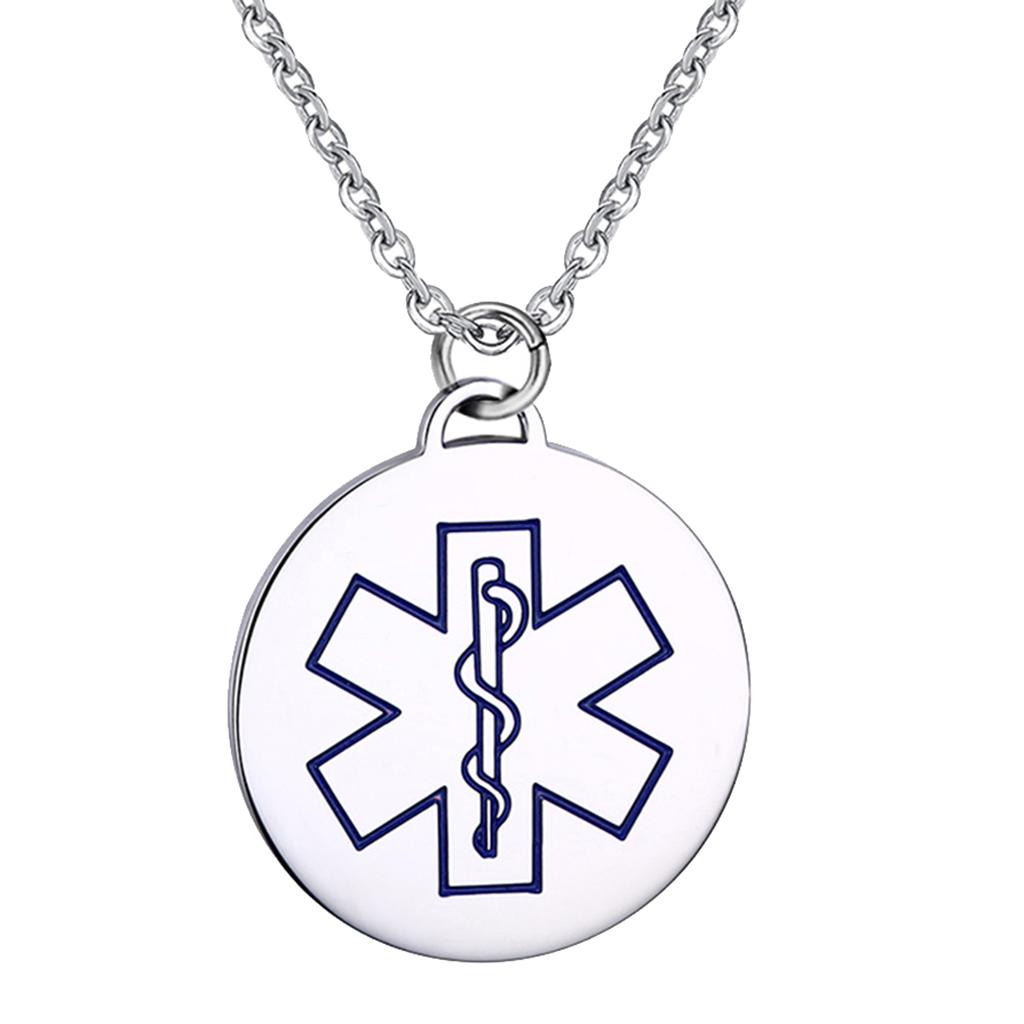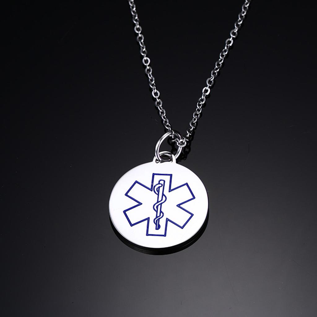 Medical Alert Identification Pendant Necklace with Medical Round Symbol Engraved