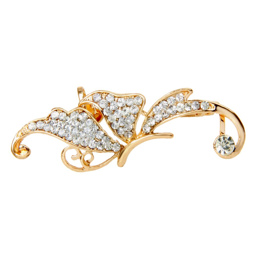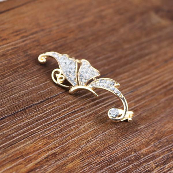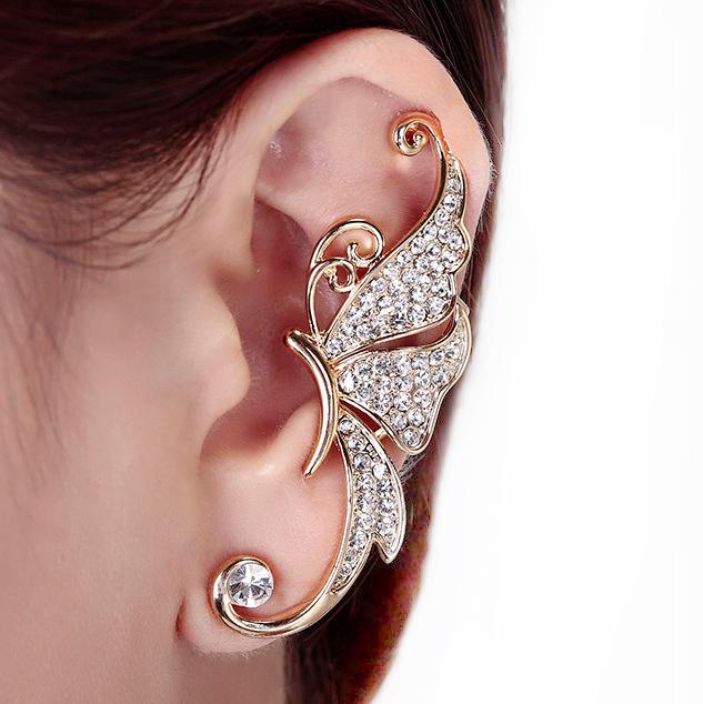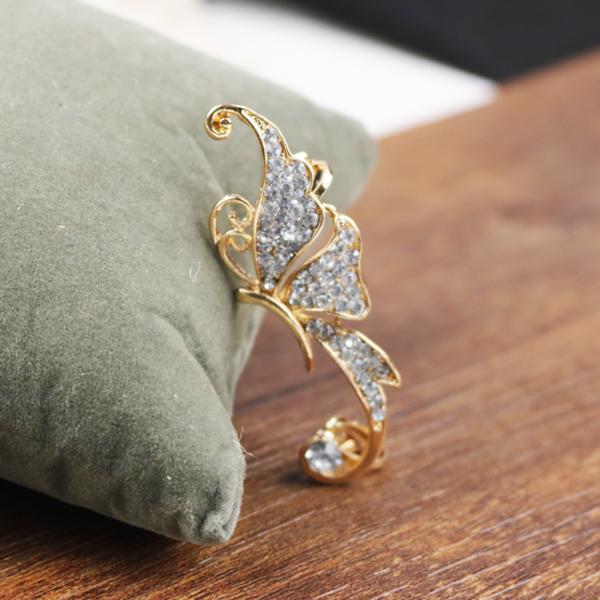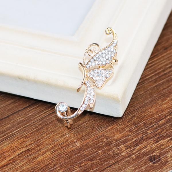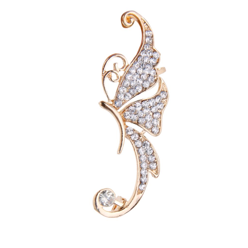 Charming Beautiful Women Rhinestone Crystal Butterfly Left Ear Cuff Clip on Earring Jewelry