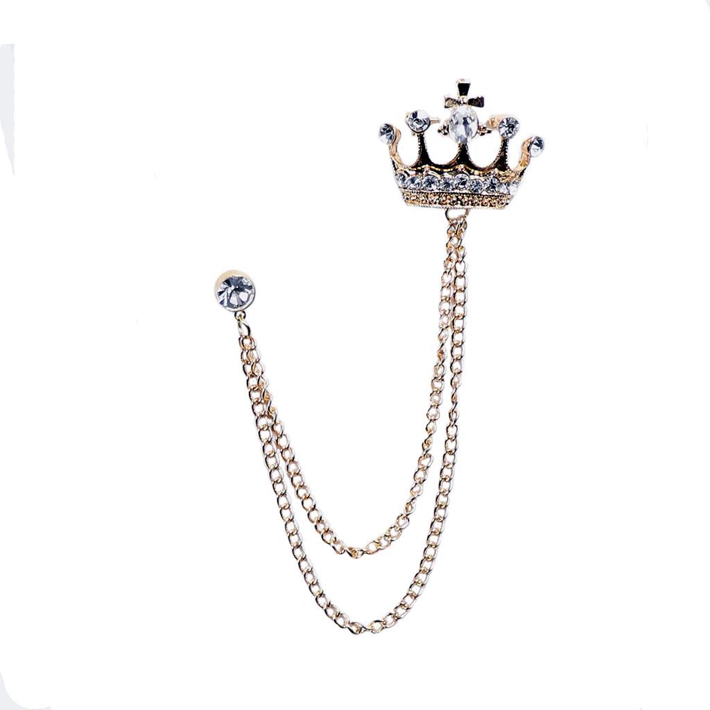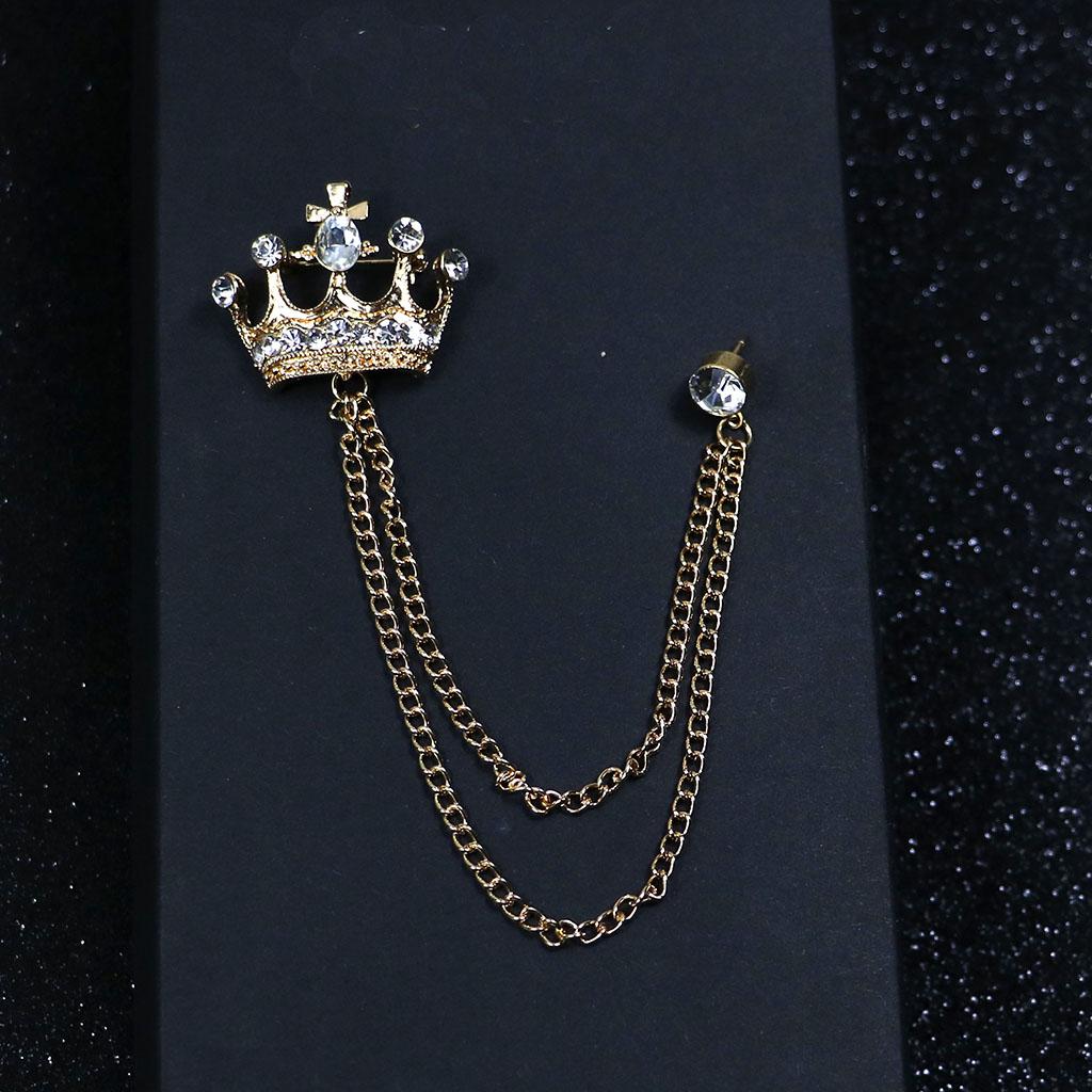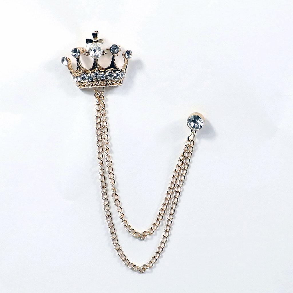 Stylish gold tassel style brooch with two chains ,3D crown and round crystal rhinestone