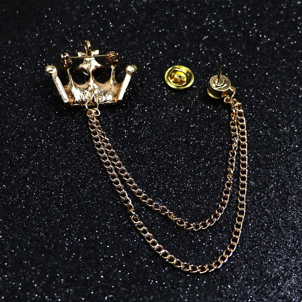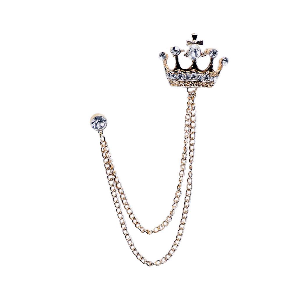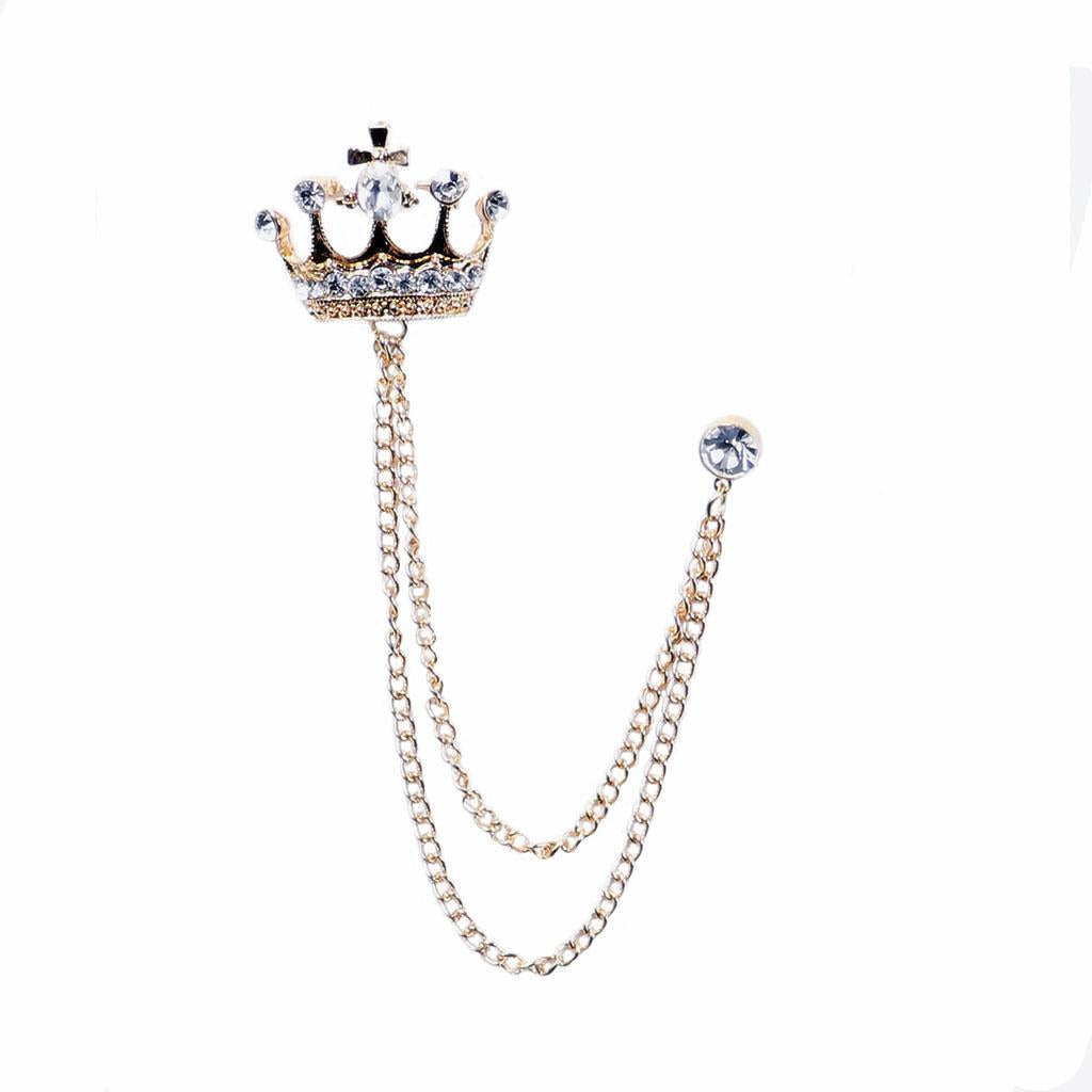 Stylish gold tassel style brooch with two chains ,3D crown and round crystal rhinestone