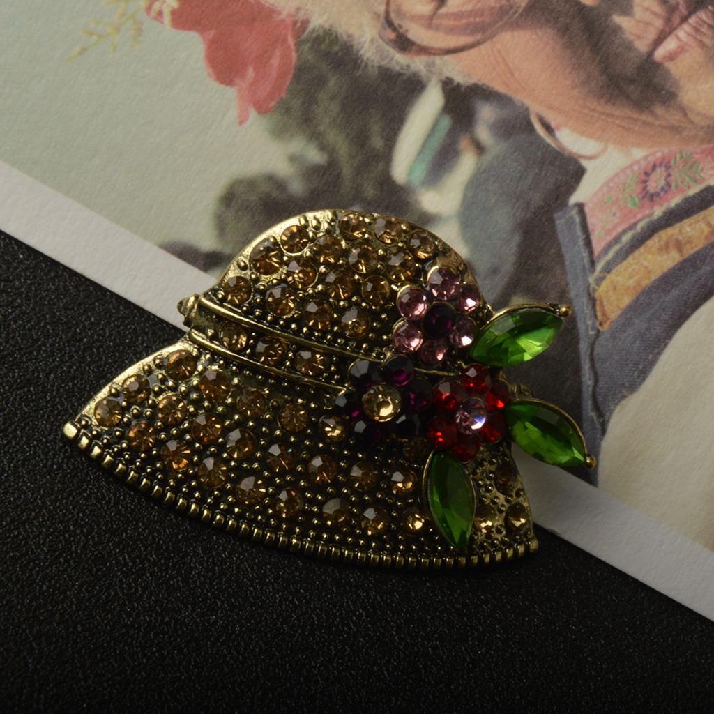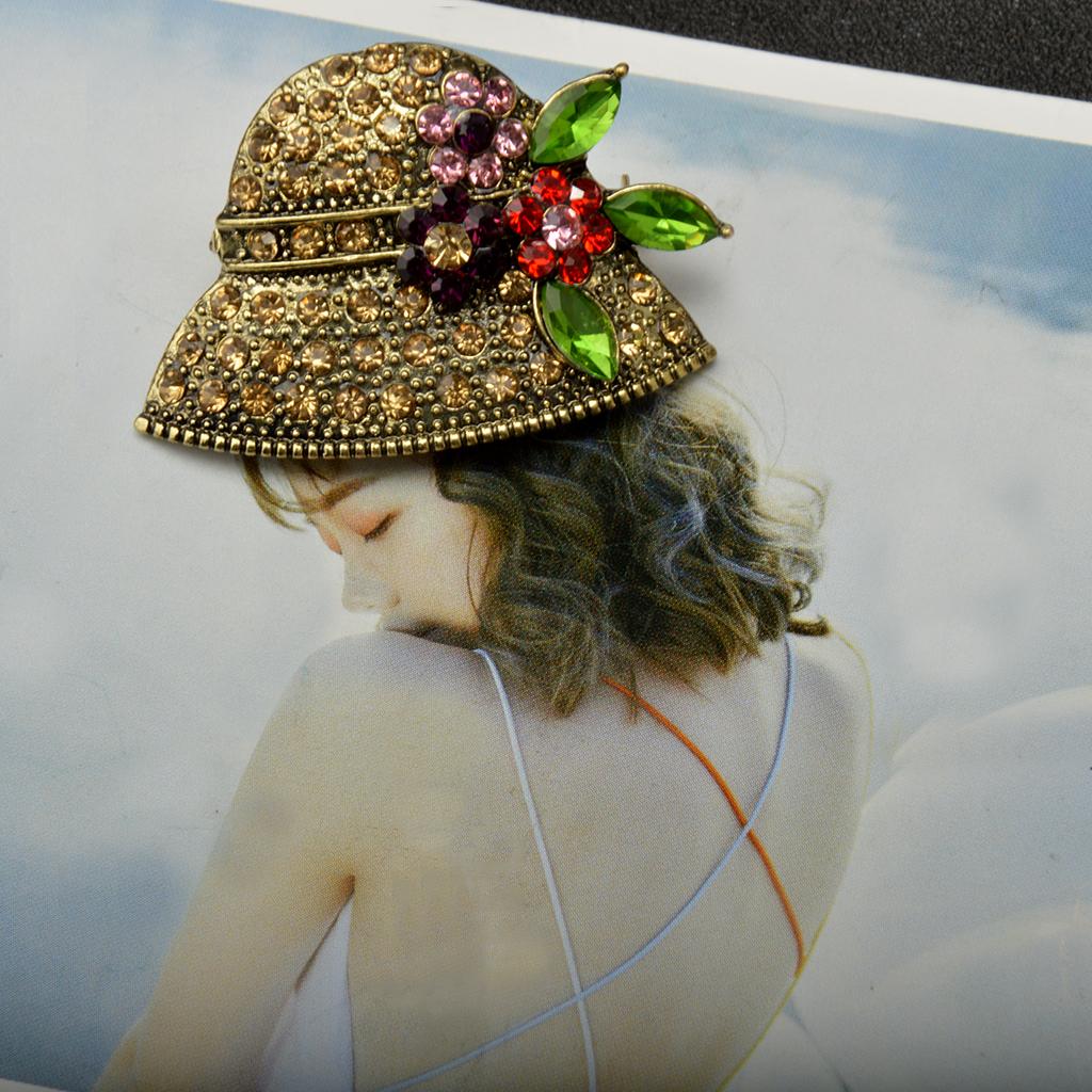 Charming Jewelry Retro Gold Hat Shape Crystal Clothing Accessory Brooch Pin