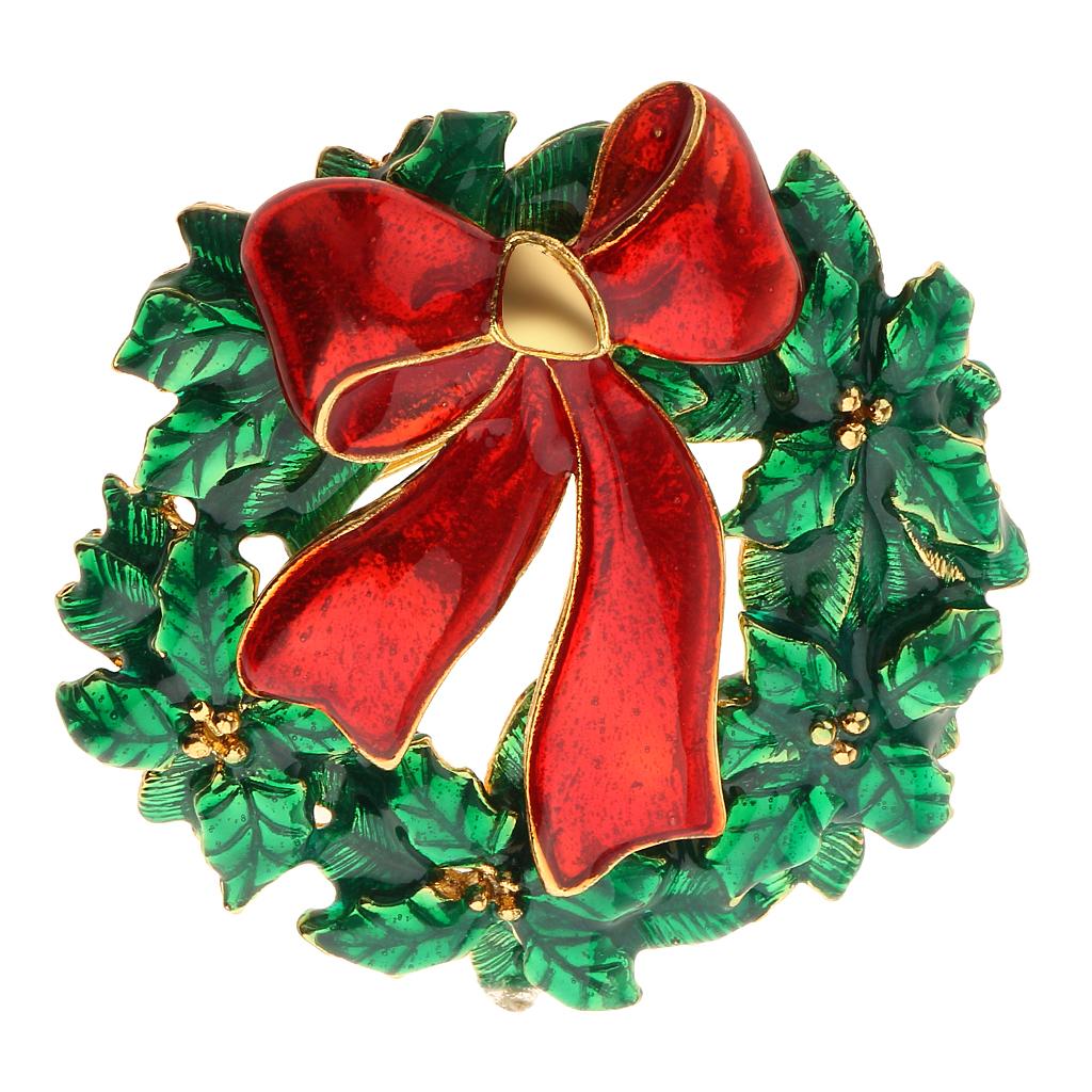 Christmas Custom Fit Green Flower Red Kont Shaped Enamel Pins Brooch Pin & Jewelry Pendant 4cm for Child Adult