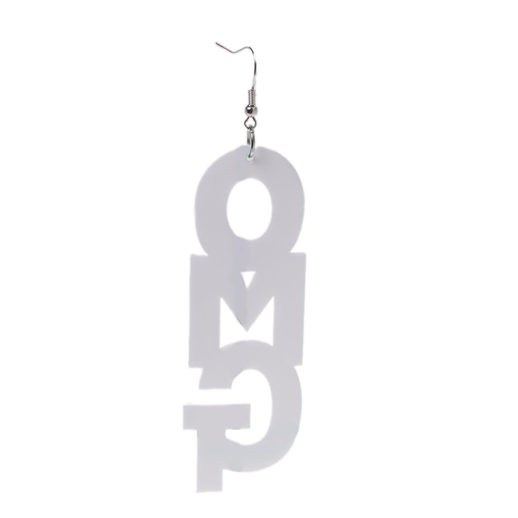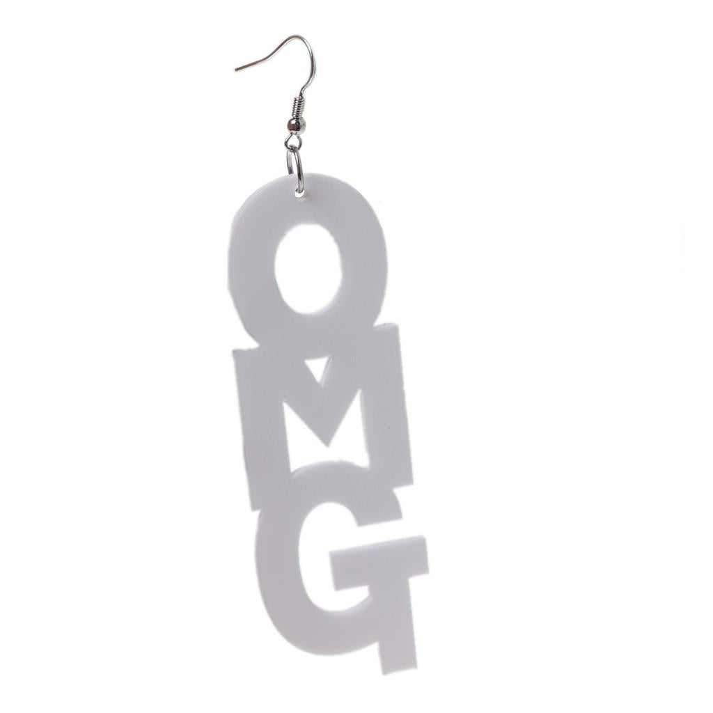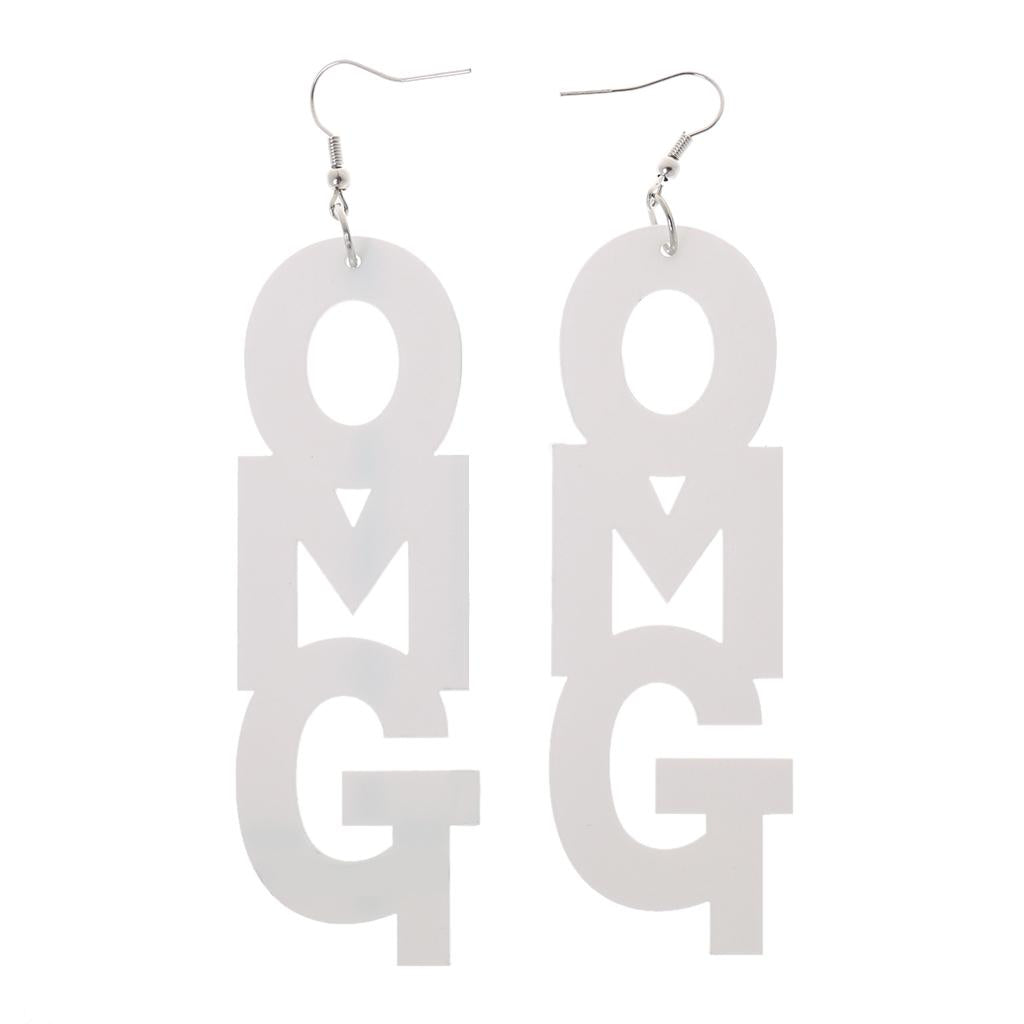 Cool Acrylic Large OMG Letters Dangle Drop Earring Hip Hop Accessory-White