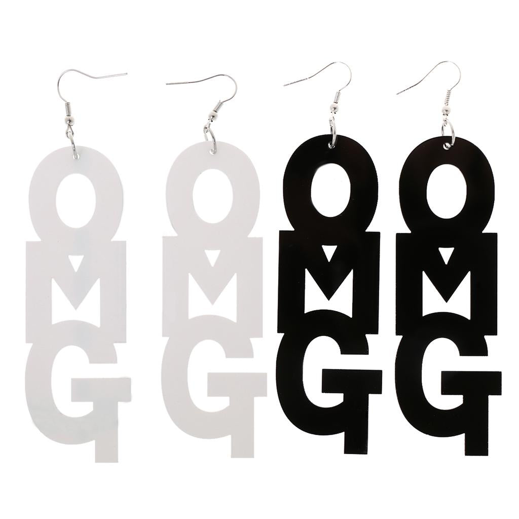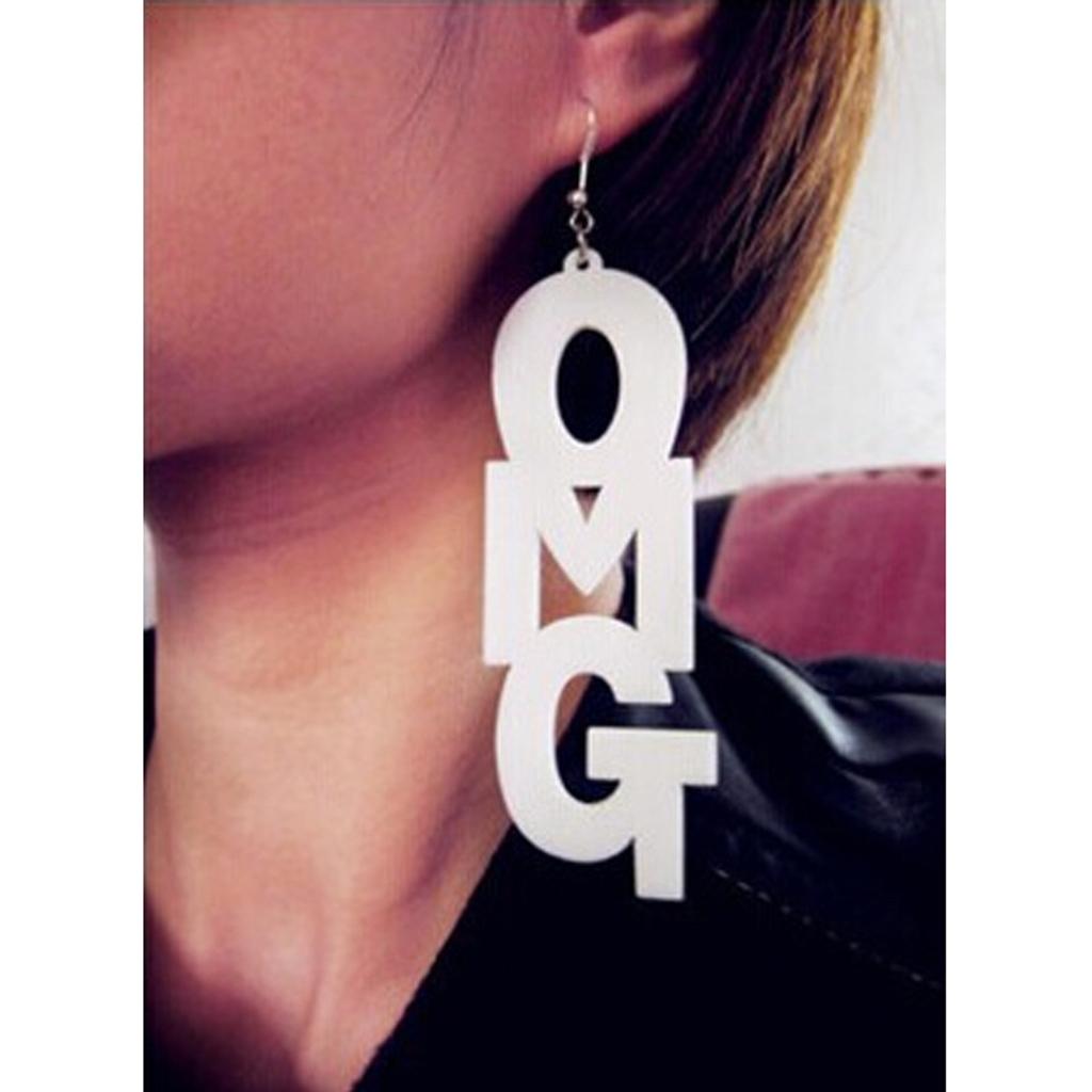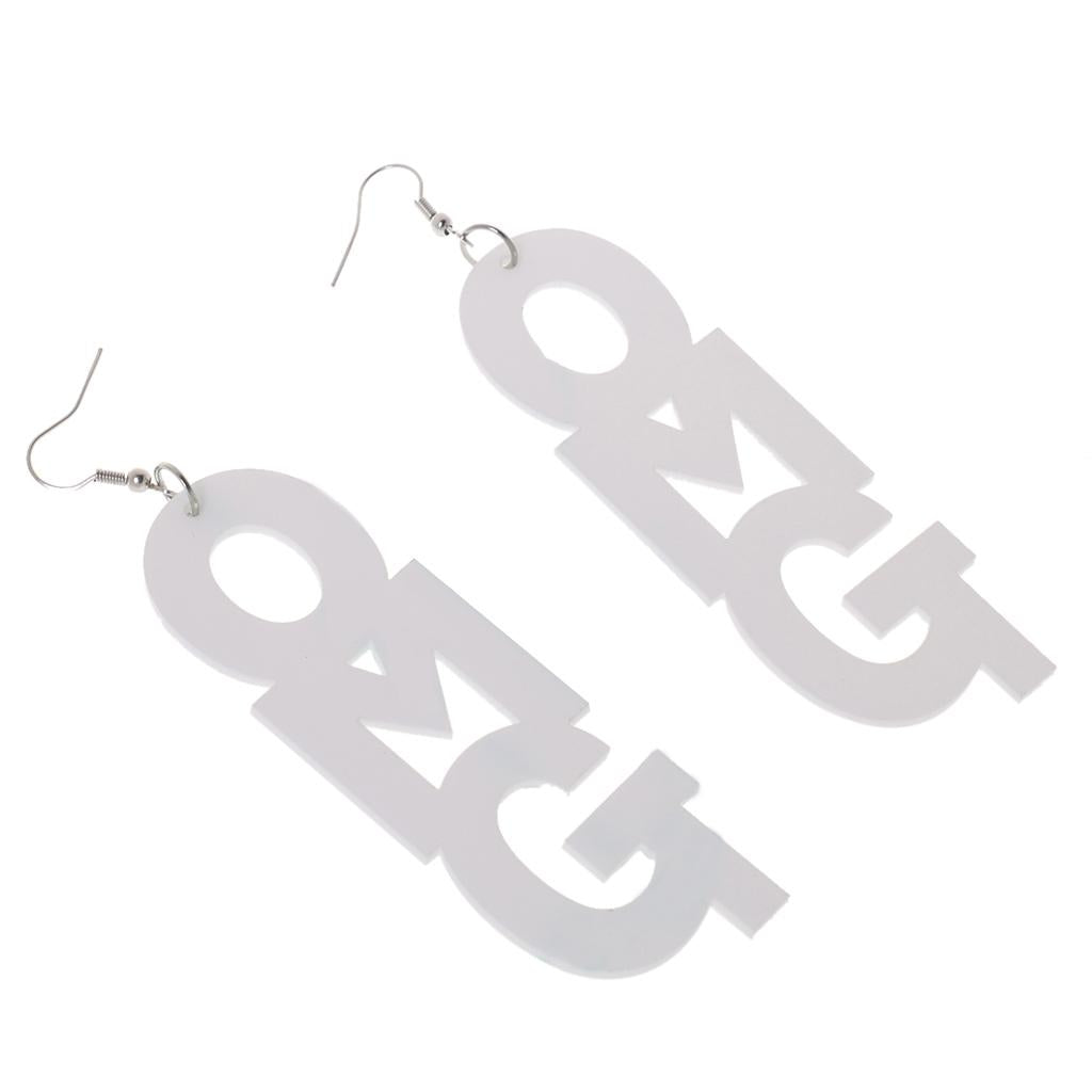 Cool Acrylic Large OMG Letters Dangle Drop Earring Hip Hop Accessory-White
