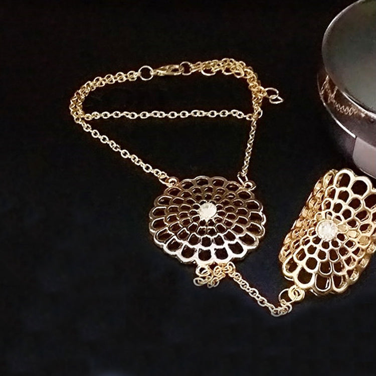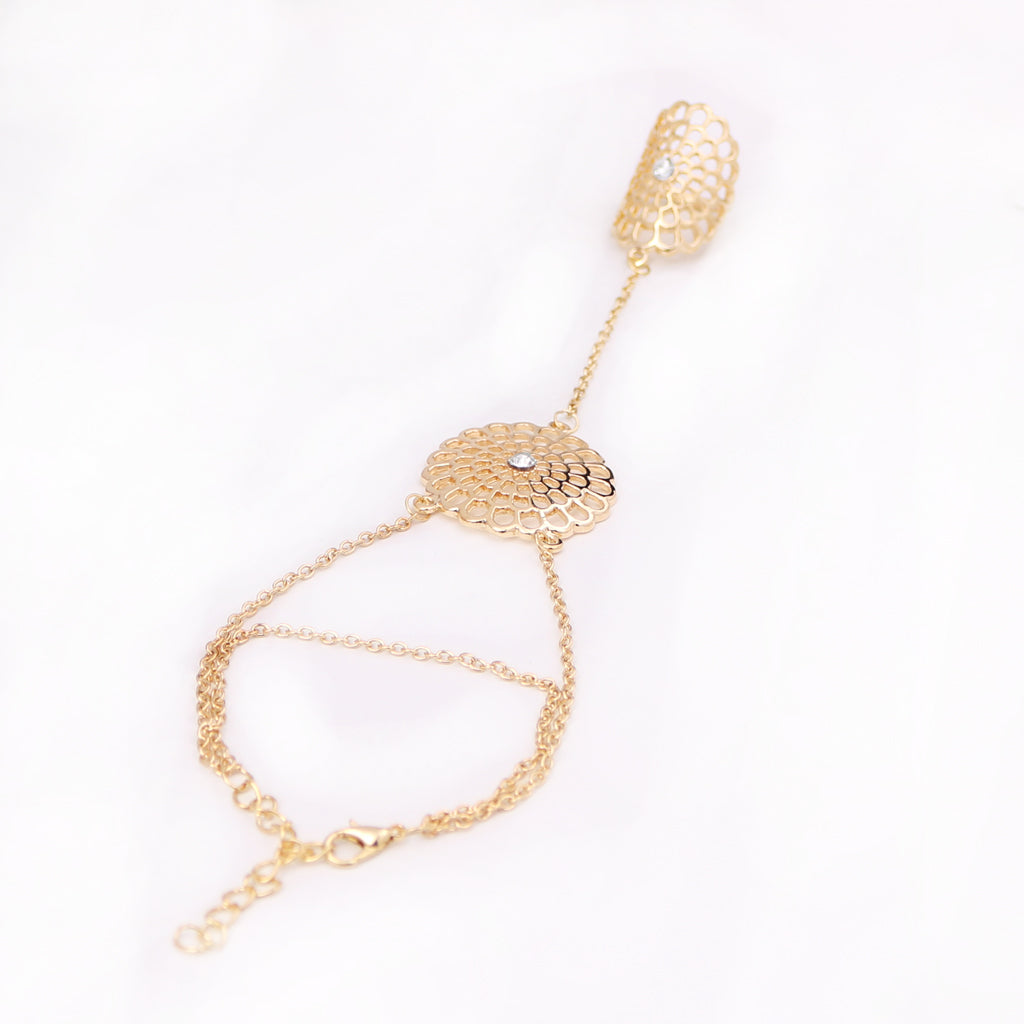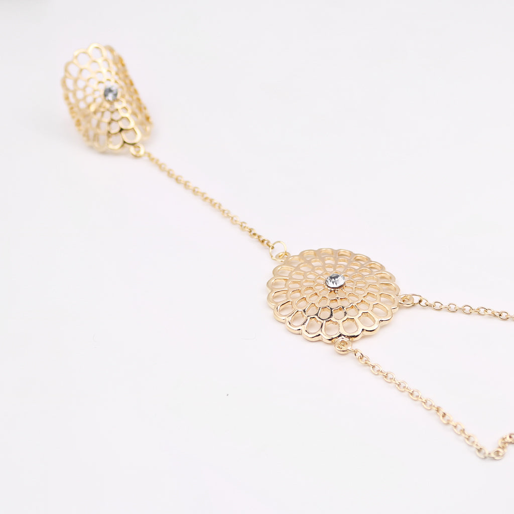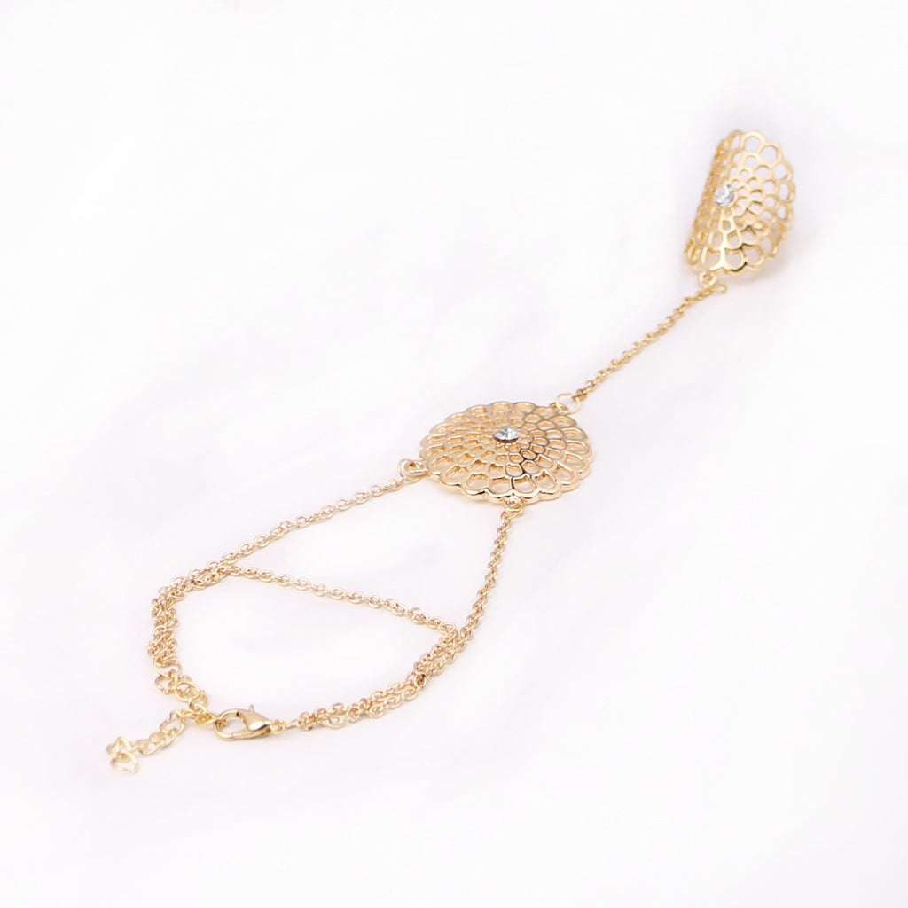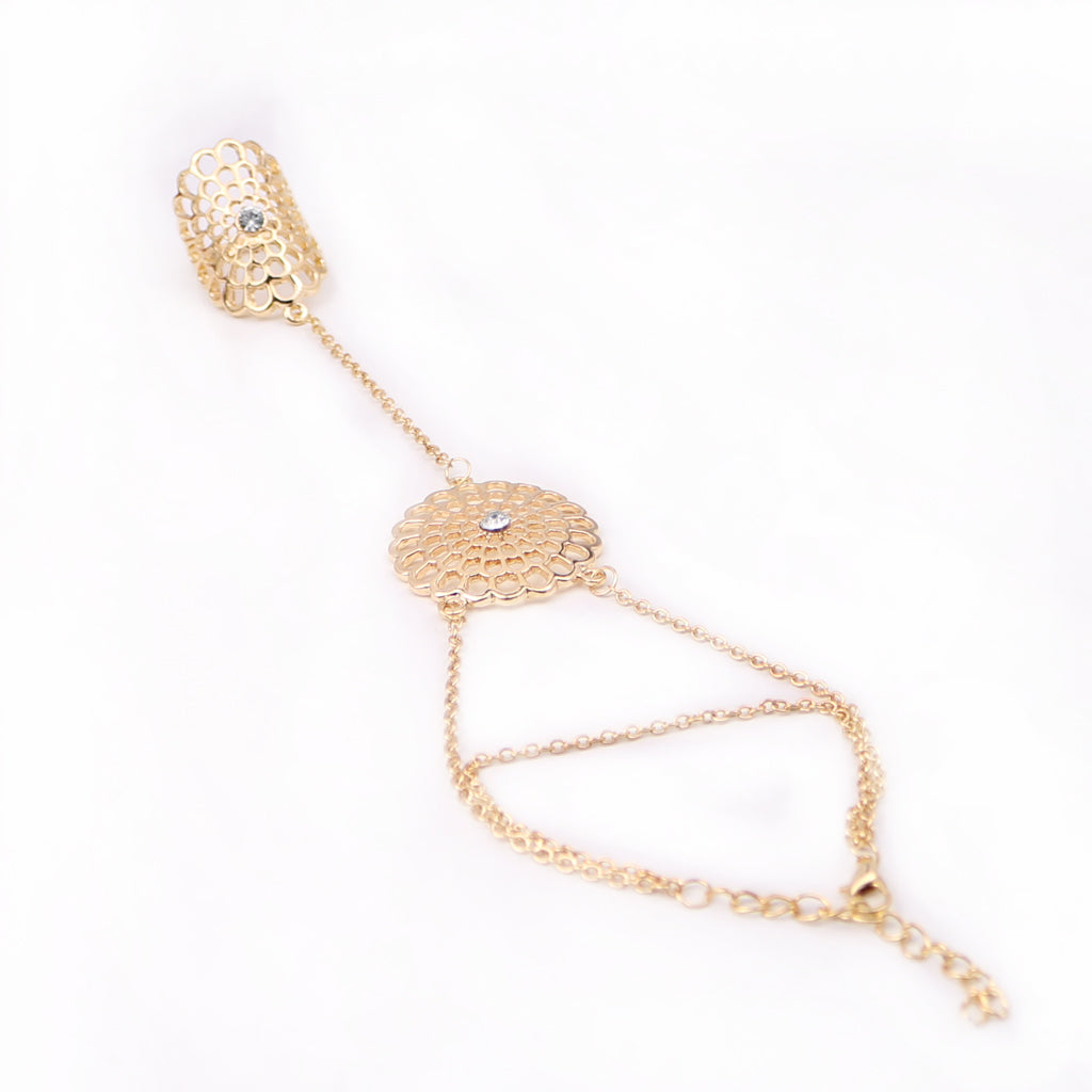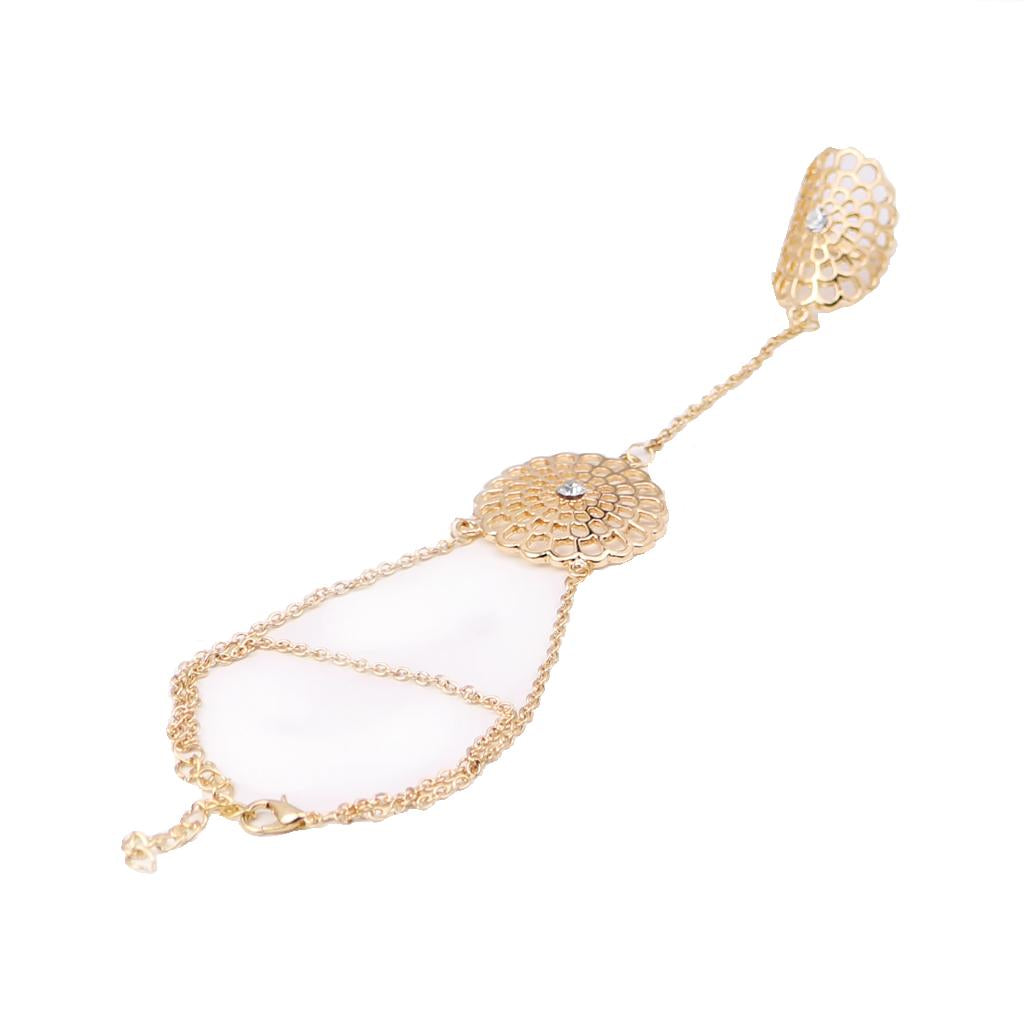 Crystal Bracelet Bangle Slave Chain Link Finger Ring Hand Harness Gold