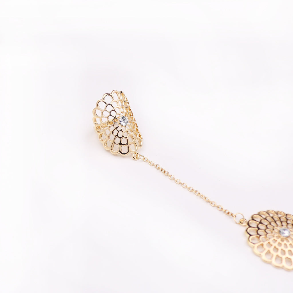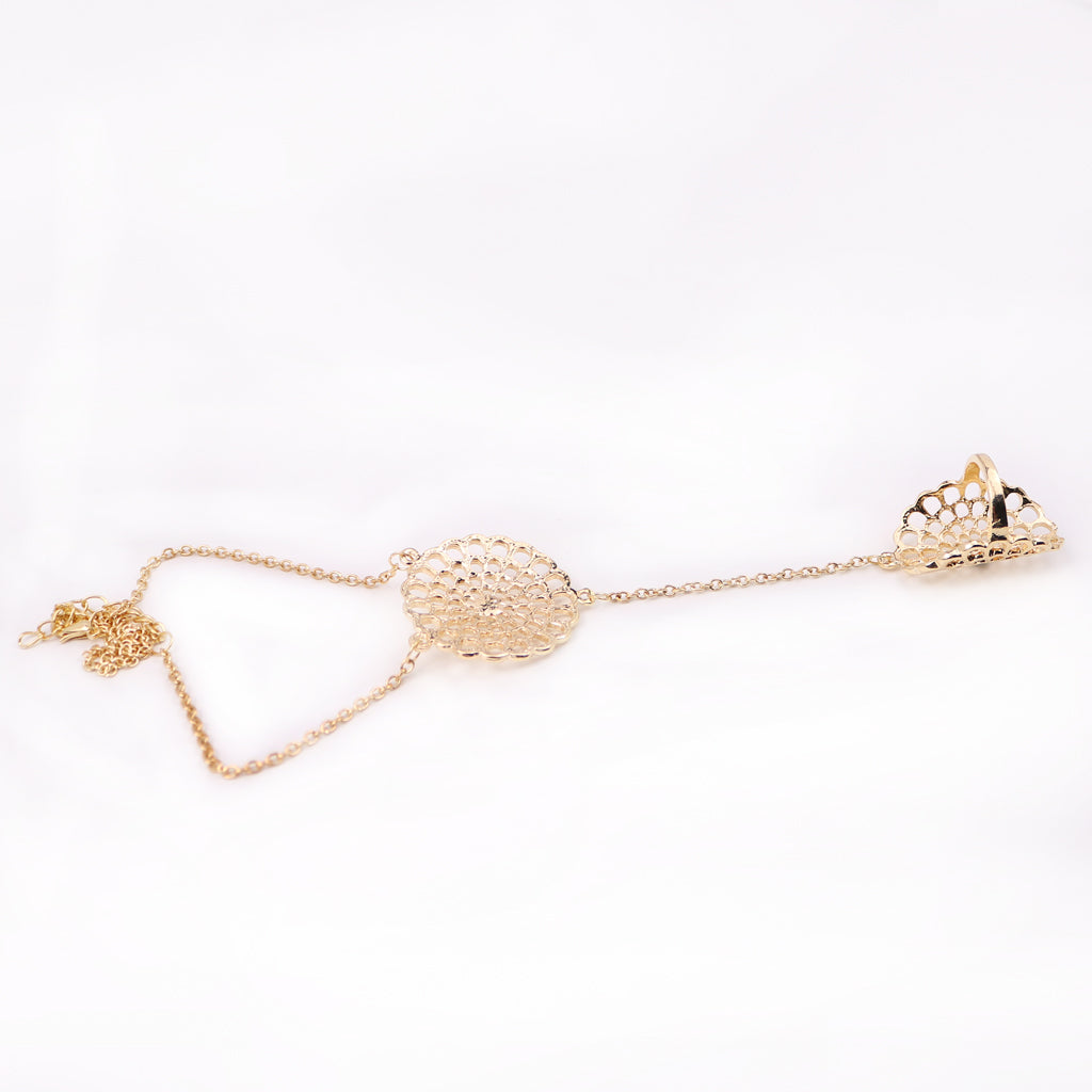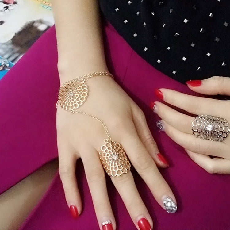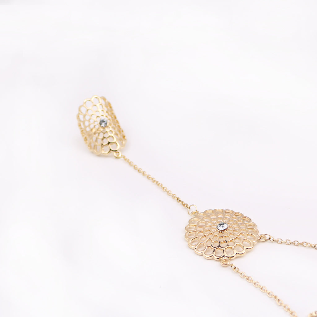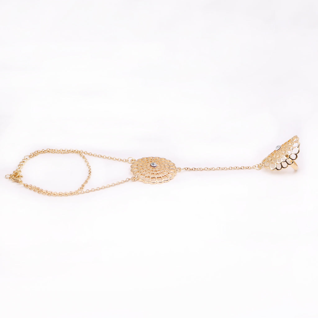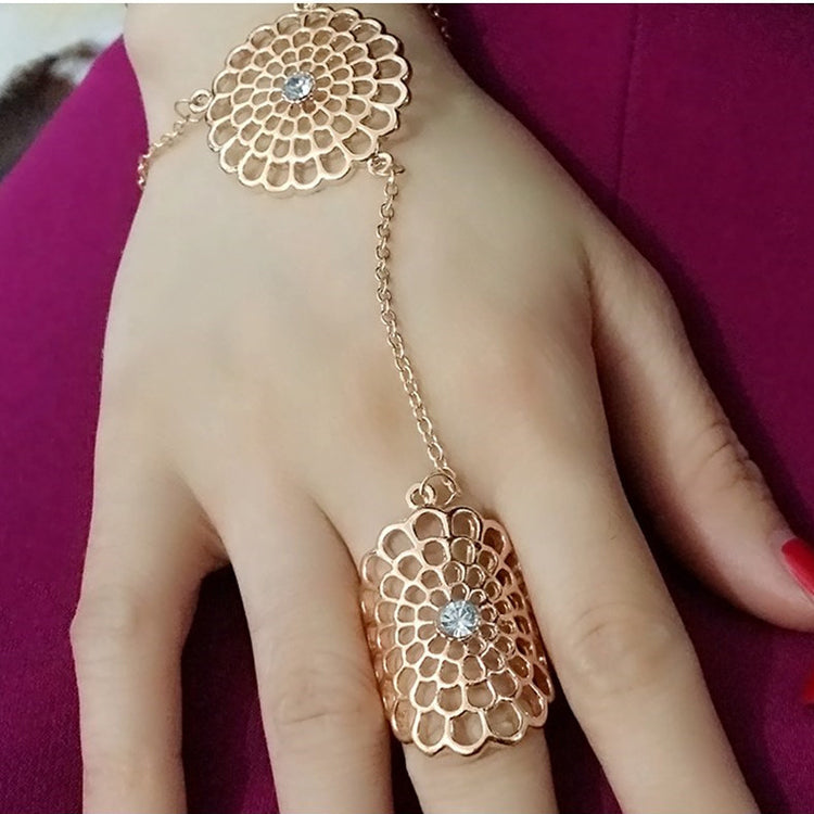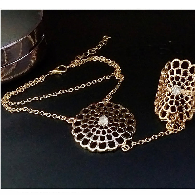 Crystal Bracelet Bangle Slave Chain Link Finger Ring Hand Harness Gold