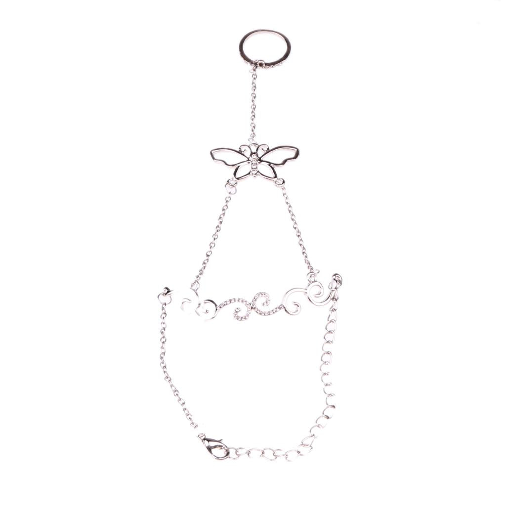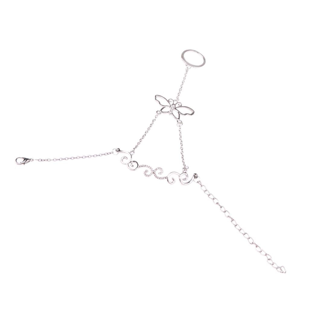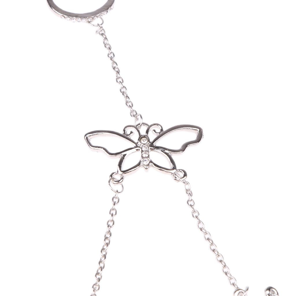 Crystal Butterfly Bracelet Slave Chain Link Finger Ring Hand Harness Silver