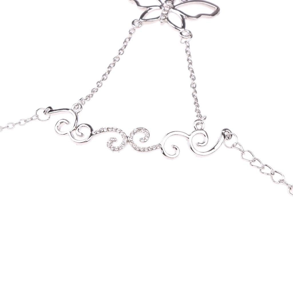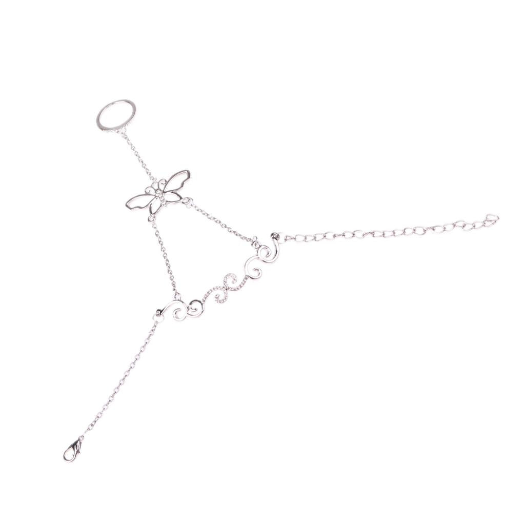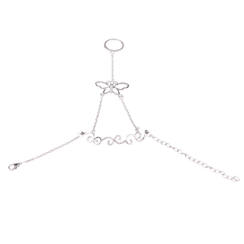 Crystal Butterfly Bracelet Slave Chain Link Finger Ring Hand Harness Silver