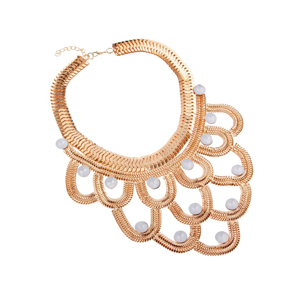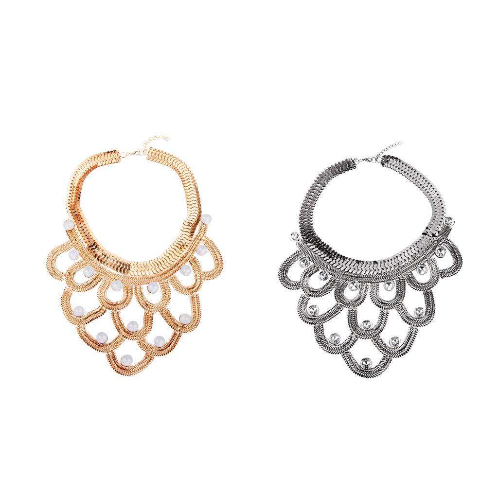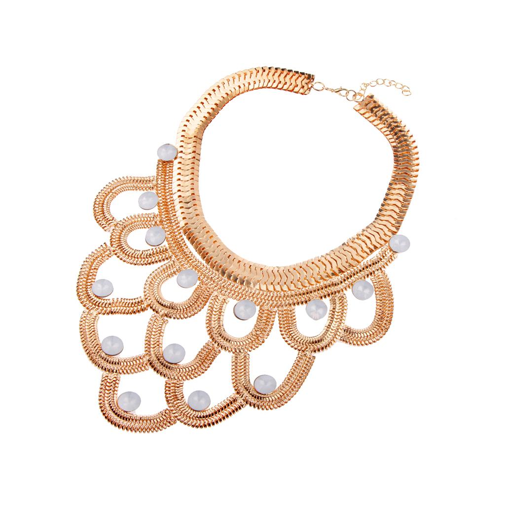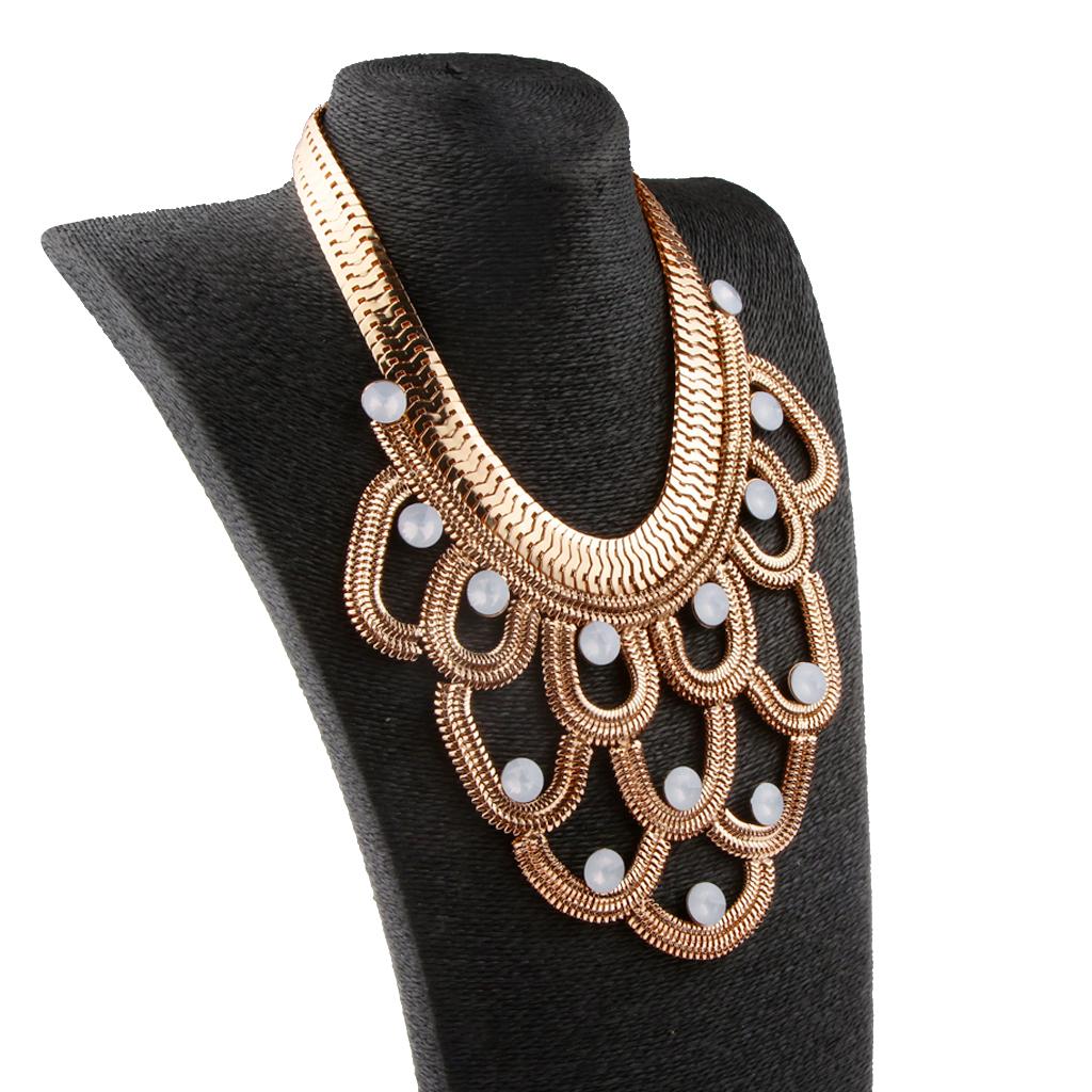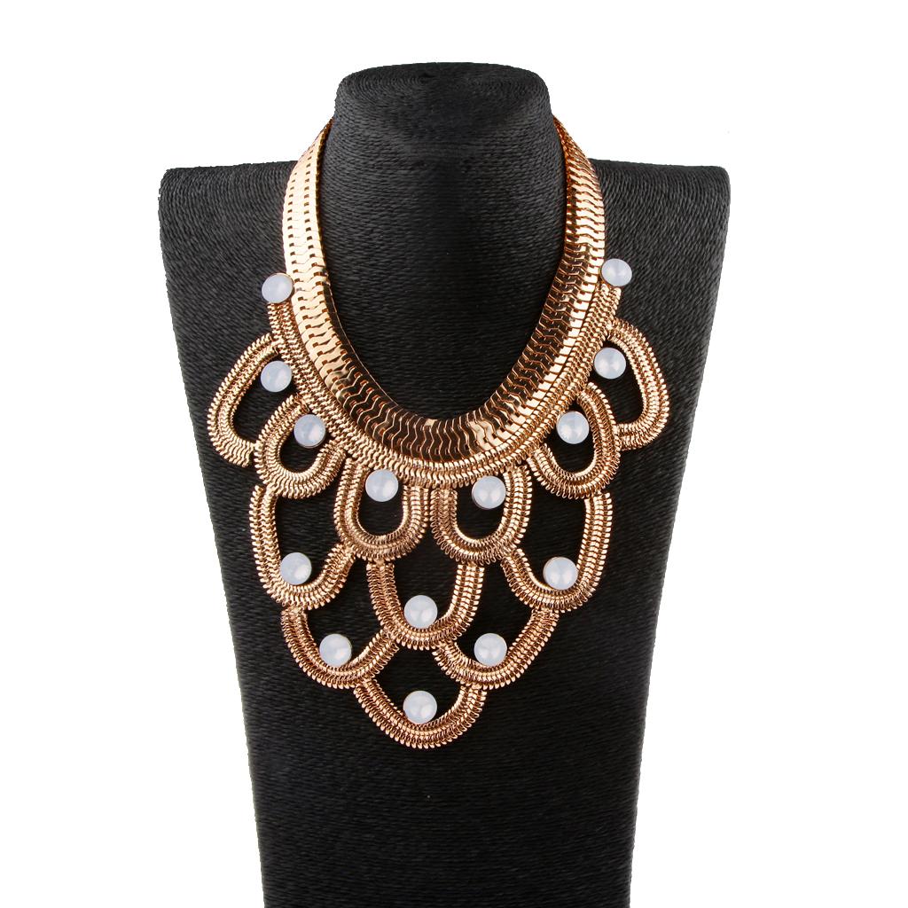 Crystal Geometric Statement Necklace Chunky Bubble Choker Bib Collar-Gold