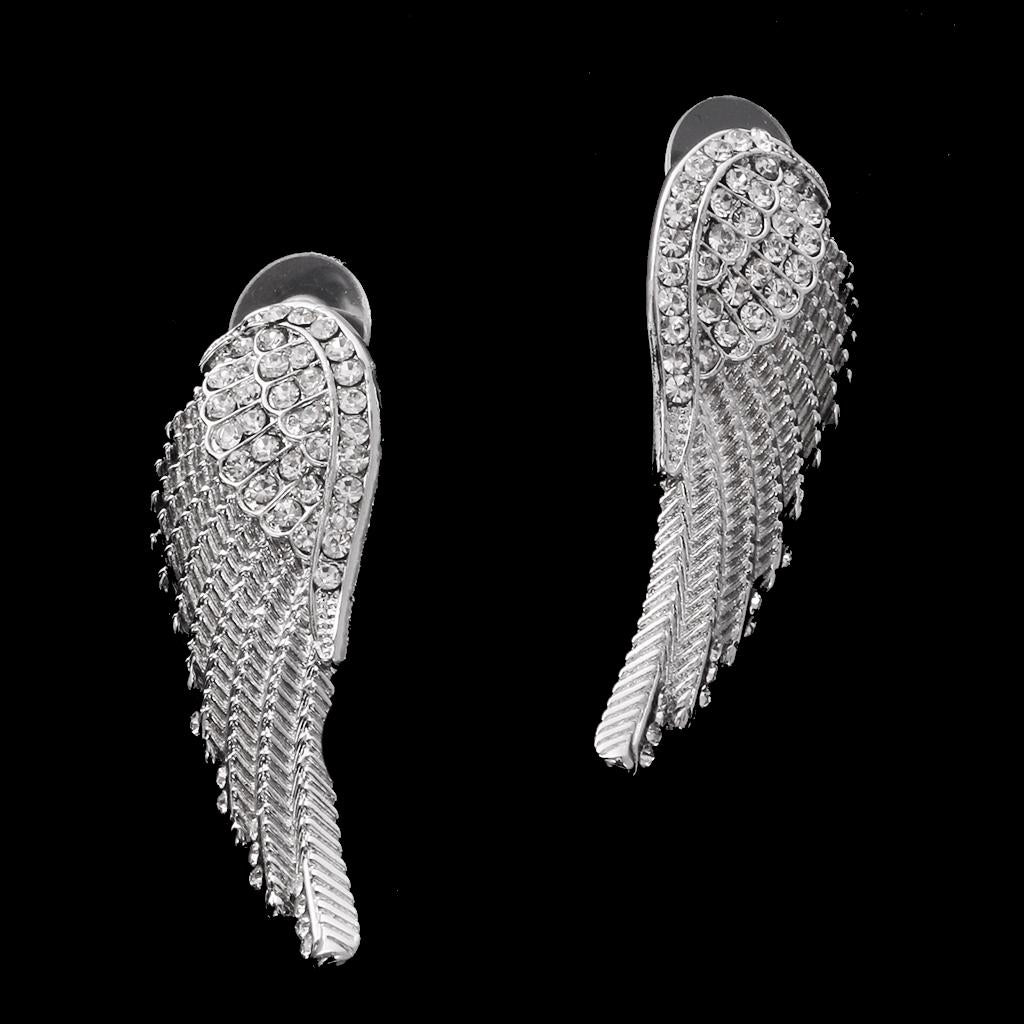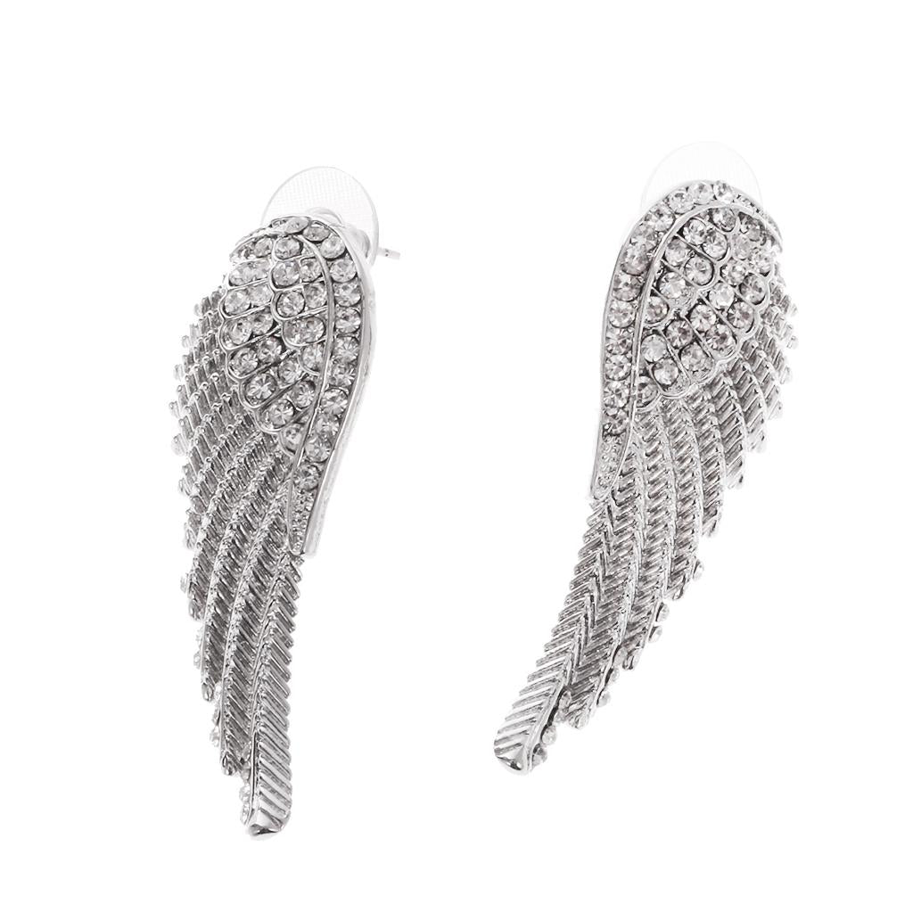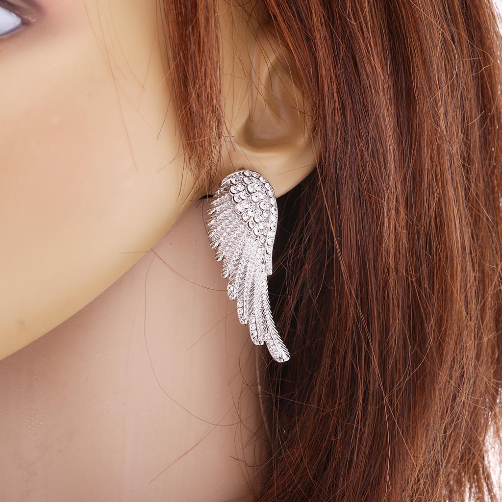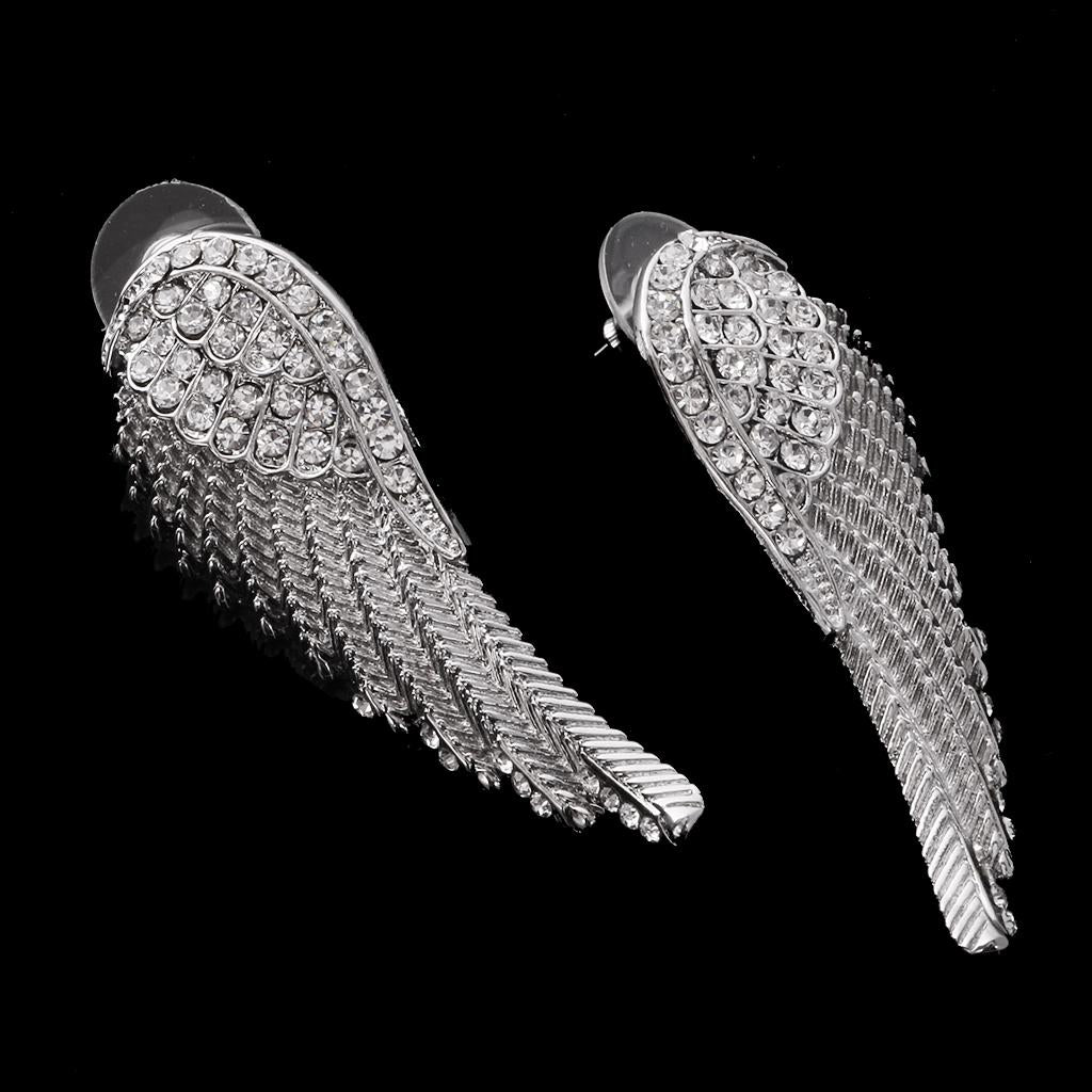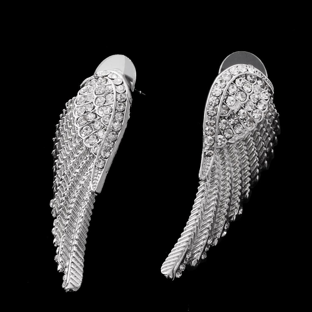 Women's Crystal Rhinesotne Large Angel Wing Drop Dangle Earrings Ear Studs