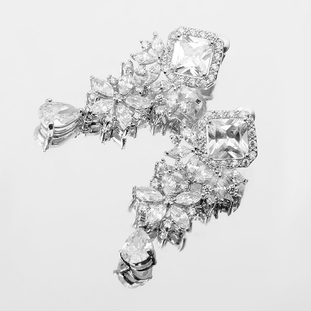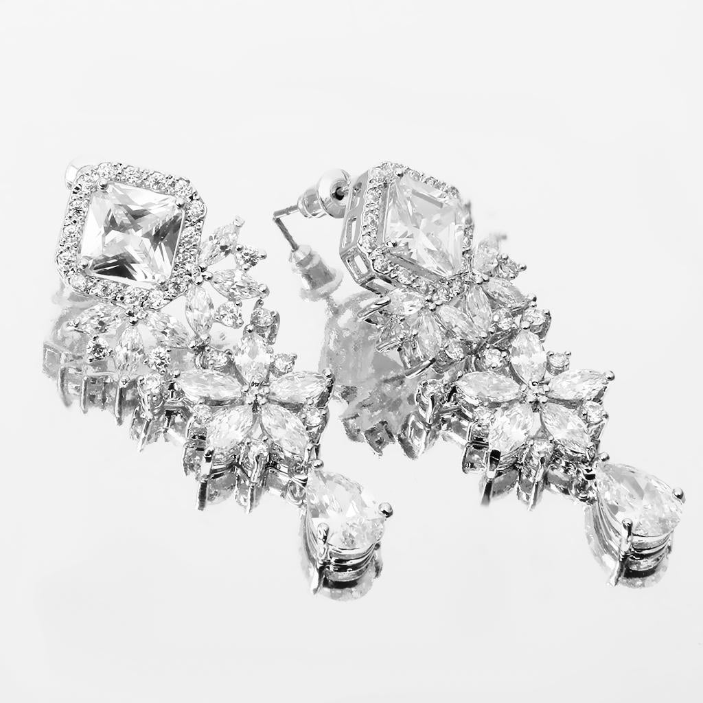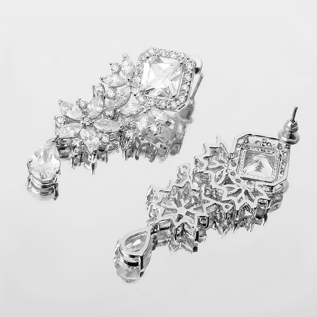 Crystal Rhinsetone Flower Design Dangle Earrings for Women