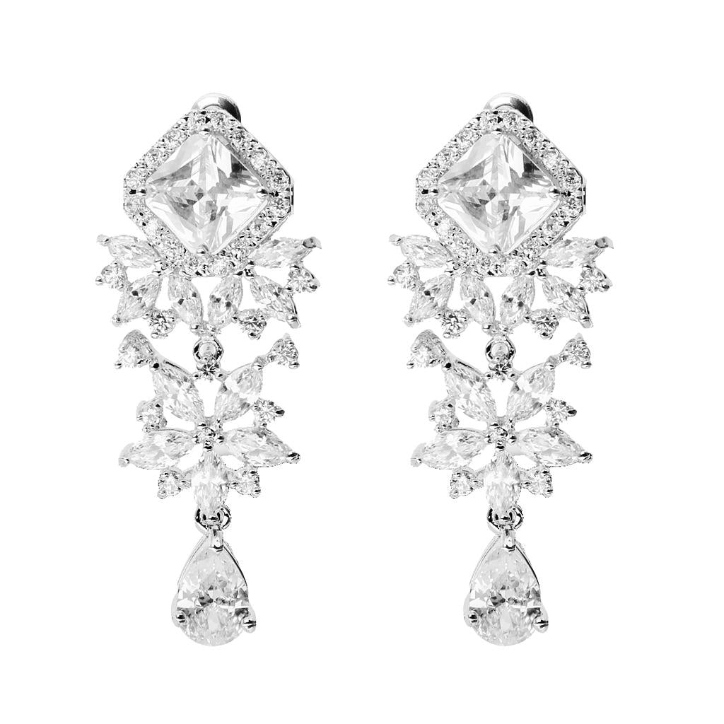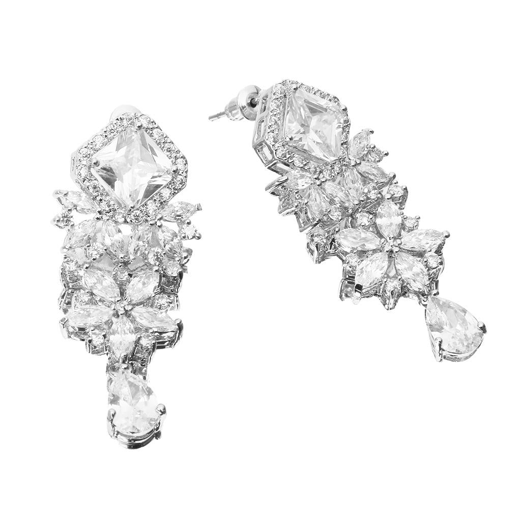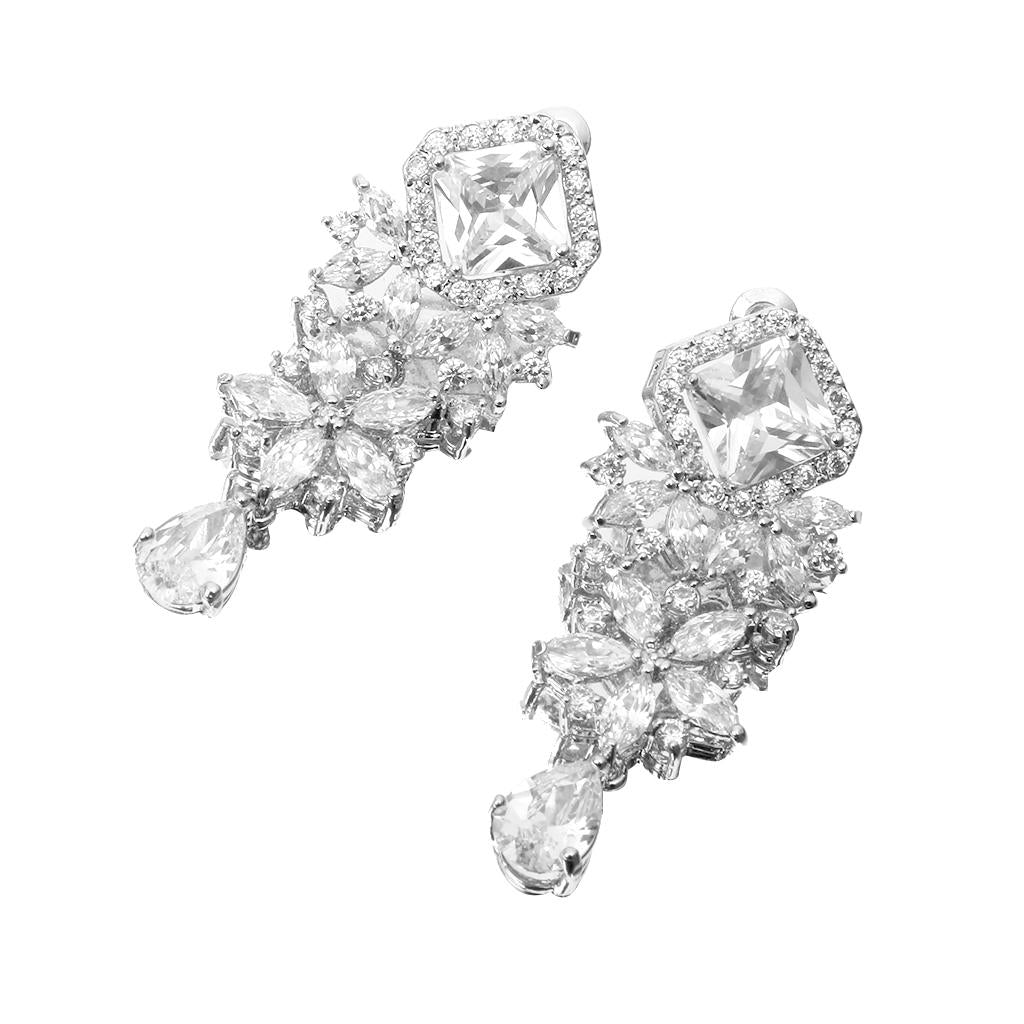 Crystal Rhinsetone Flower Design Dangle Earrings for Women
