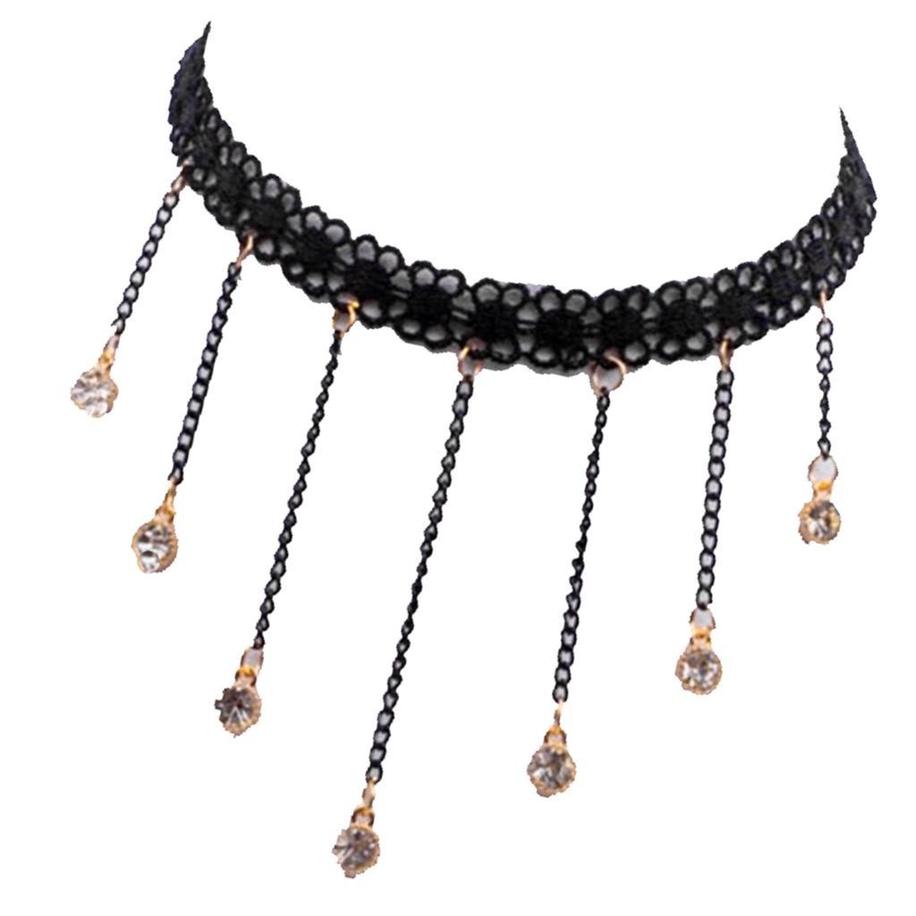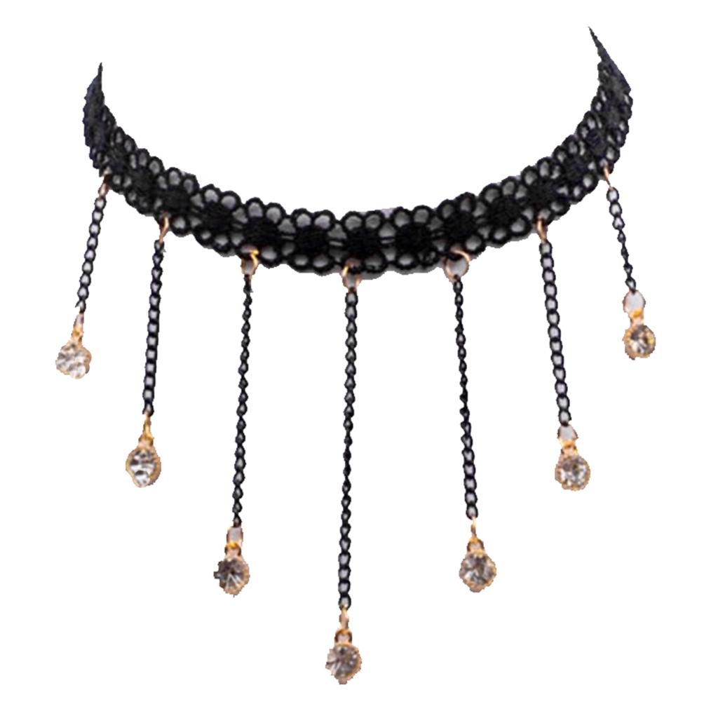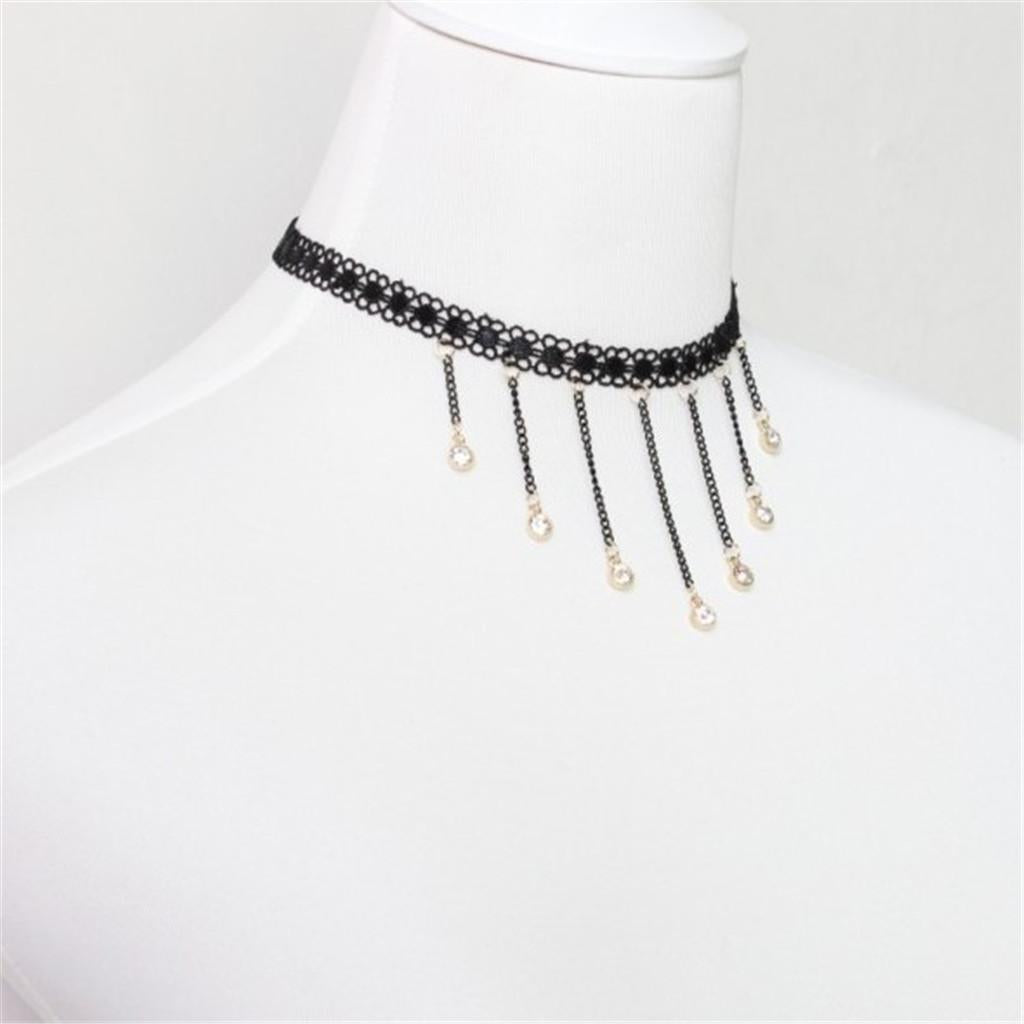 Cute Flower Lace Choker Gothic Necklace Crystal Tassel Pendant Lady Jewelry