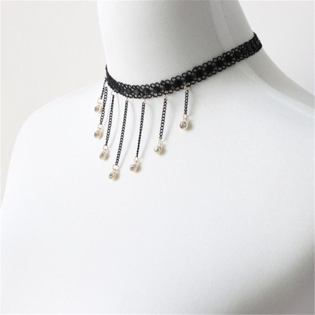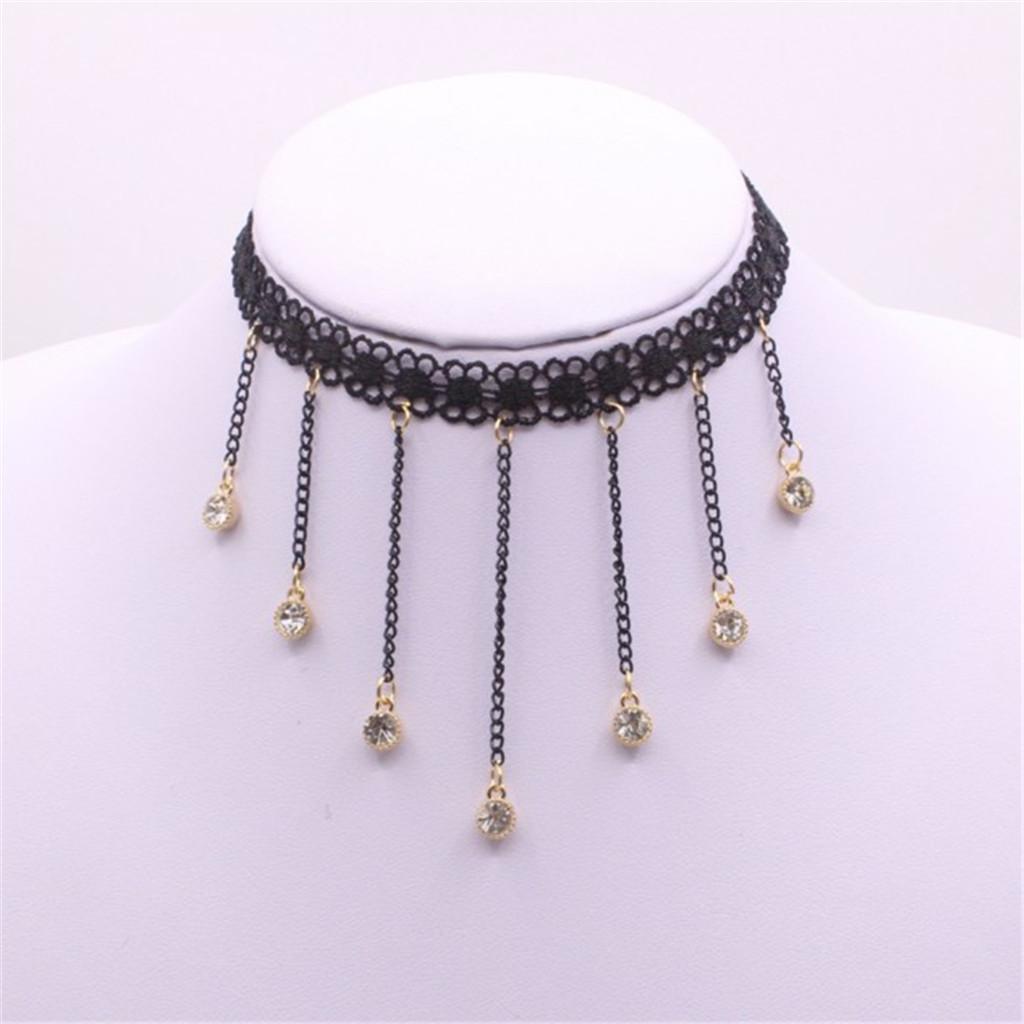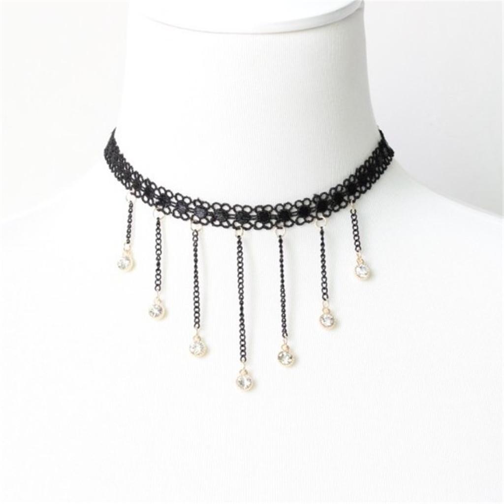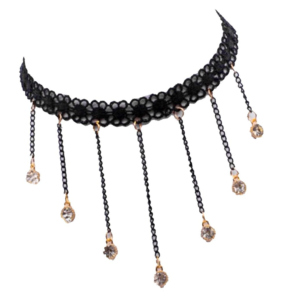 Cute Flower Lace Choker Gothic Necklace Crystal Tassel Pendant Lady Jewelry