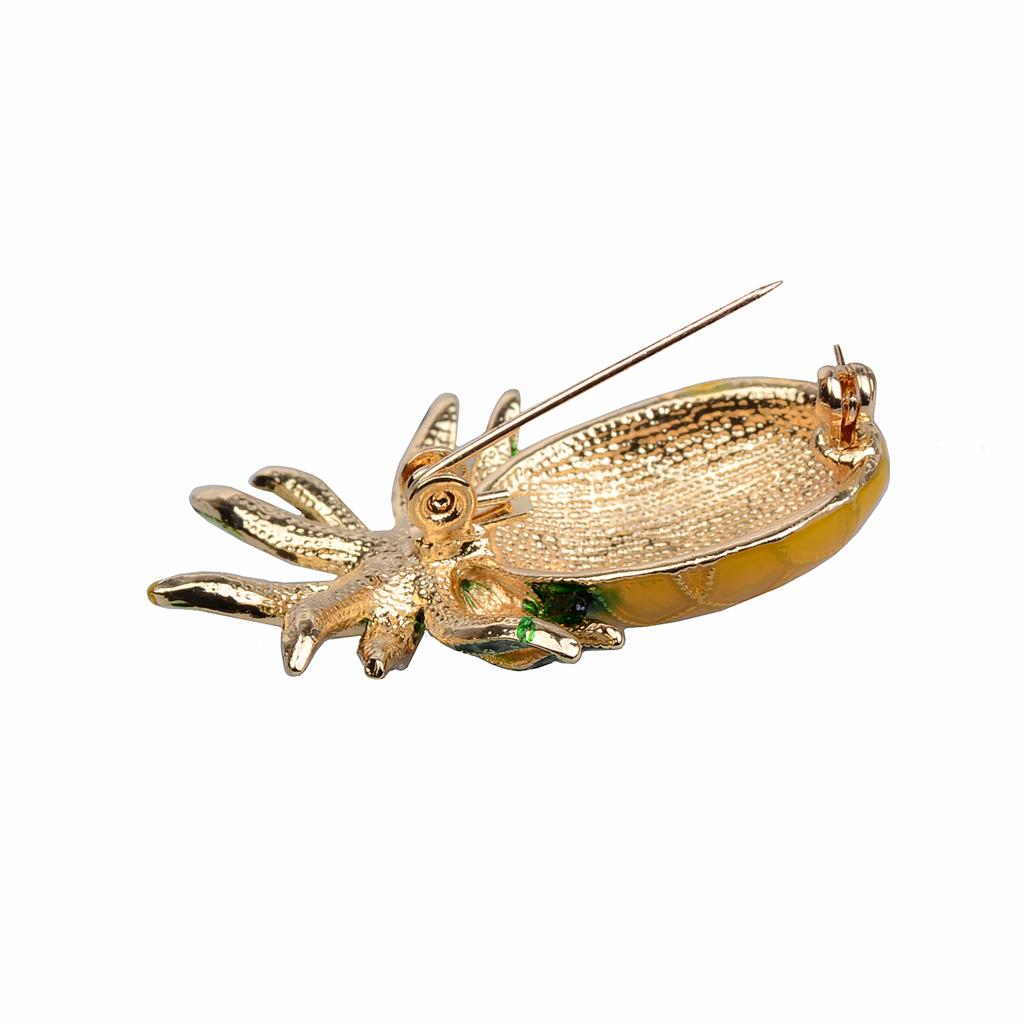 Brooch pin with gold enamel color rhinestones tropical pineapple fruit design.