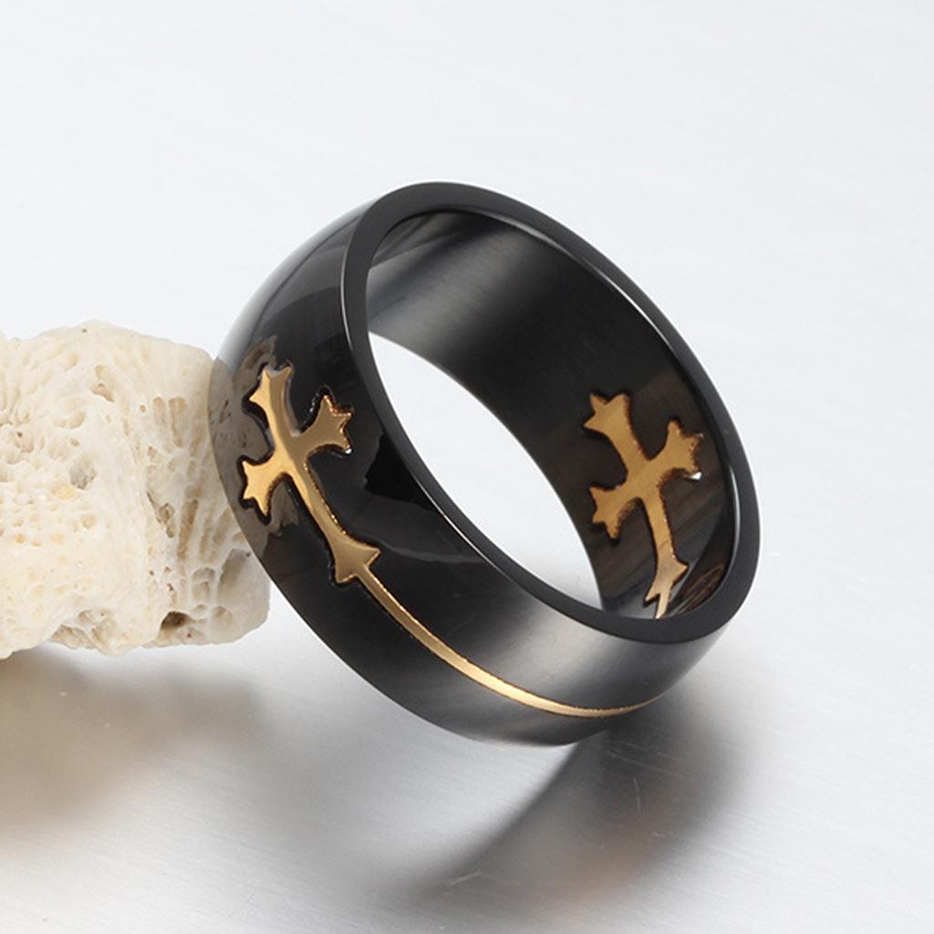 Detachable Black Gold Stainless Steel Cross Finger Ring US size 9