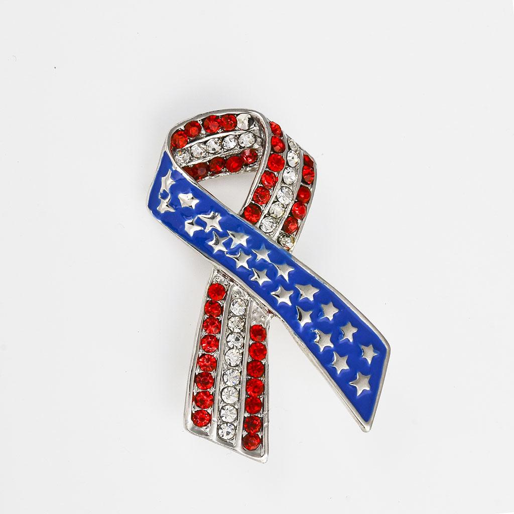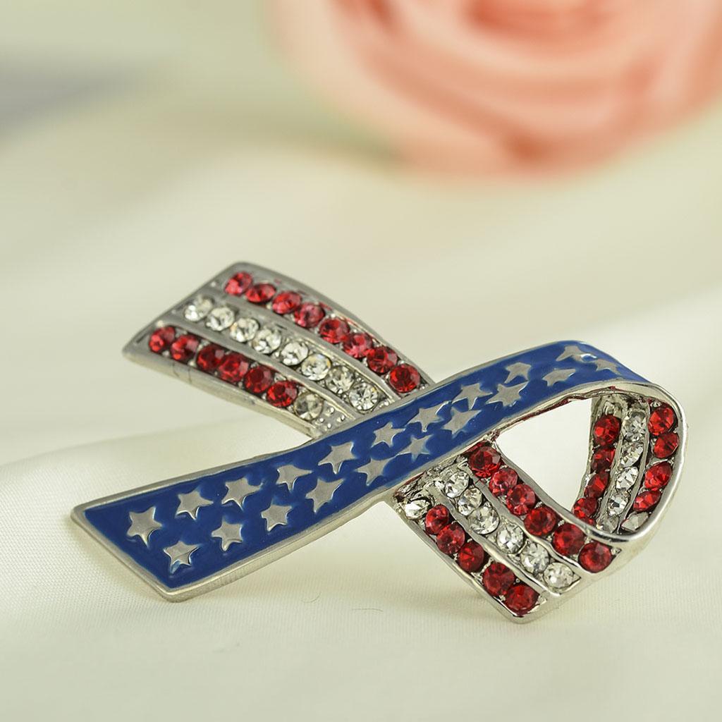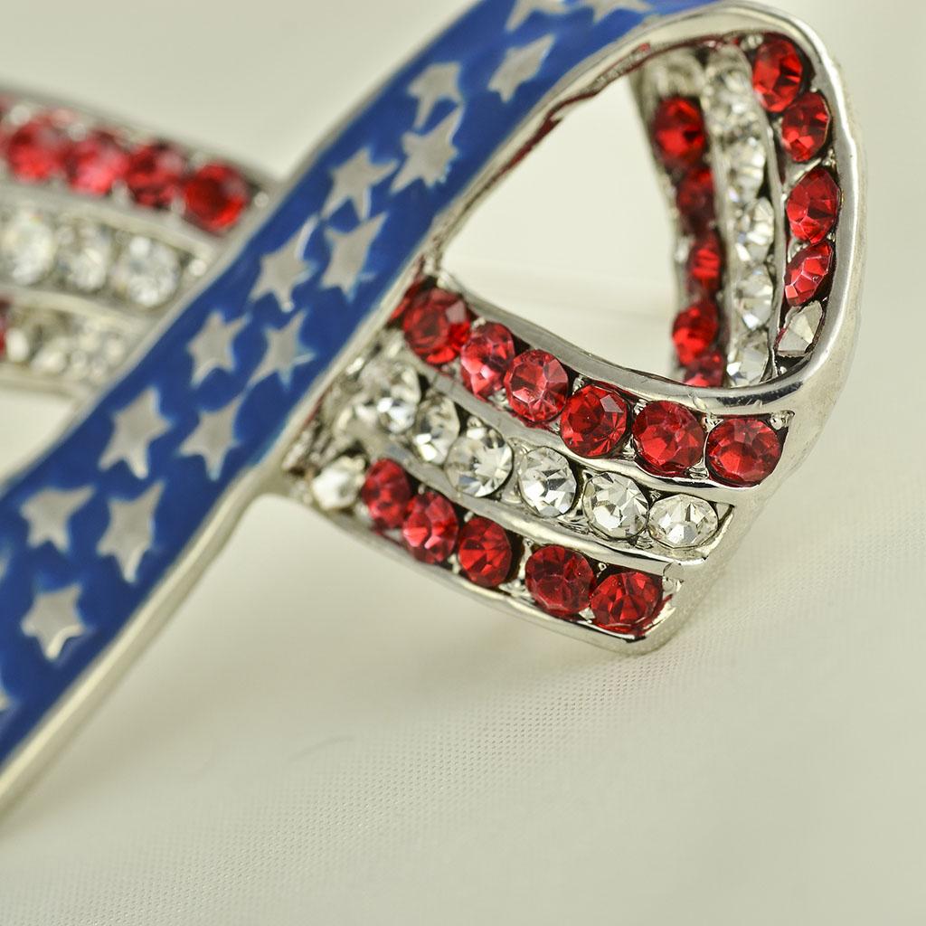 Diamante Rhinestone USA American Flag Ribbon Brooches Pins Patriotic Jewelry