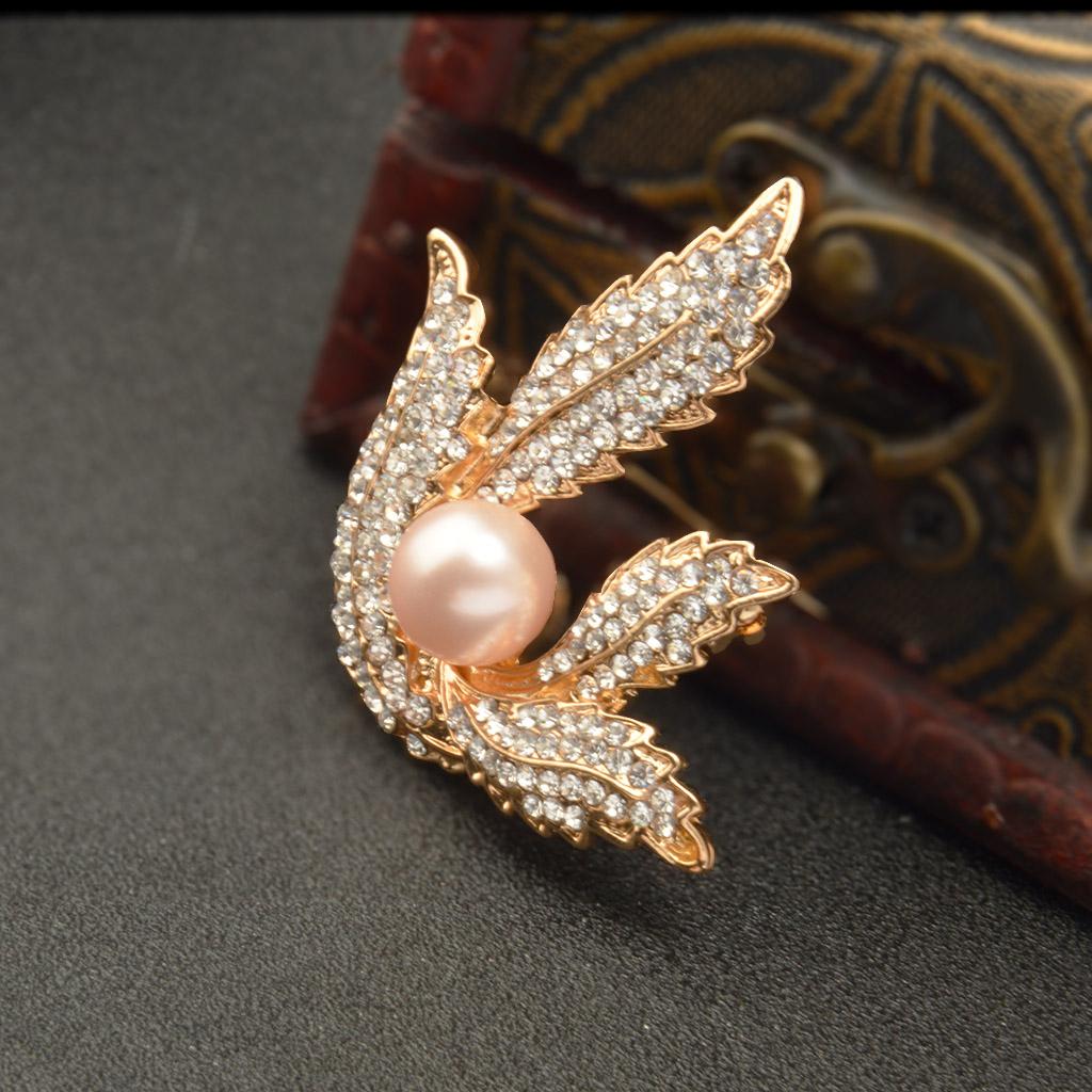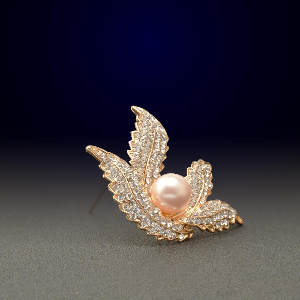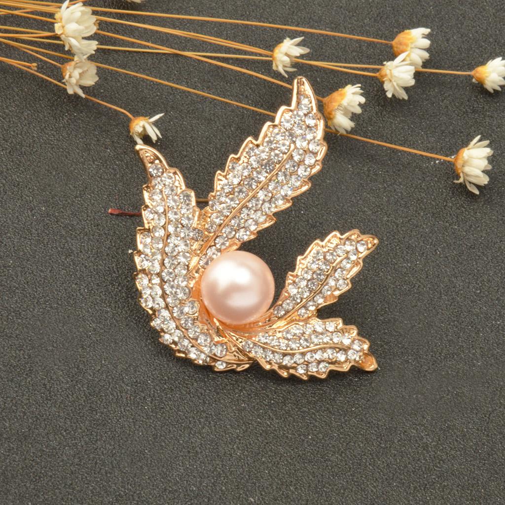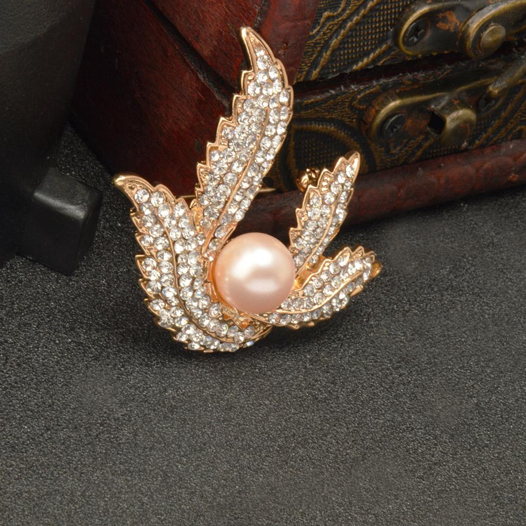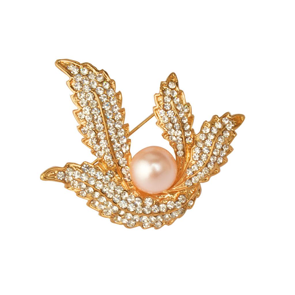 Elegant Leaf Brooch Jewellery Gold Crystal Rhinestone Faux Pearl Brooch Pin for Women