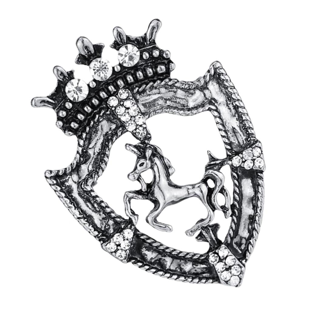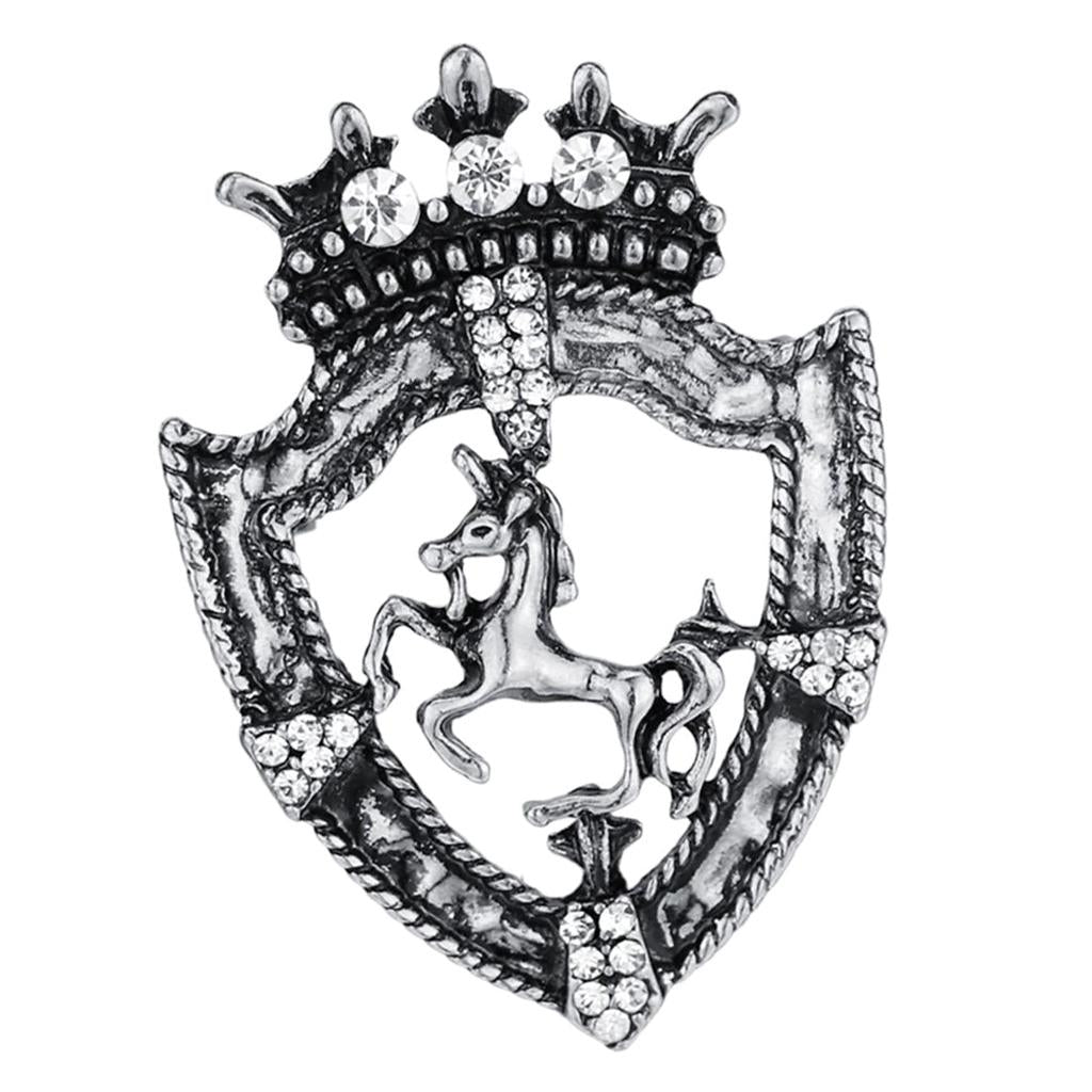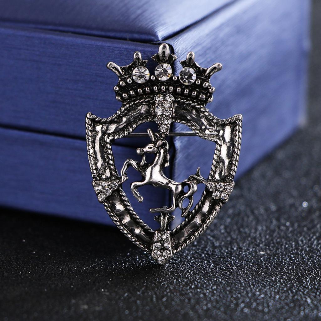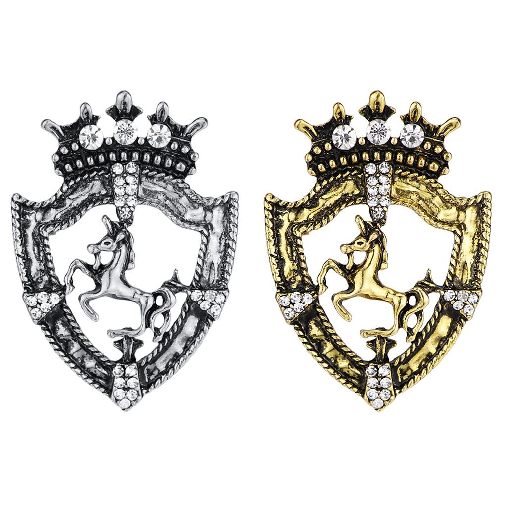 Fancy Queen Crown Brooch Crystal Unicorn Racing Badge Brooch Antique Silver