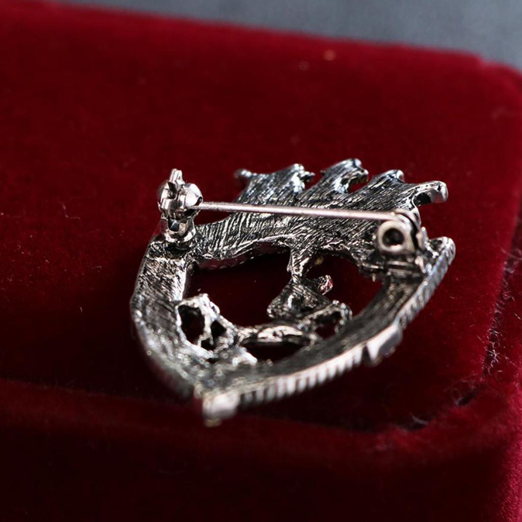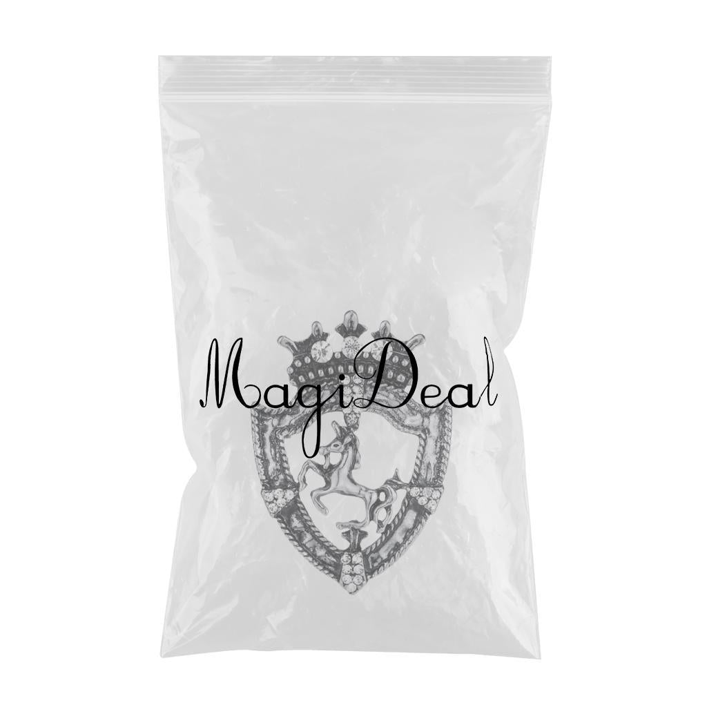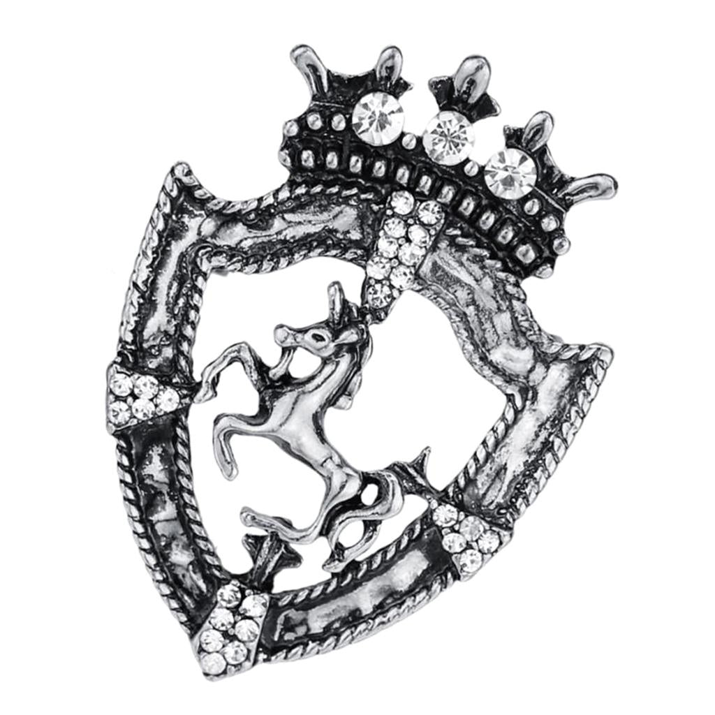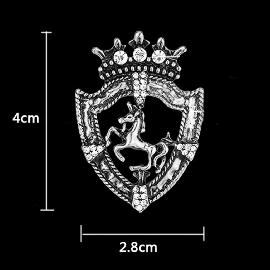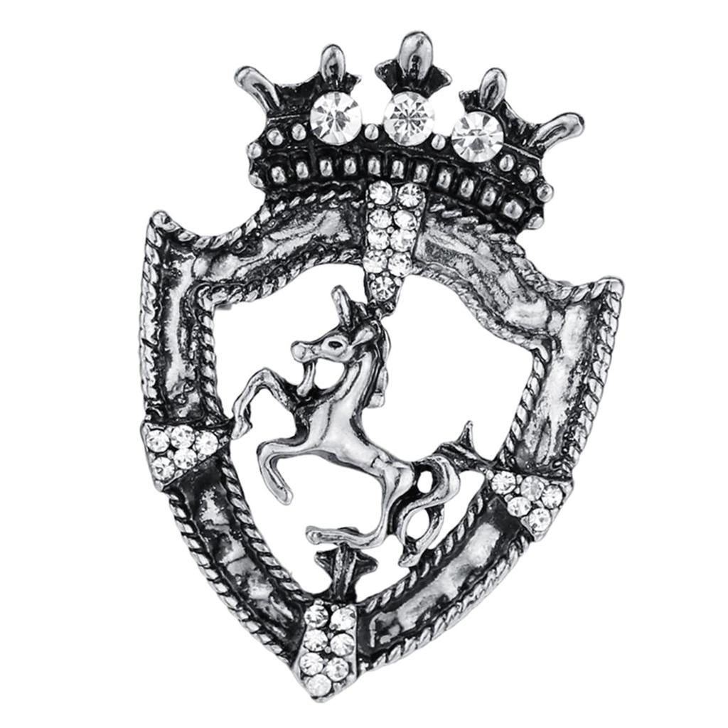 Fancy Queen Crown Brooch Crystal Unicorn Racing Badge Brooch Antique Silver