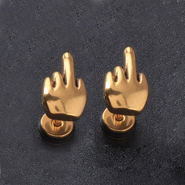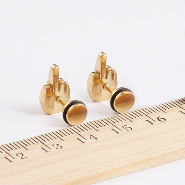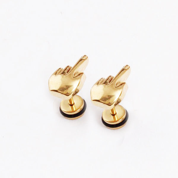 Fashion 316L Surgical Steel Middle Finger Shape Jewelry Stud Earrings Gold