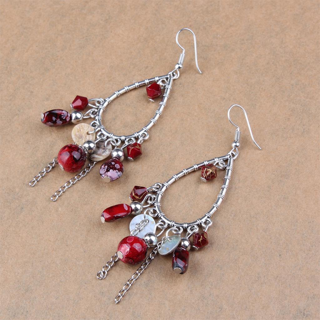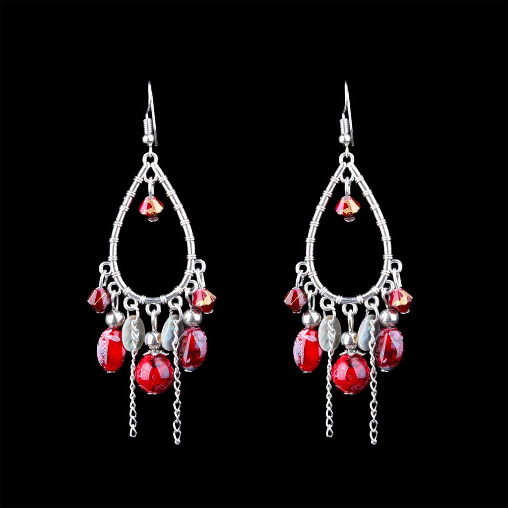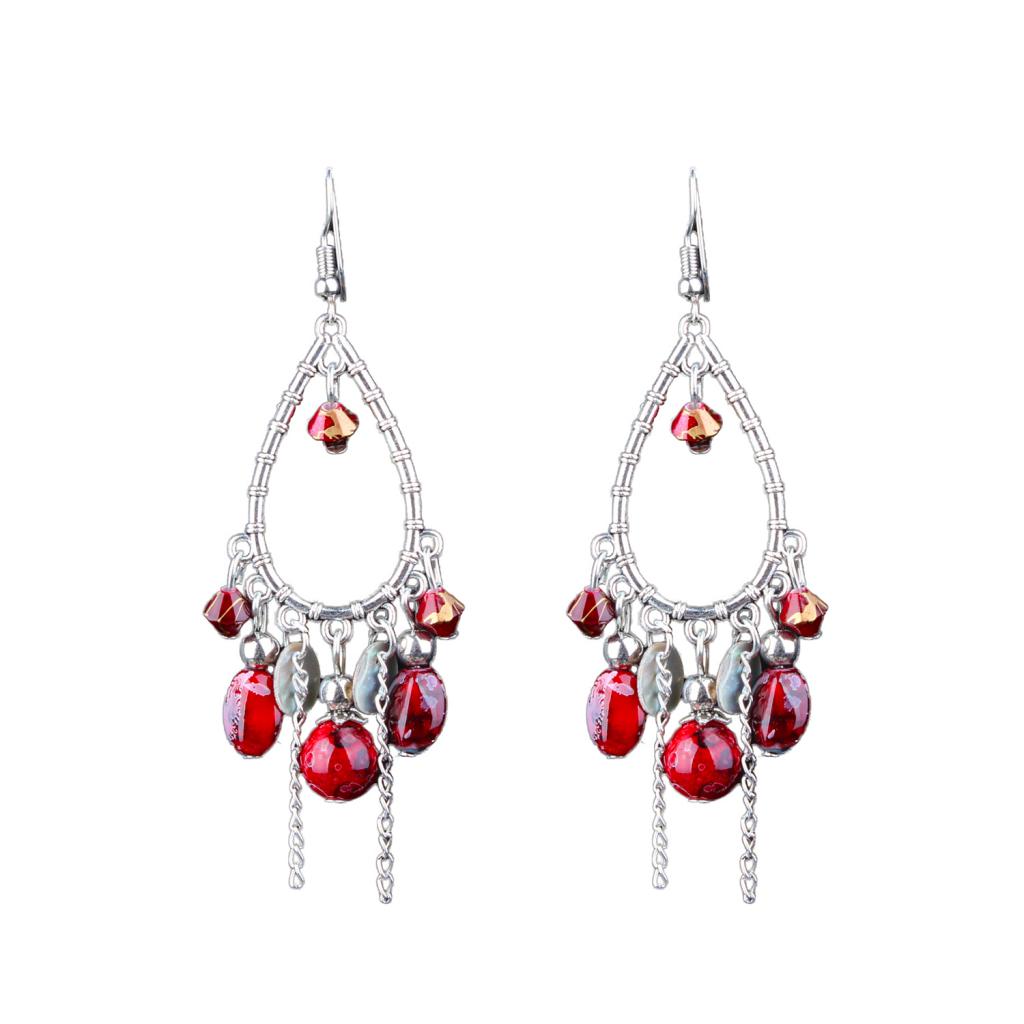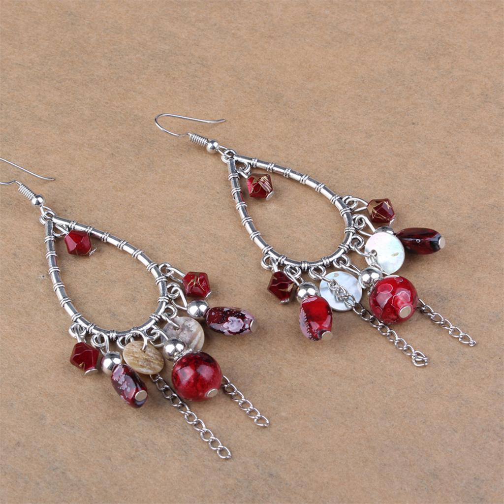 Fashion Bohemia Red Beads Dangle Earrings Retro Elegant Party Ornaments