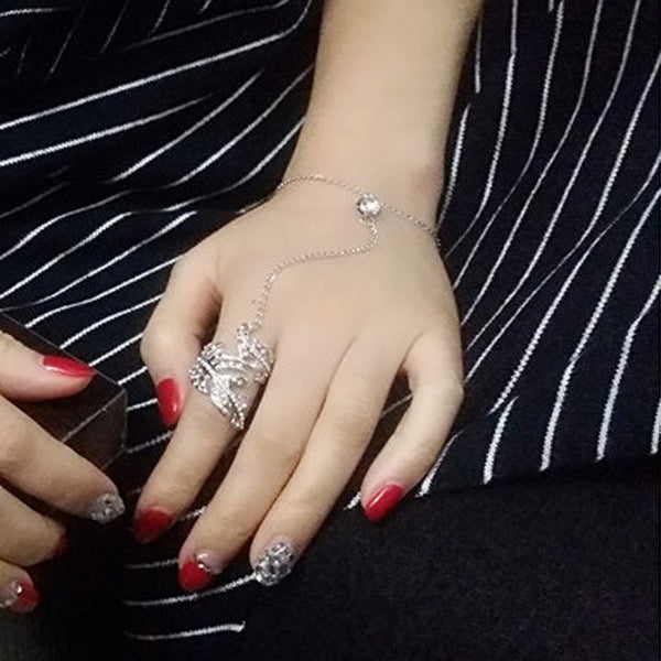 Fashion Bracelet Bangle Slave Chain Link Finger Ring Hand Harness Silver