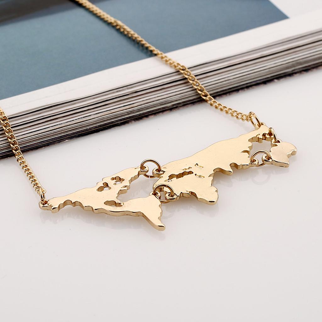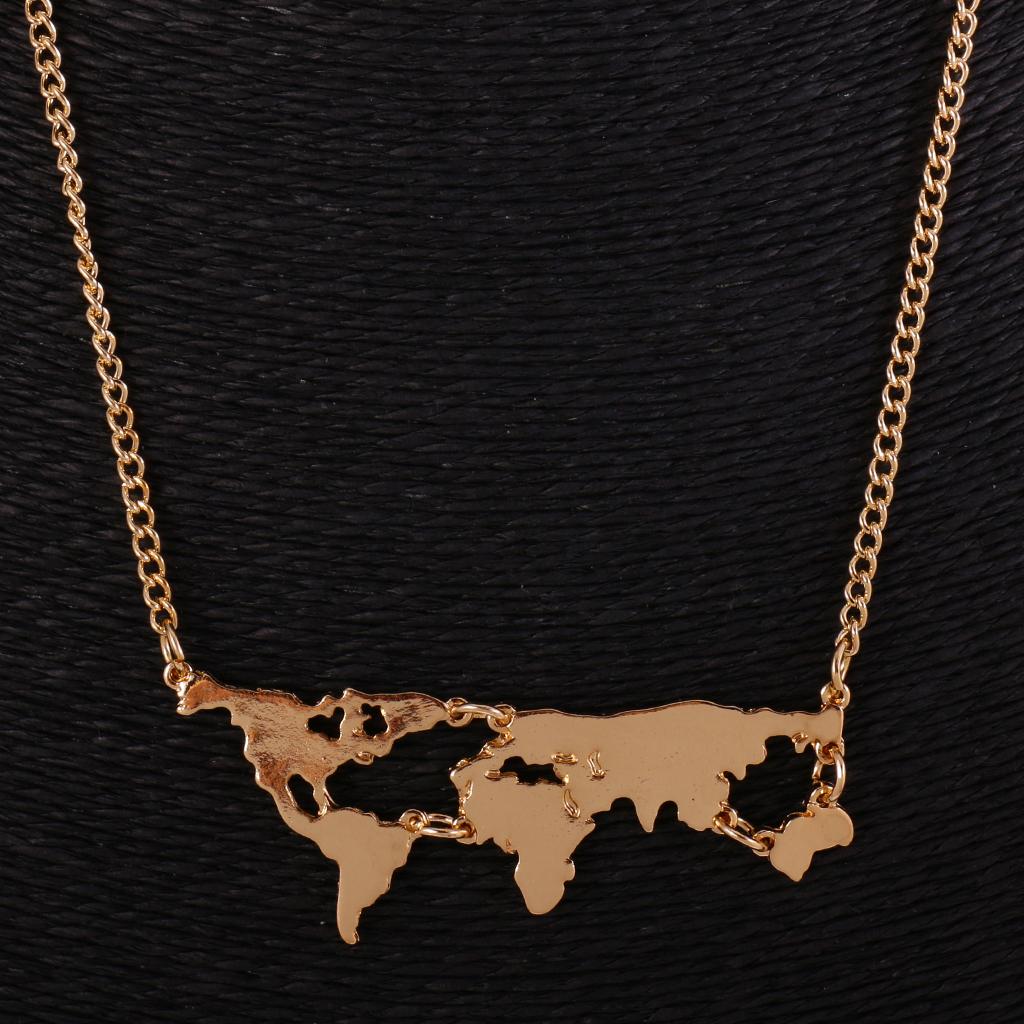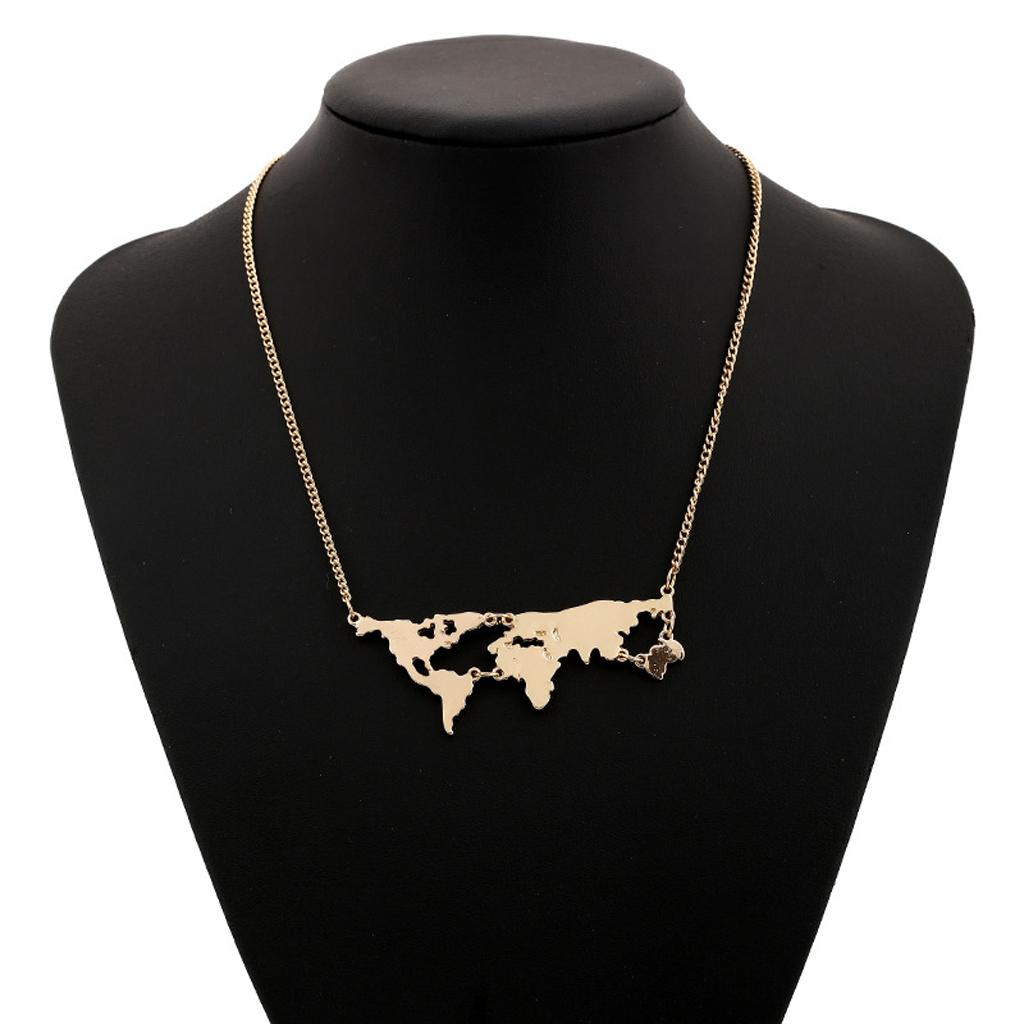 Fashion Charm World Map Travel Abstract Pendant Collar Necklace Gold