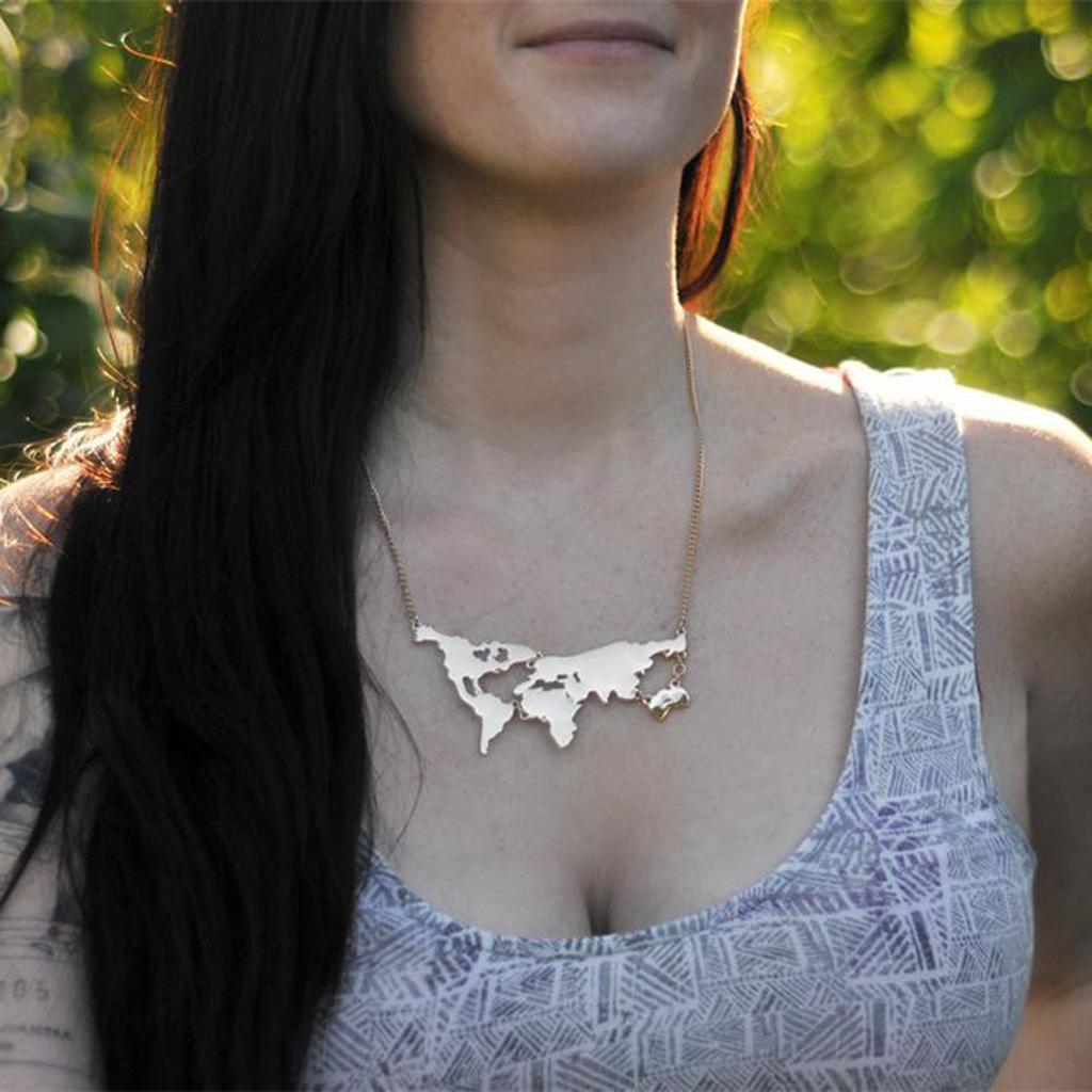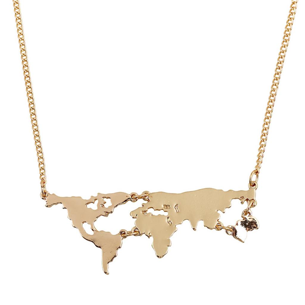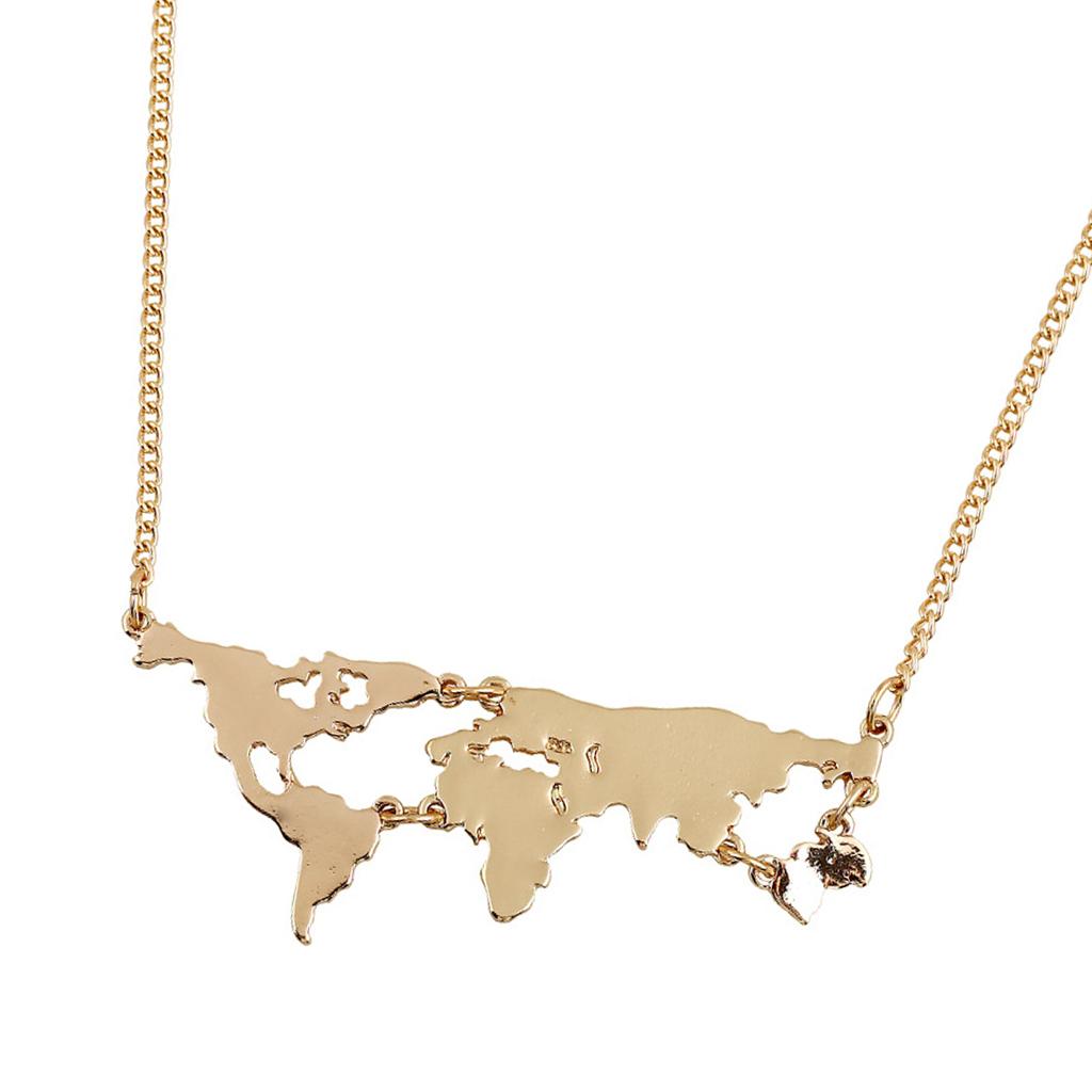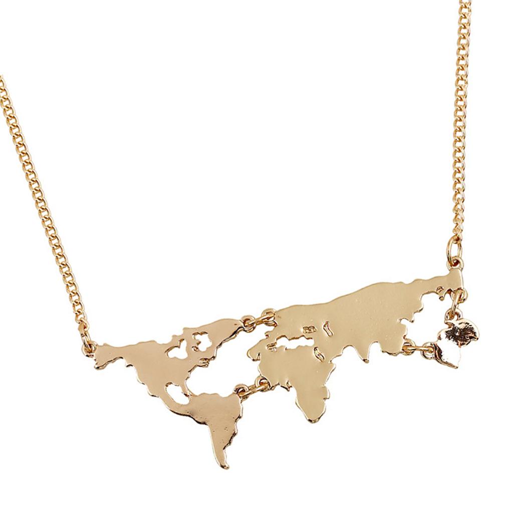 Fashion Charm World Map Travel Abstract Pendant Collar Necklace Gold