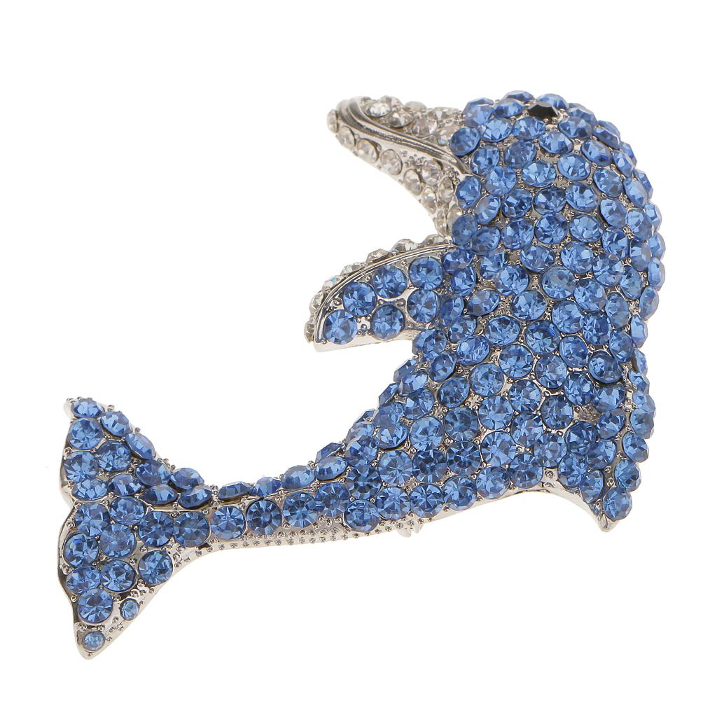 Fashion Crystal Rhinestone Dolphin Design Brooch Pin Women Animal Jewelry