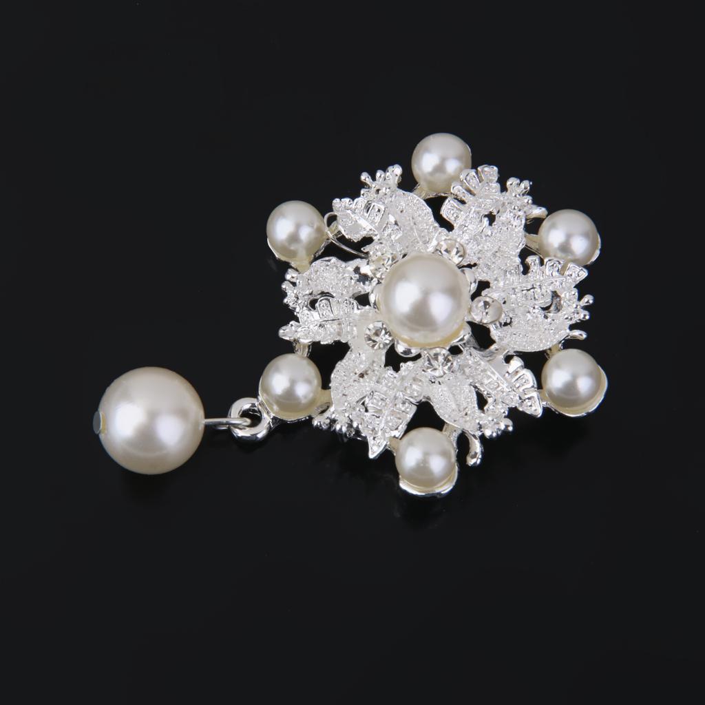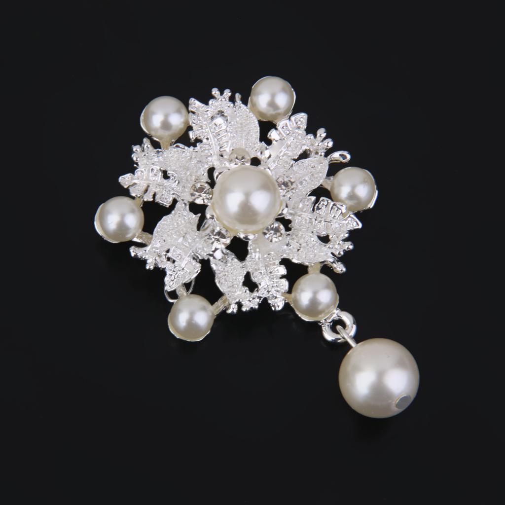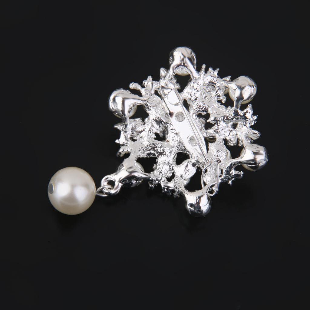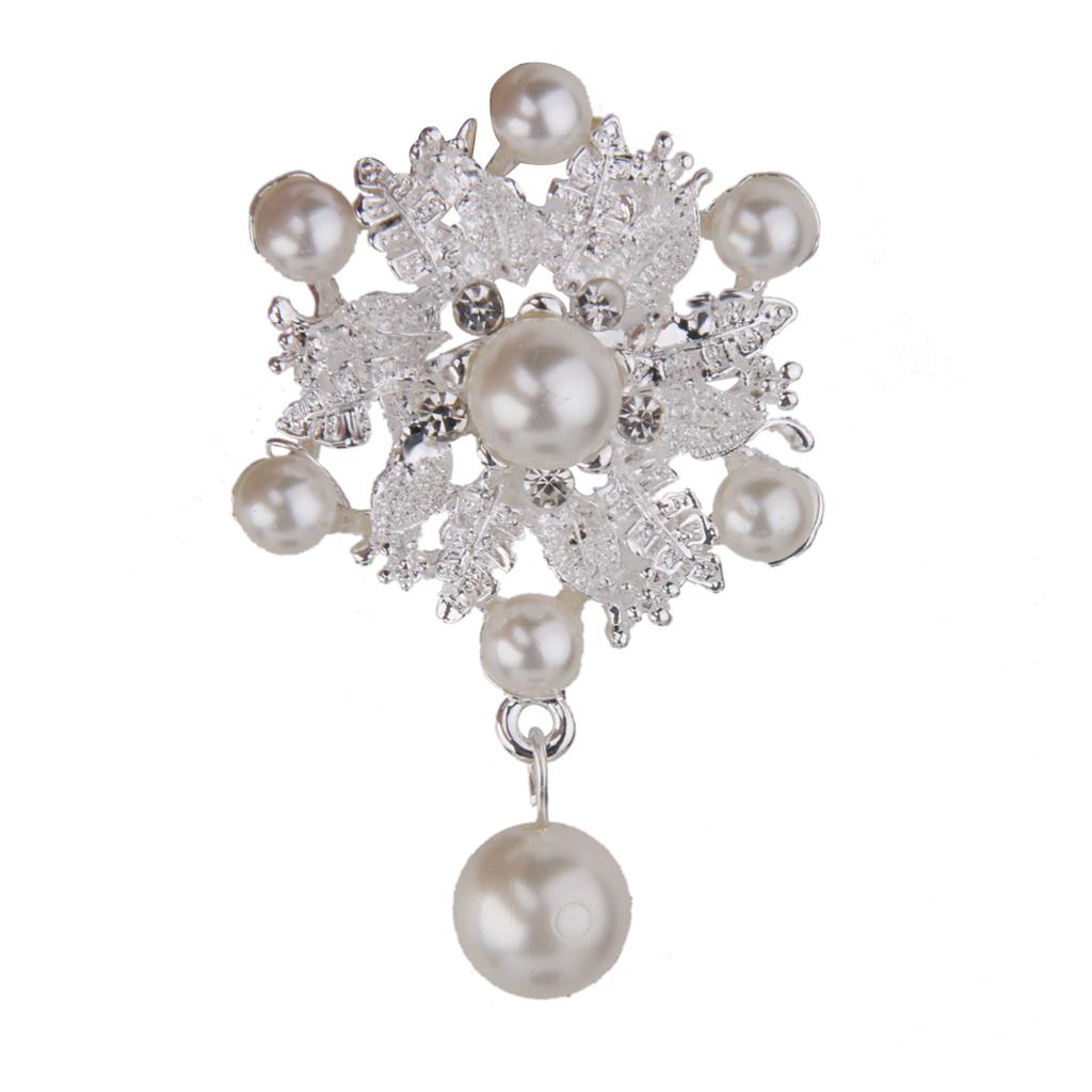 Fashion Faux Pearl Alloy Silver Flower Brooch Pin for Bags Clothing Scarf