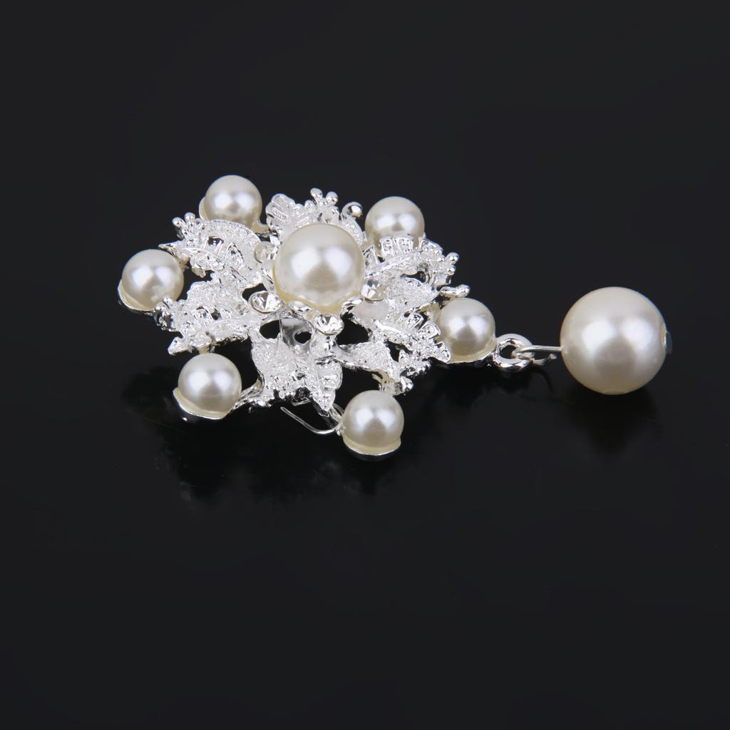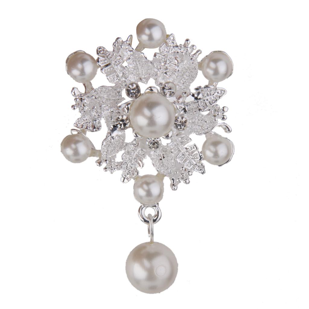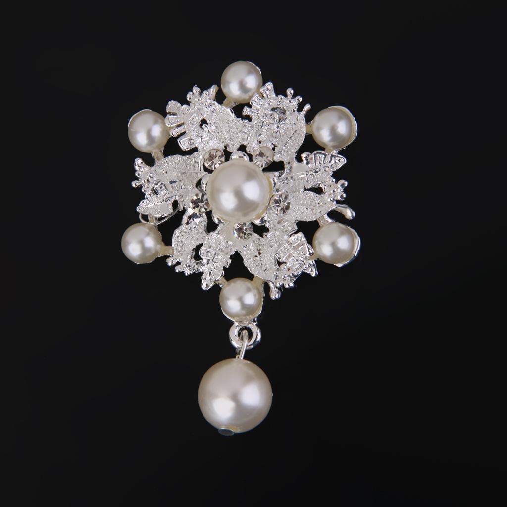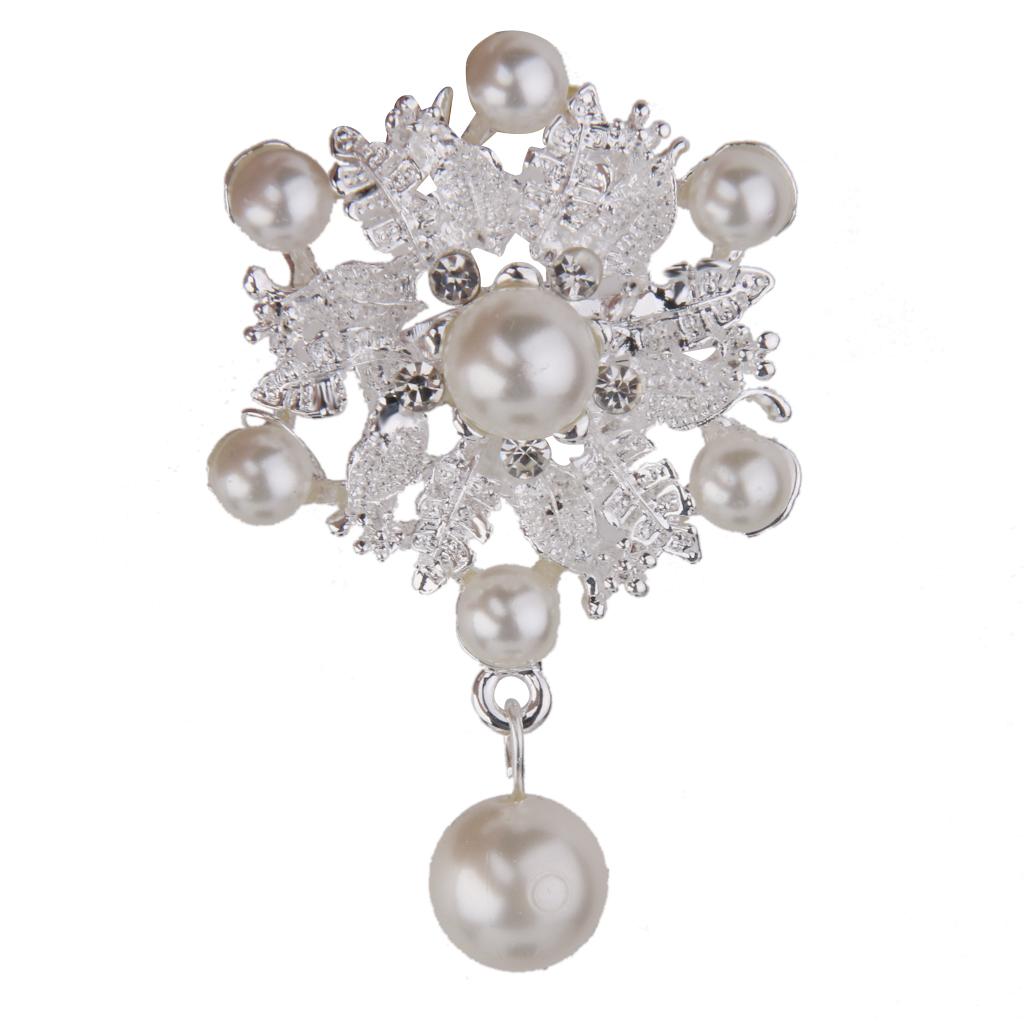 Fashion Faux Pearl Alloy Silver Flower Brooch Pin for Bags Clothing Scarf