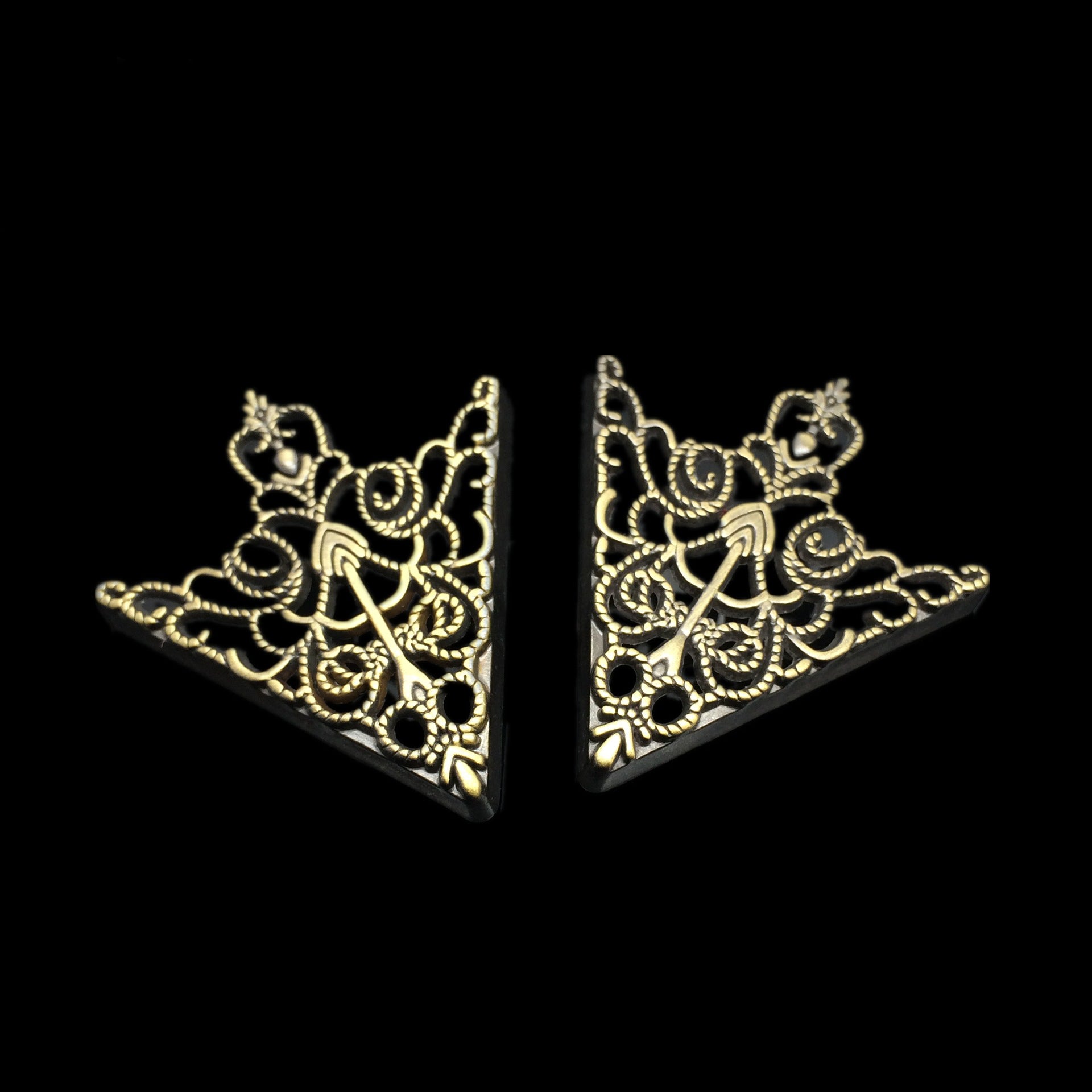 Fashion Hollow Triangle Blouse Shirt Collar Pin Brooch Decor Antique brass