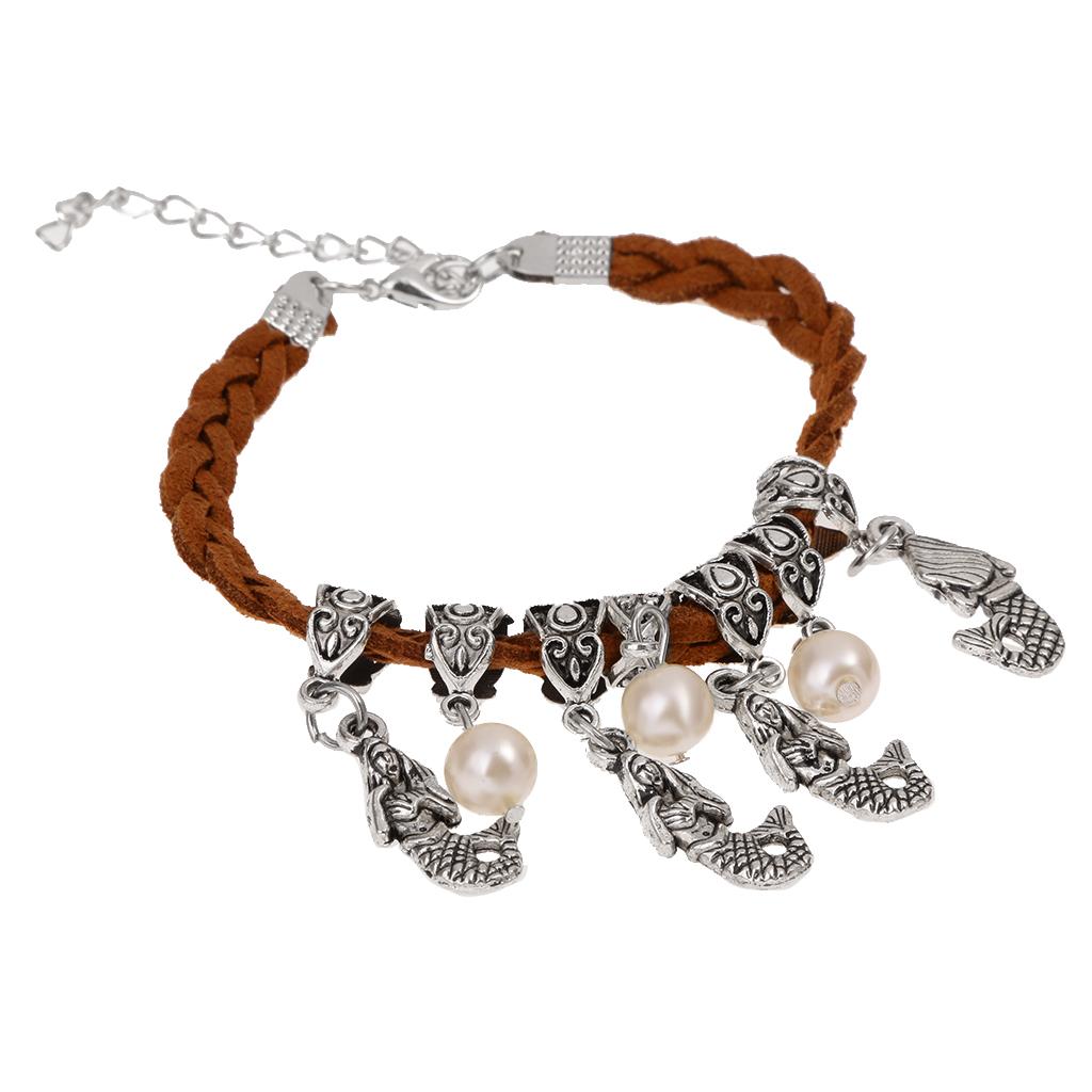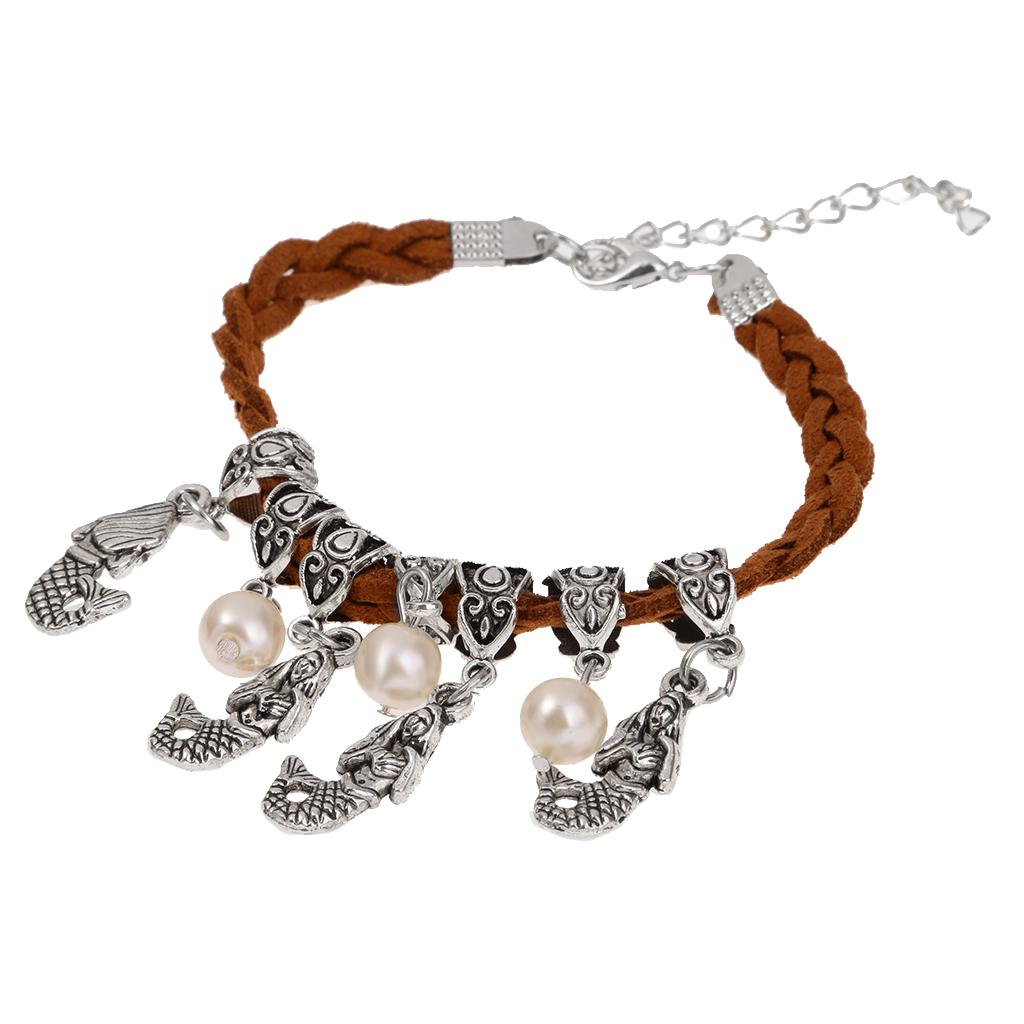 Fashion Leather Wrap Braided Wristband Cuff Punk Bracelet Bangle Anklet