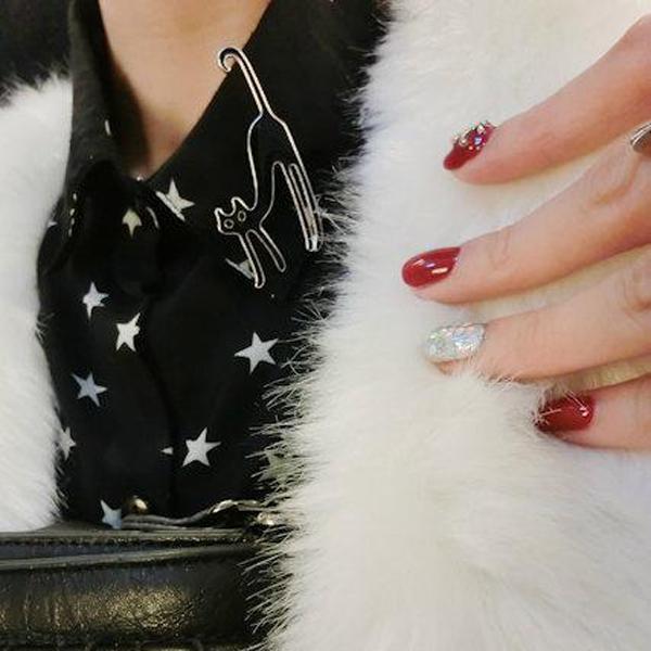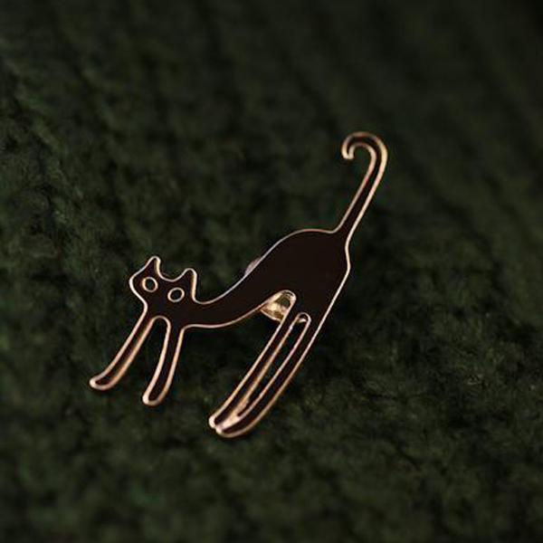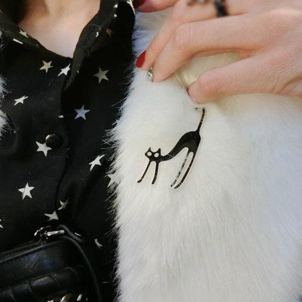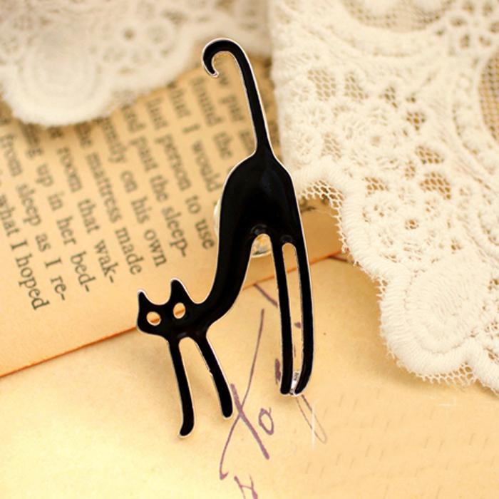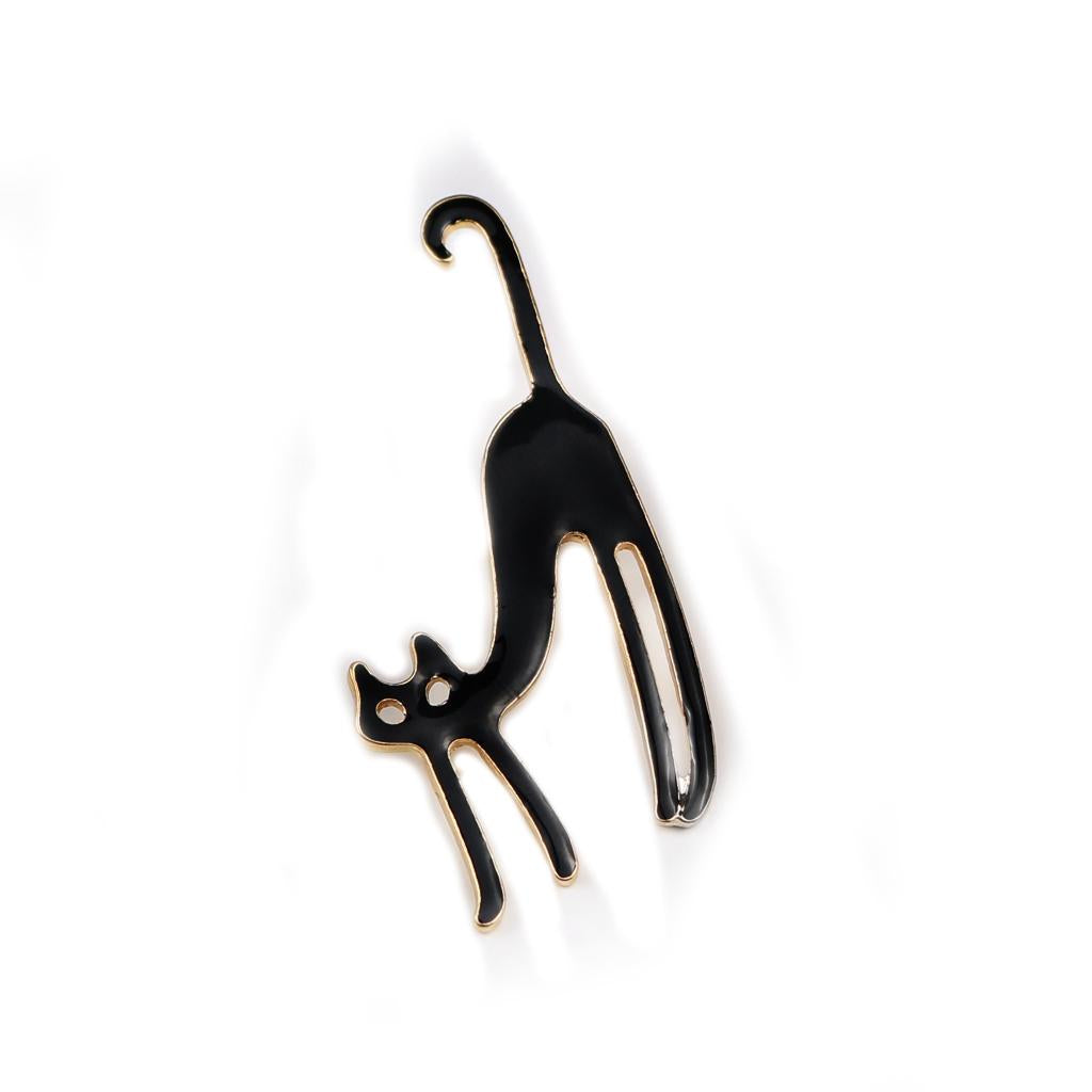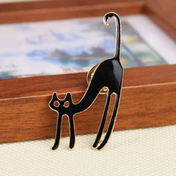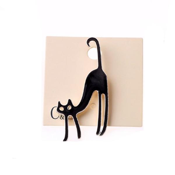 Fashion Novelty Enamel Cute Cat Blouse Collar Brooch Pin Jewelry Black