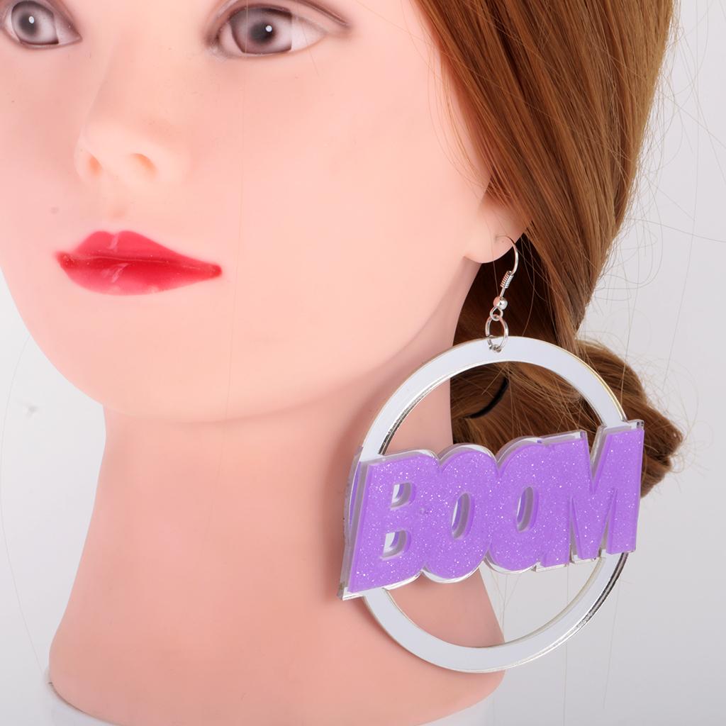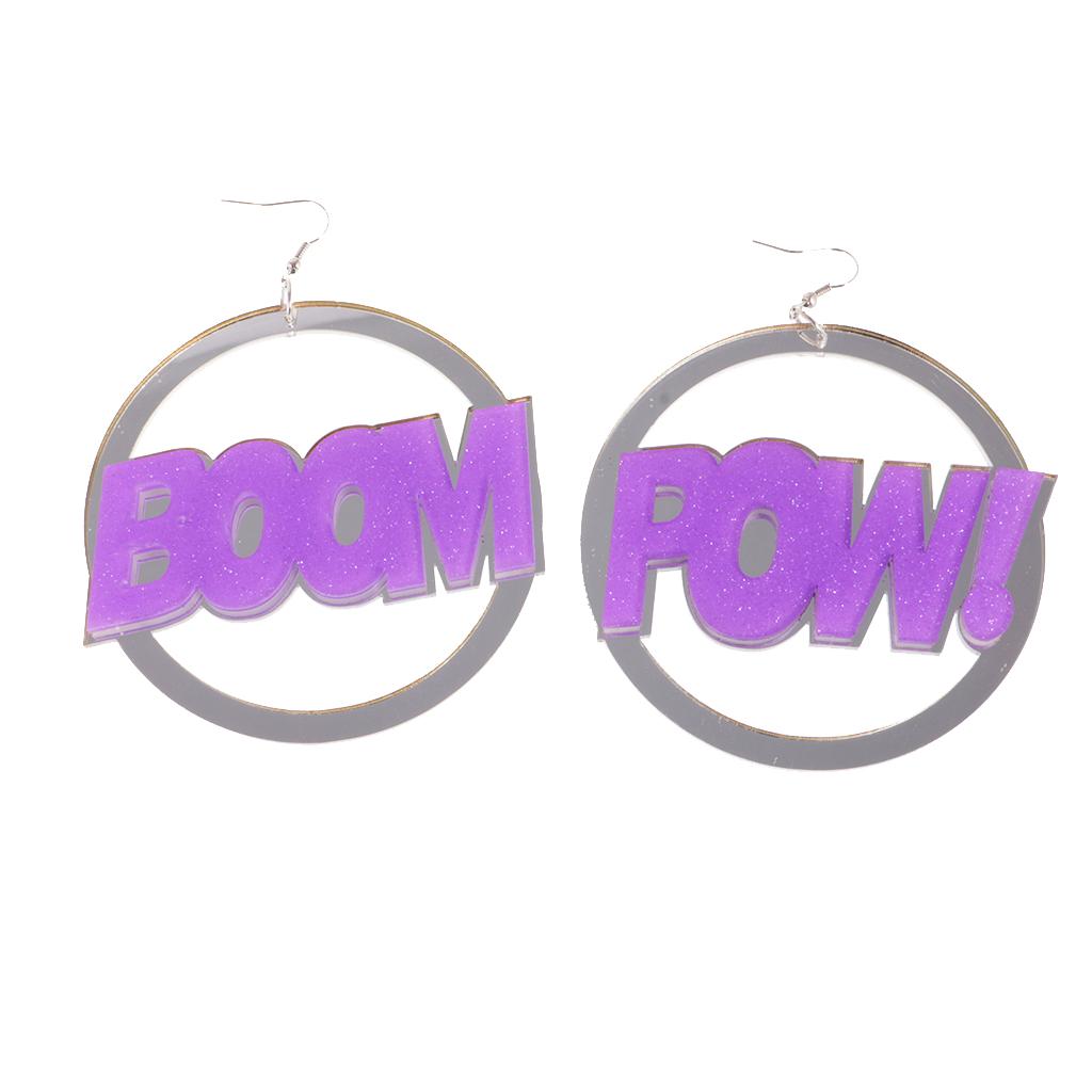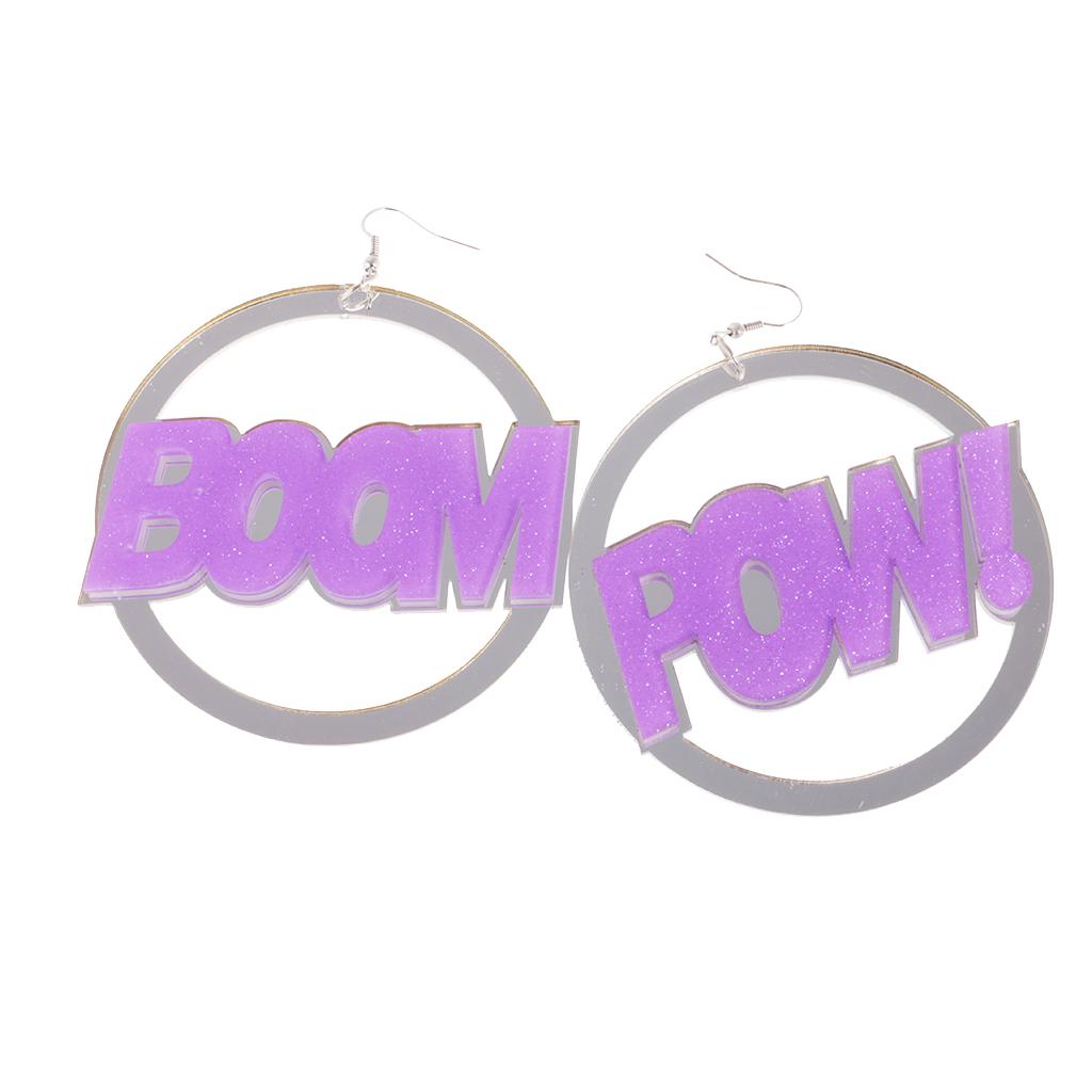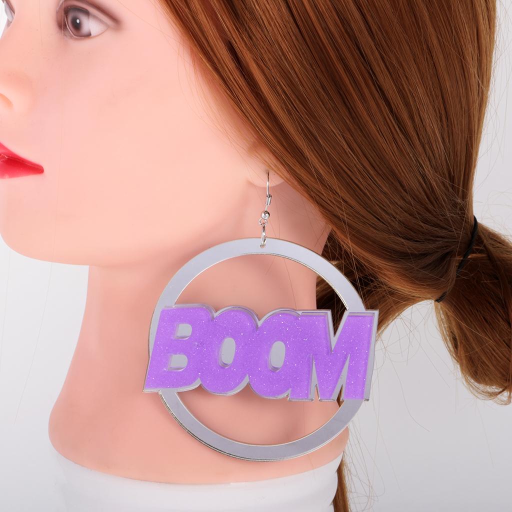 Novelty BOOM POW dangle stud earrings, night club hip-hop fancy ornaments, it makes you eye catching in the crowd.