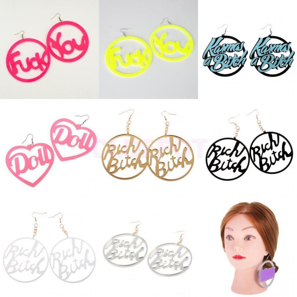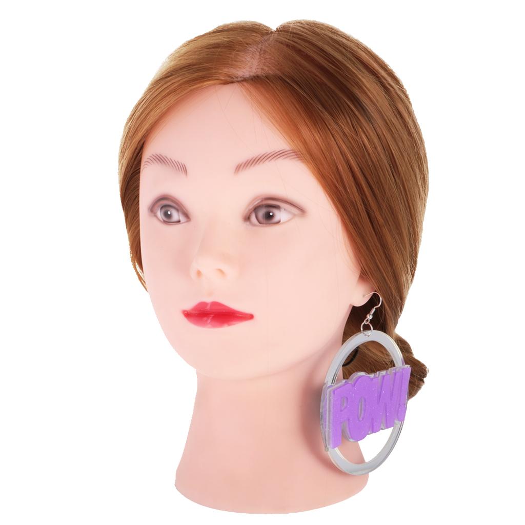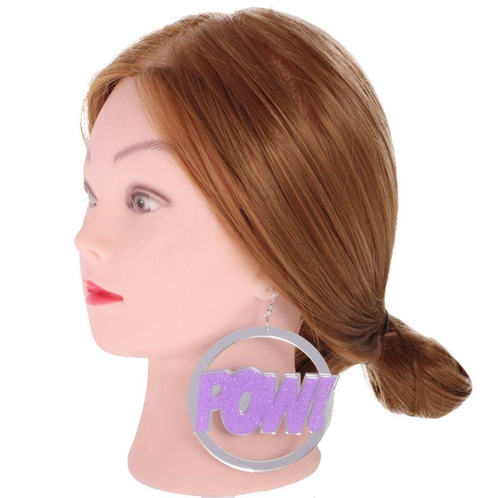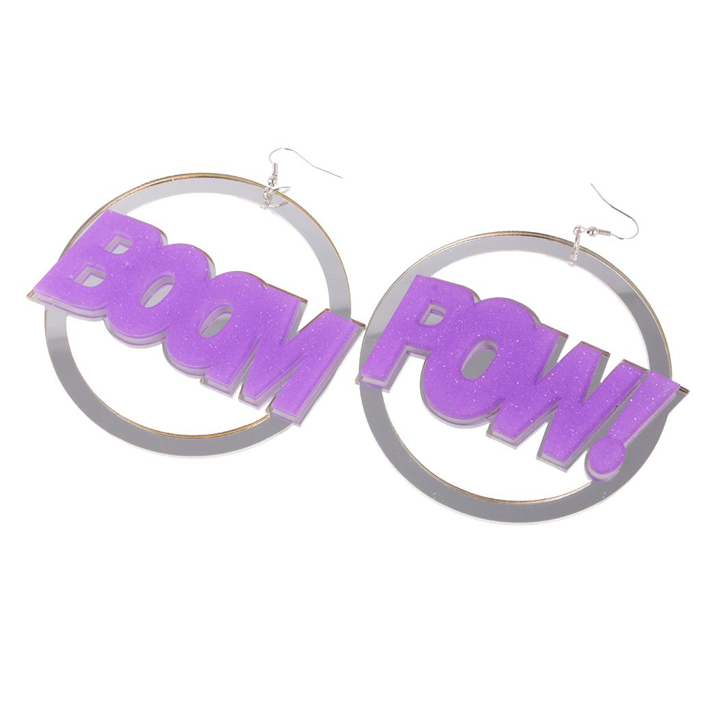 Novelty BOOM POW dangle stud earrings, night club hip-hop fancy ornaments, it makes you eye catching in the crowd.