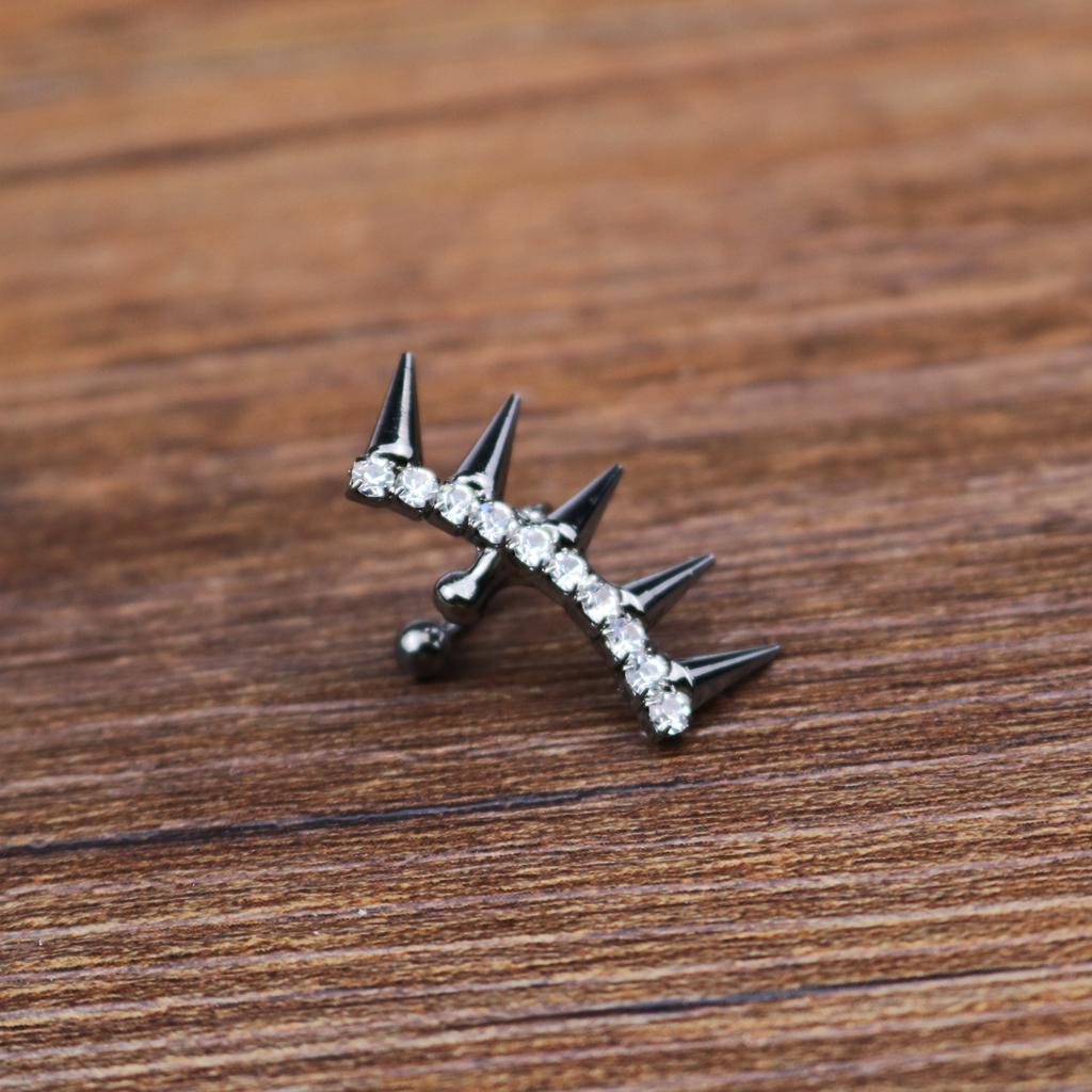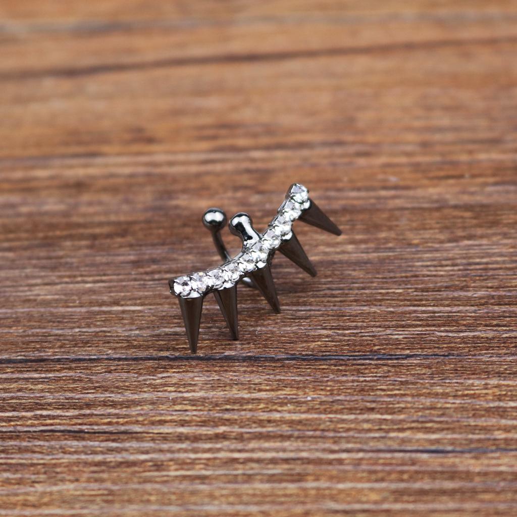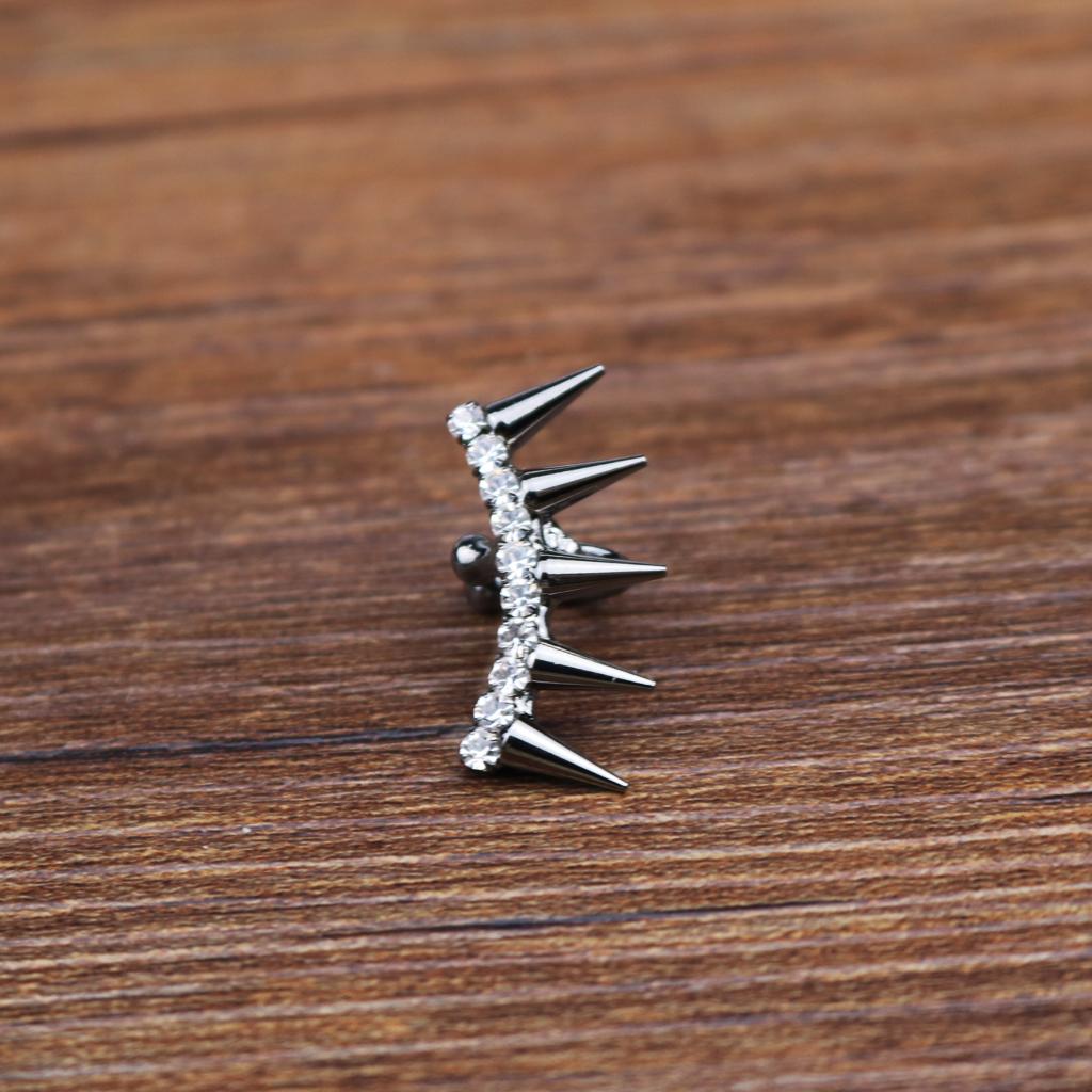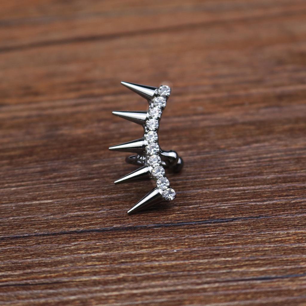 Fashion Rhinestone Cartilage Ear Cuff Wrap Clip on Spike Earring Gun Black