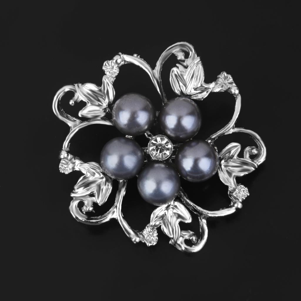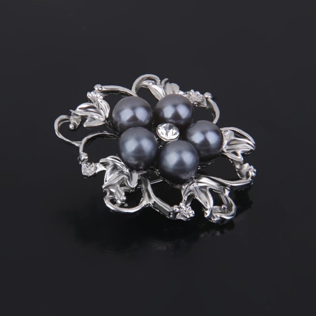 Fashion Women Bridal Wedding Flower Pearl Brooch Pin Gift - Silver