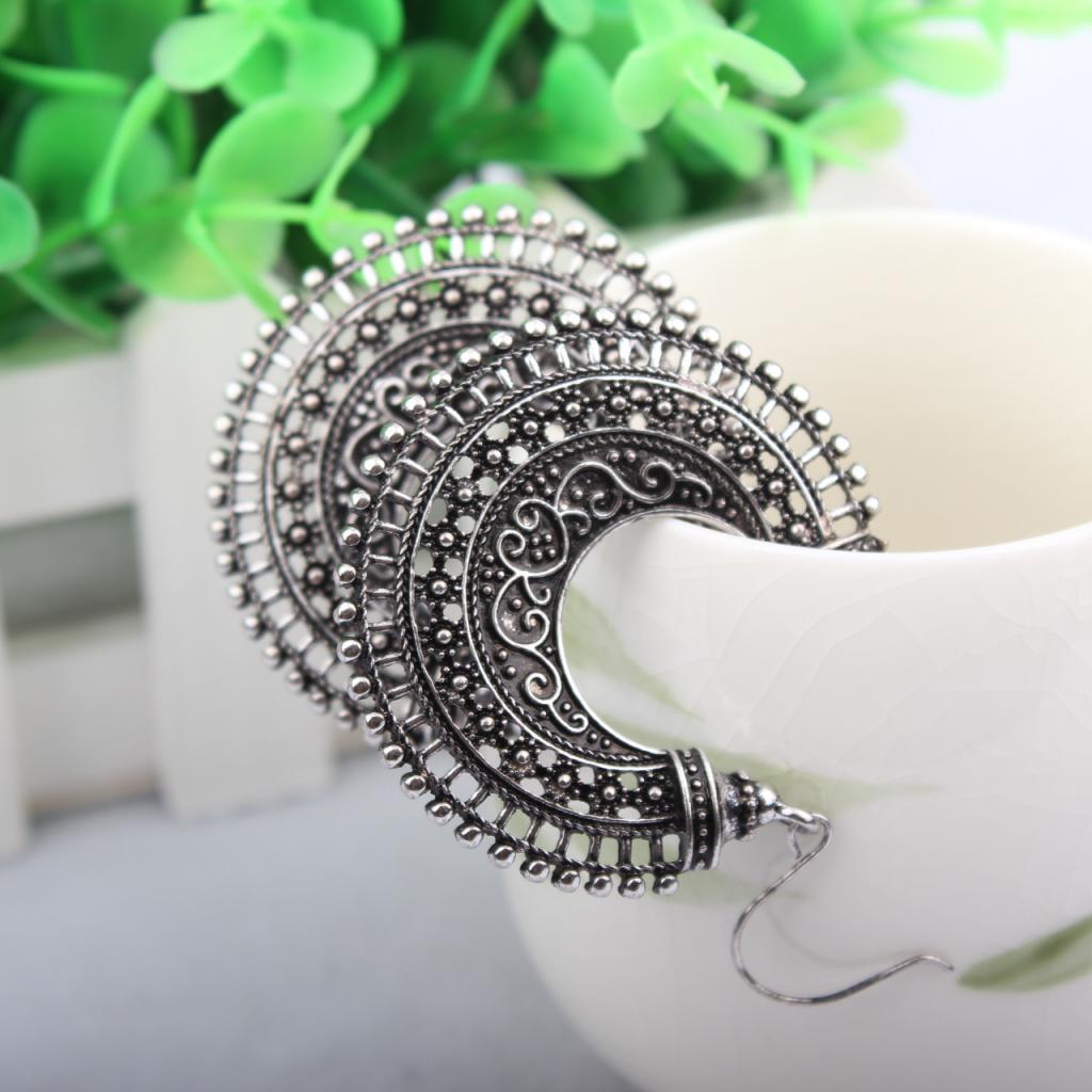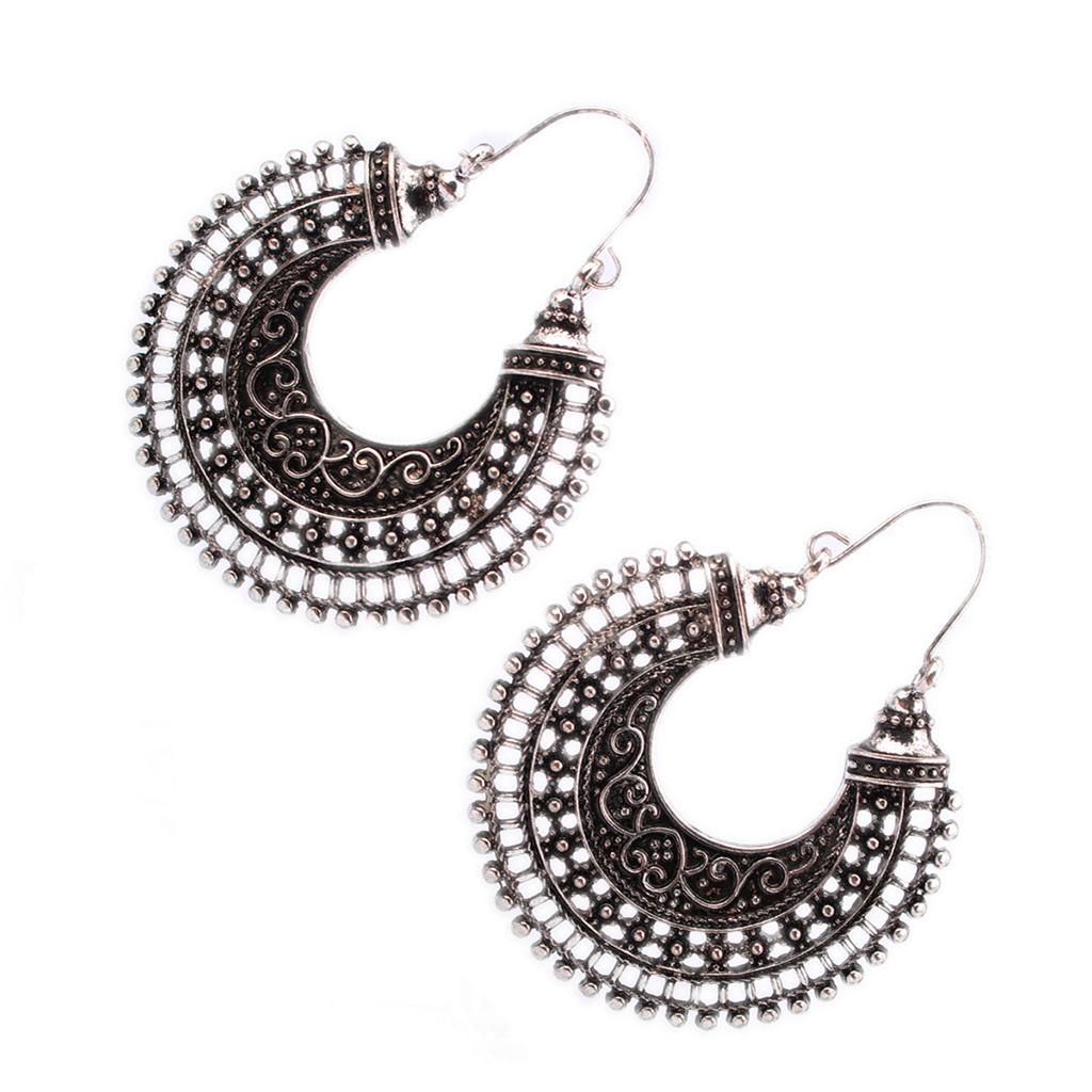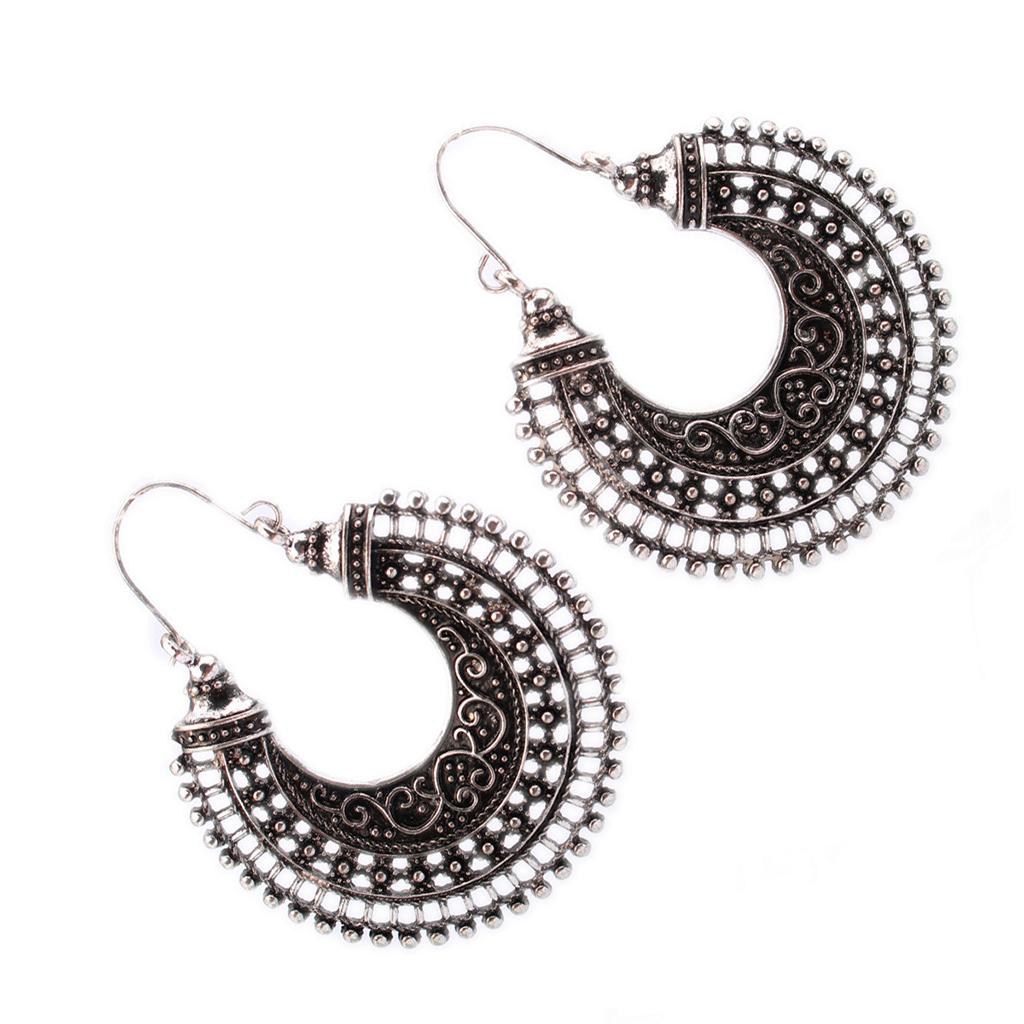 • A pair of retro Folk style earrings, Retro Silver, delicate carved