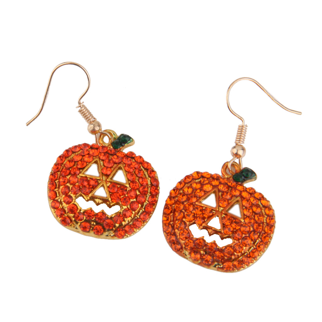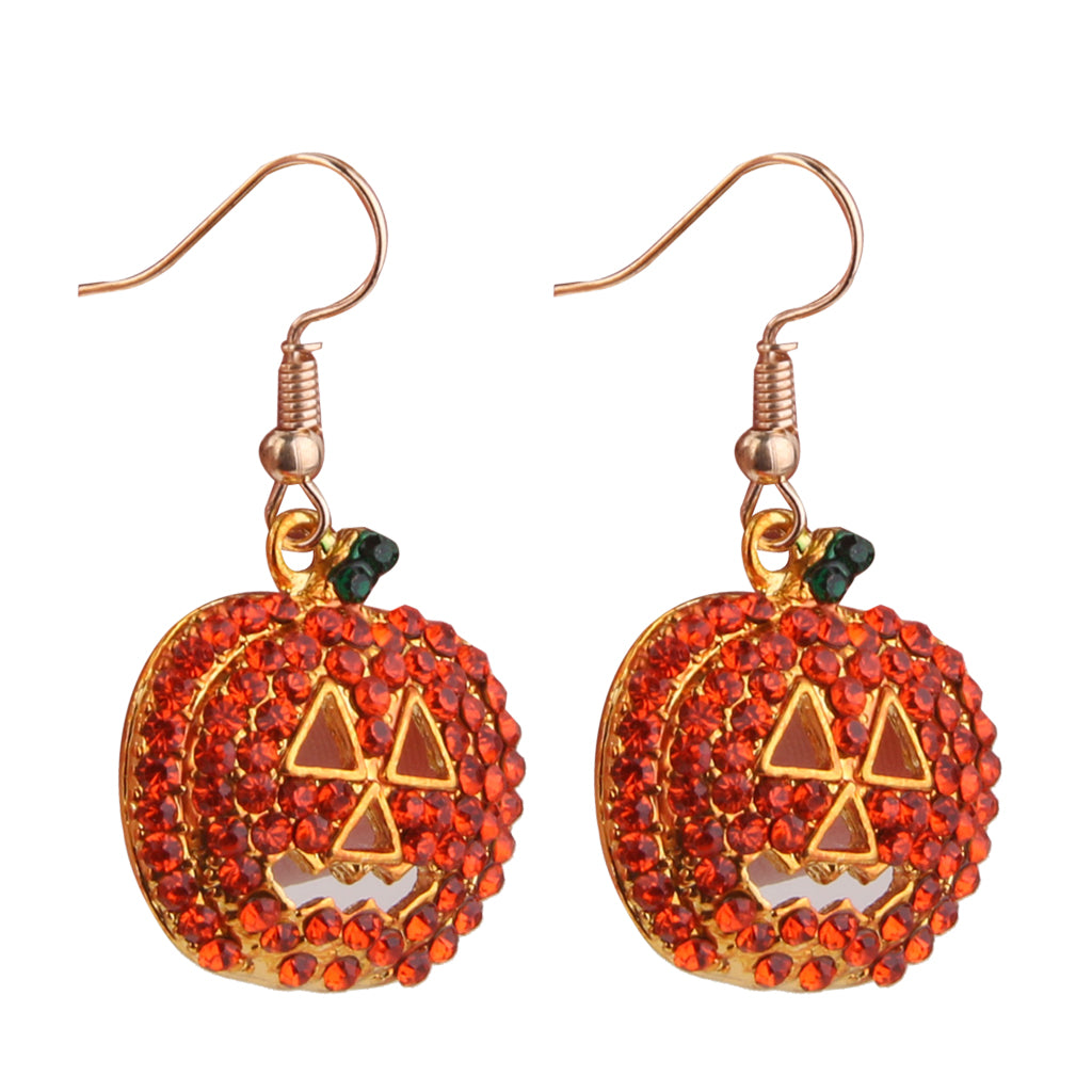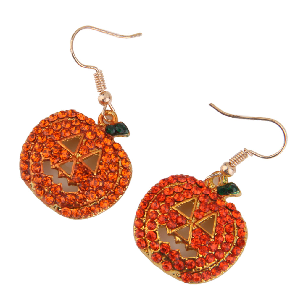 Full Crystal Pumpkin Smiling Face Dangle Hook Earrings Party Ornaments