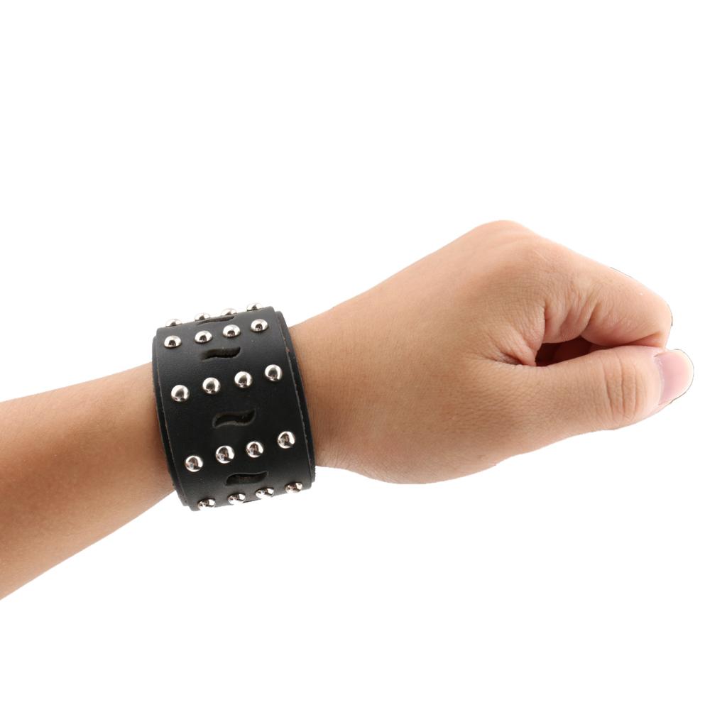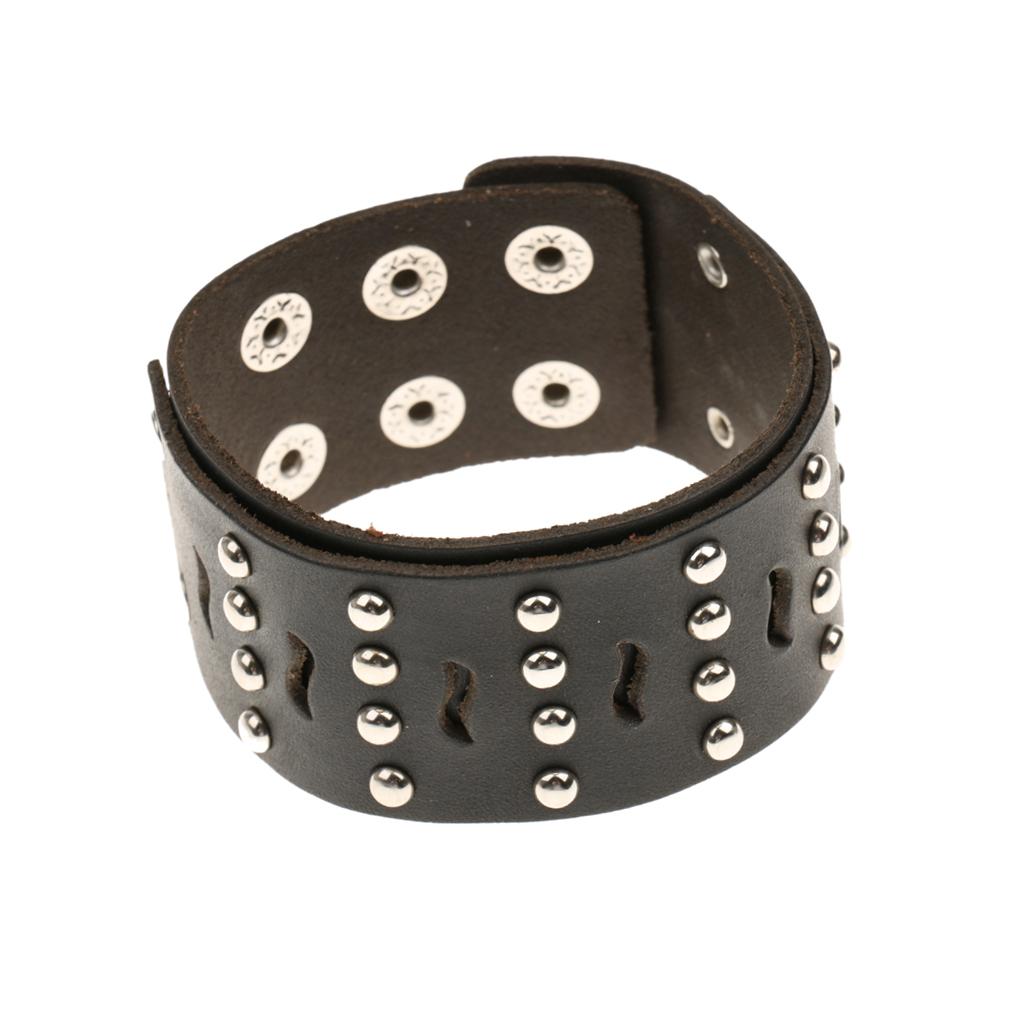 Genuine Leather Cuff Silver Studs Bracelet Leather Wide Steampunk Bangle Jewelry