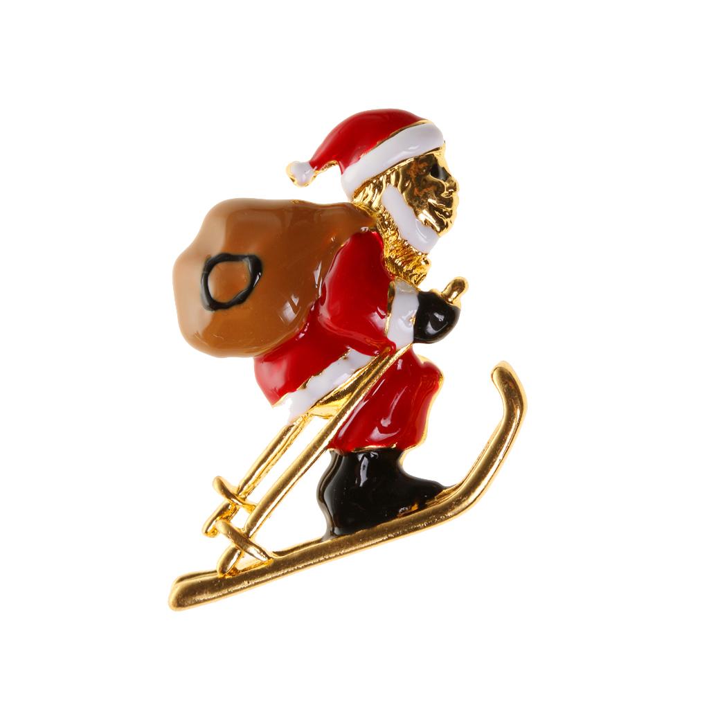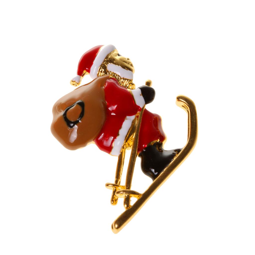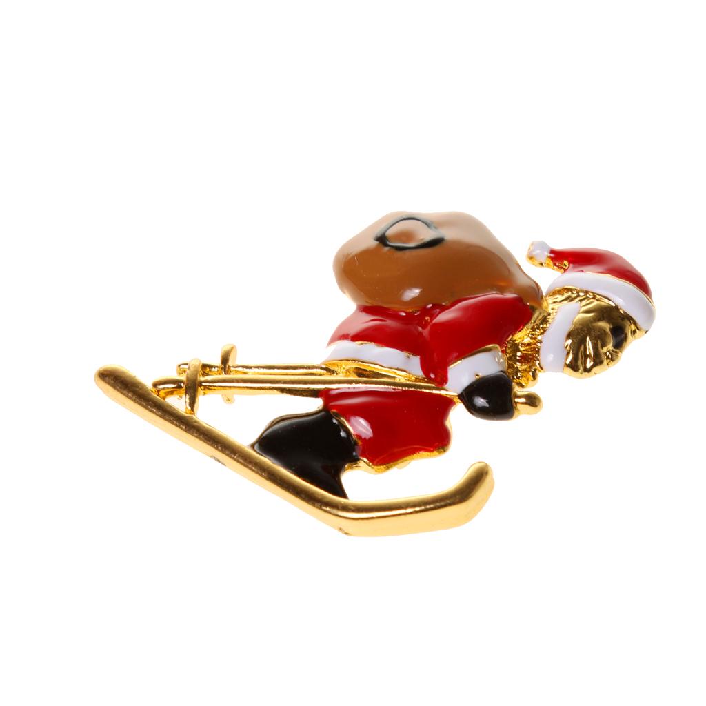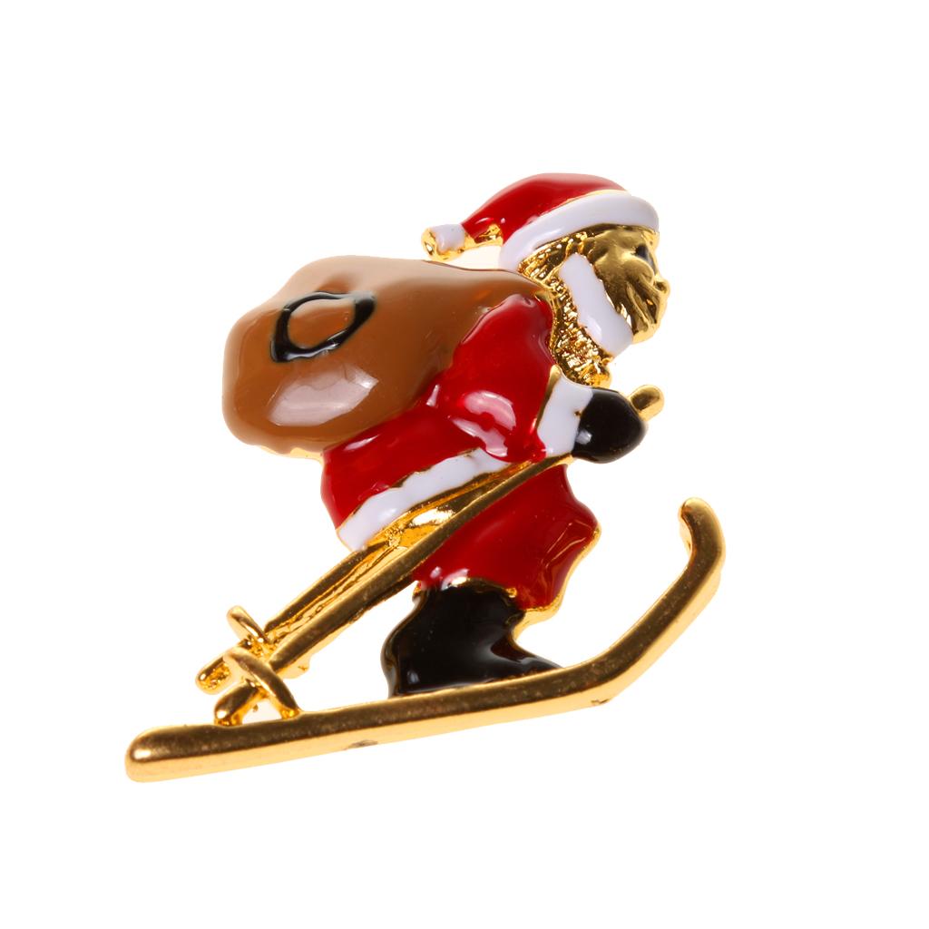 Gold Plated Alloy Red Enamel Santa Claus Brooch Pin Christmas Gift Jewelry