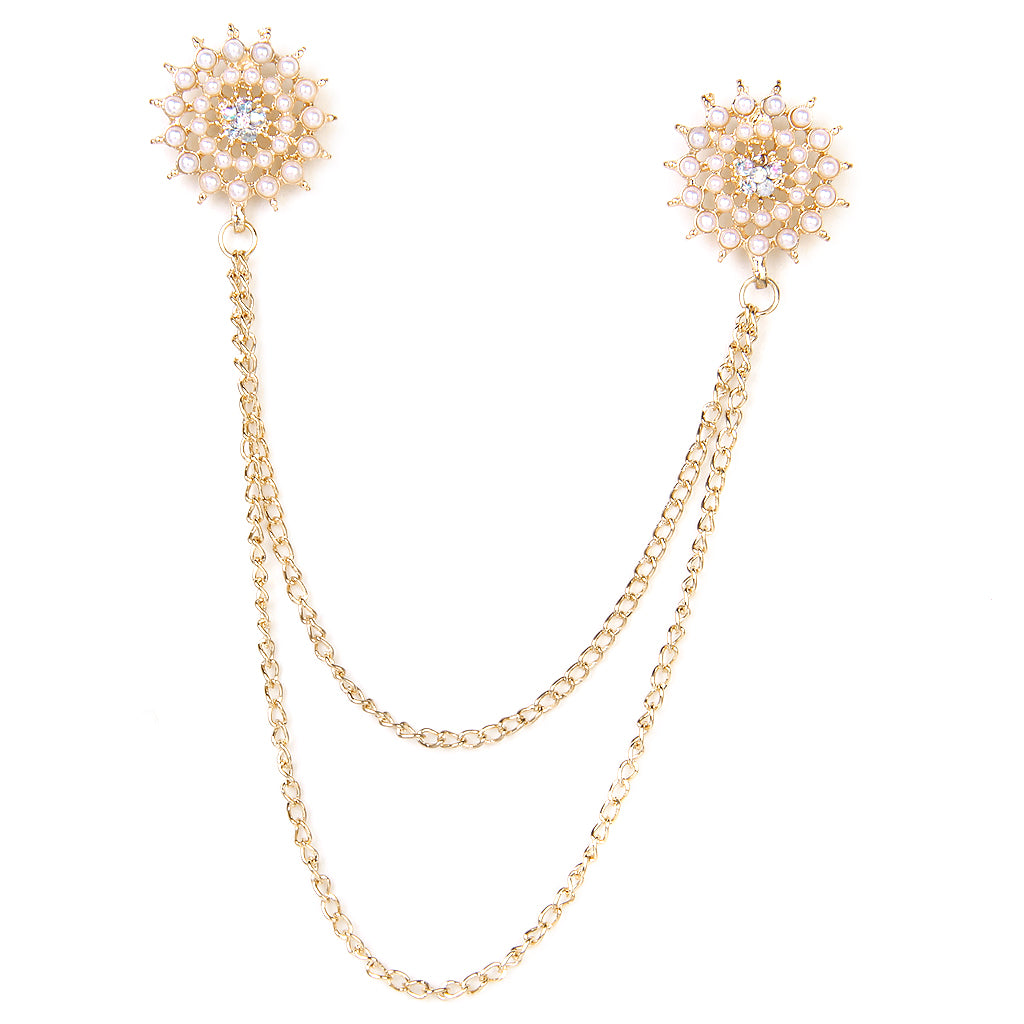 Golden Round Collar Neck Tips Brooch with Chain Tassels