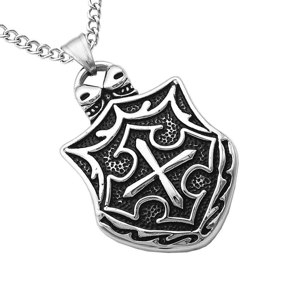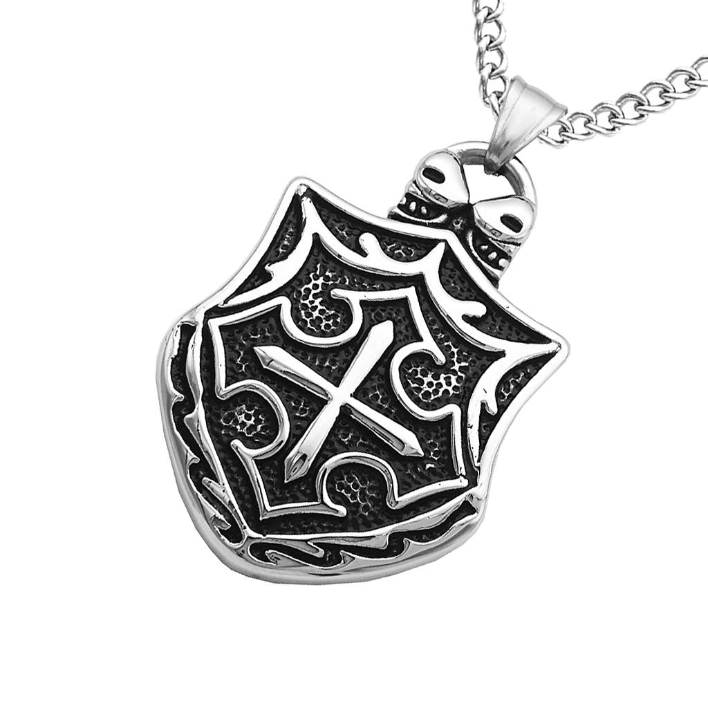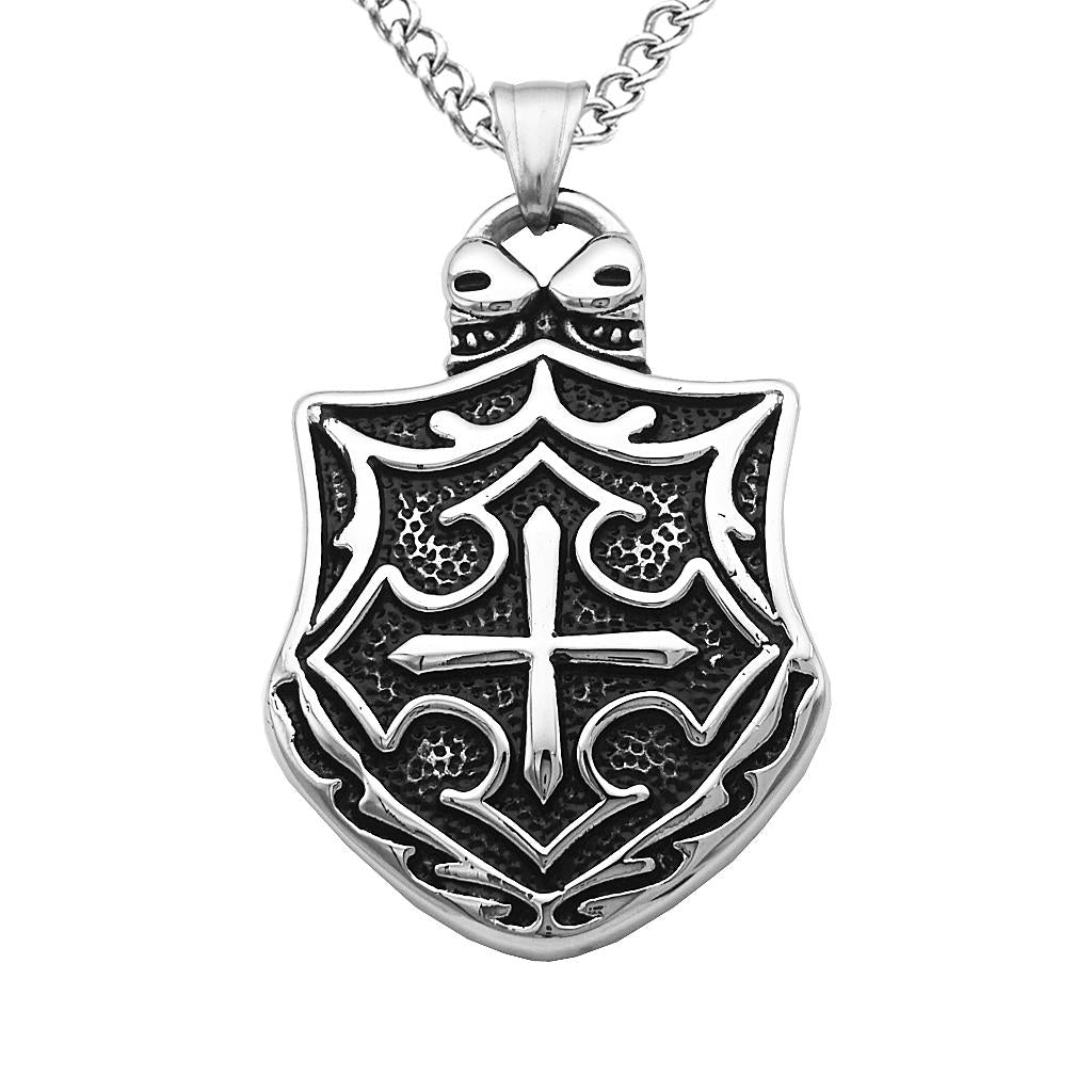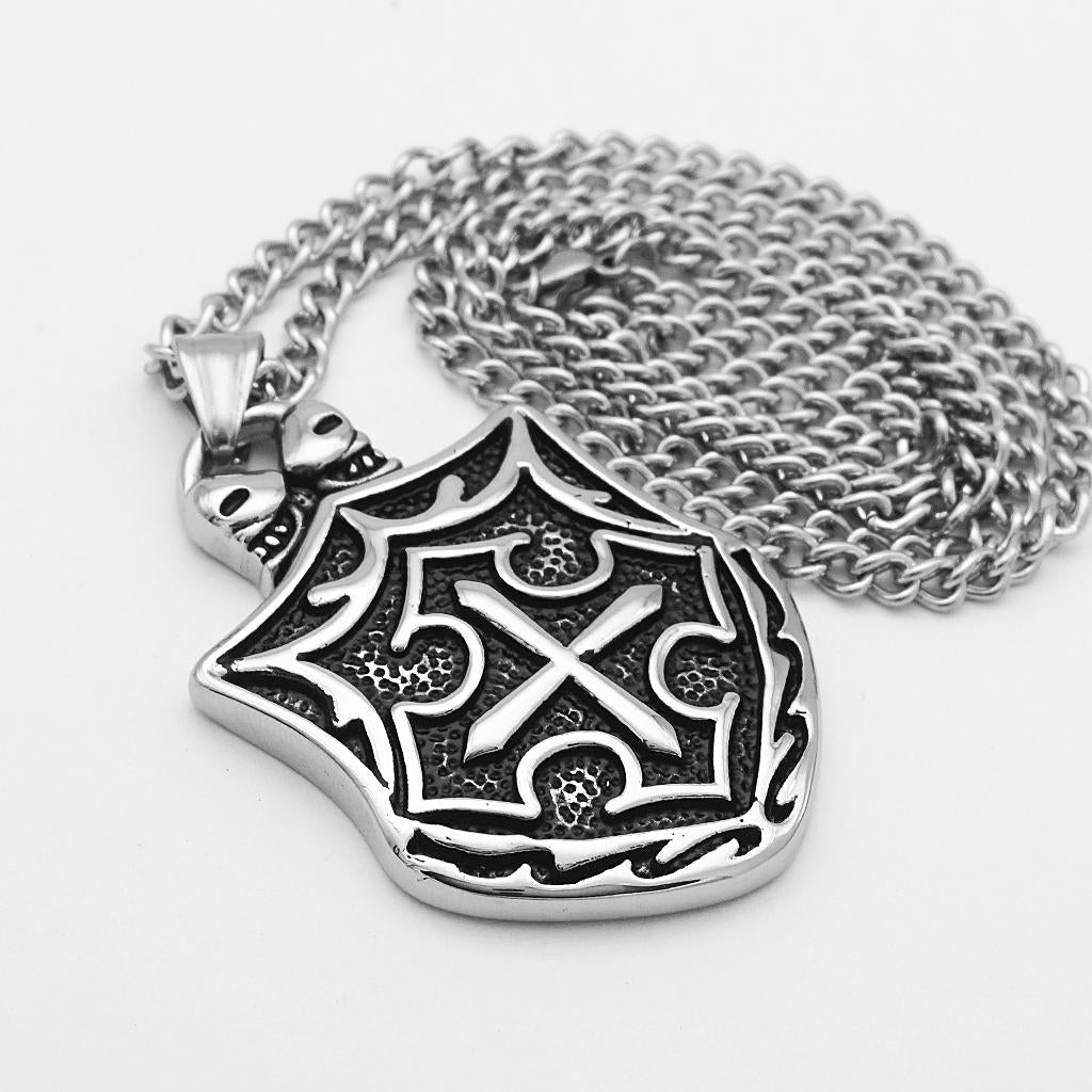 Vintage silver celtic gothic punk fashion cross skull pattern shield design,