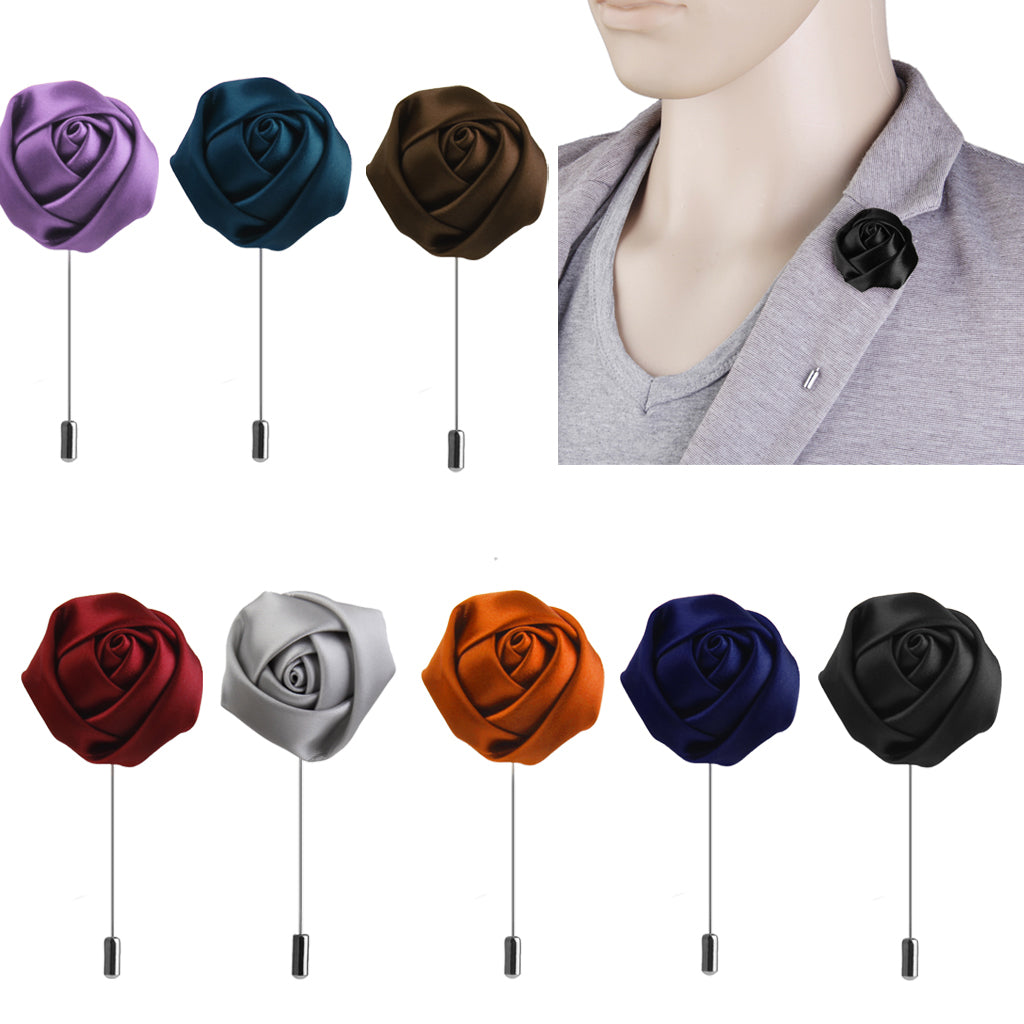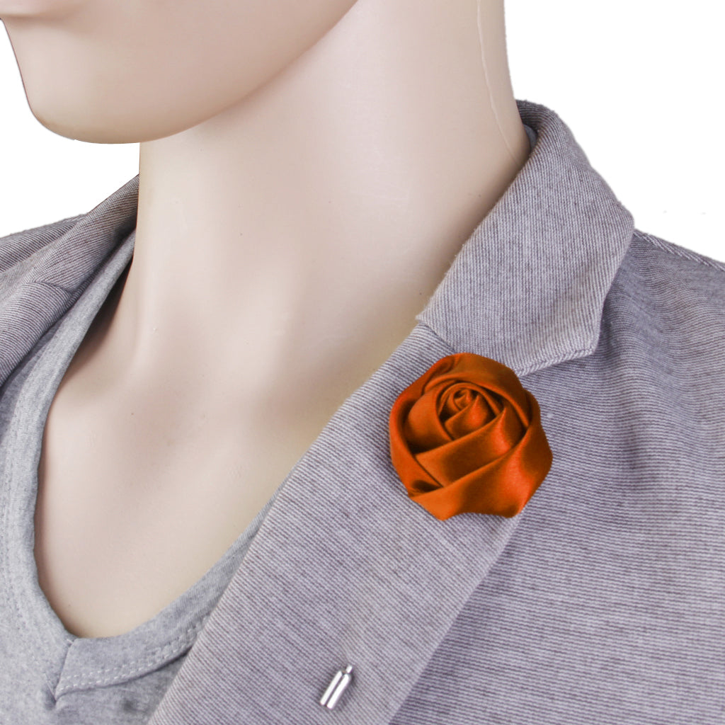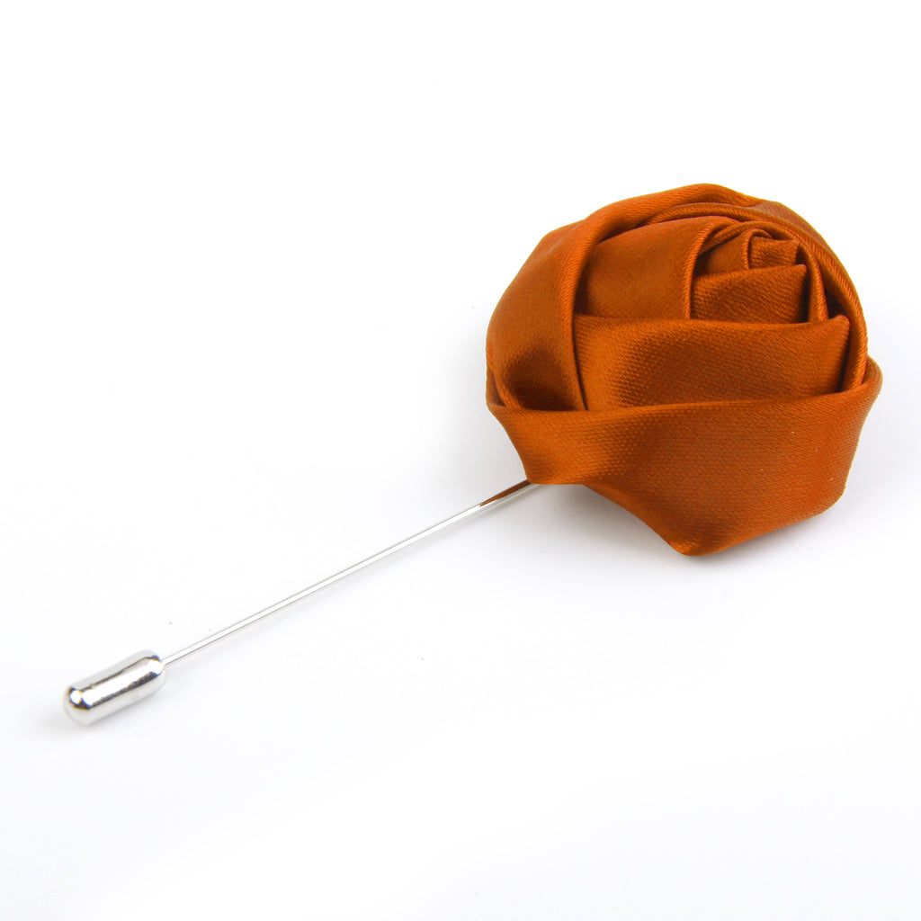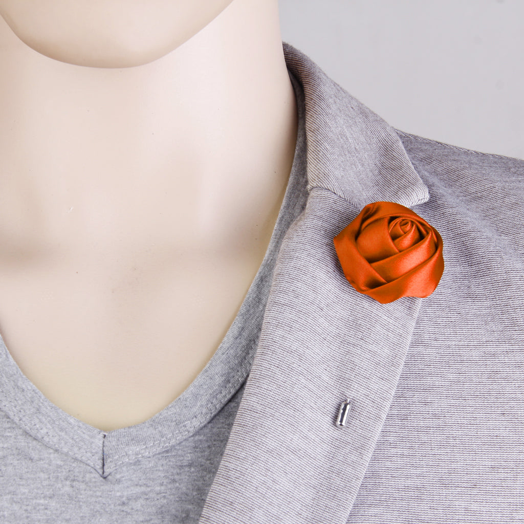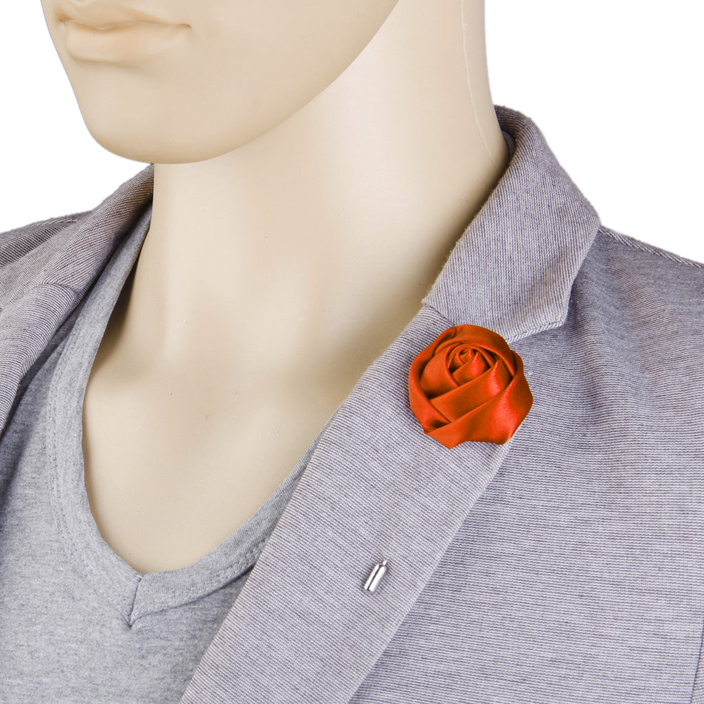 Handmade Polyester Men Boutonniere Brooch Pin Lapel Flower Clothing Decor Orange