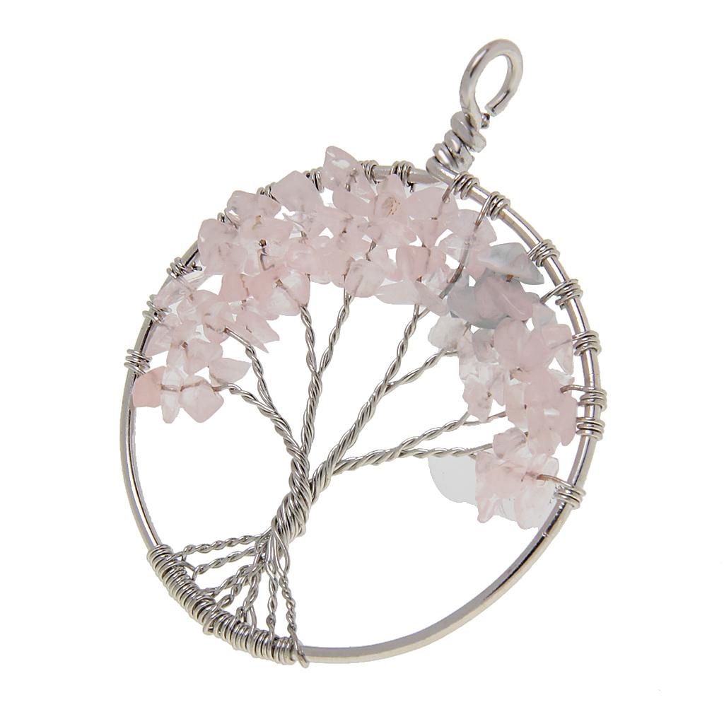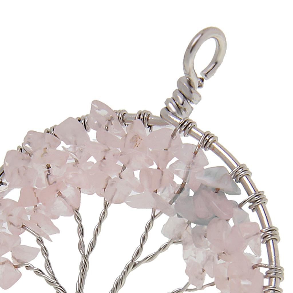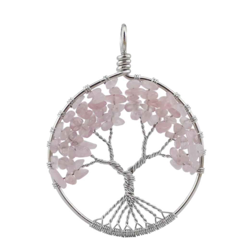 Handmade Tree of Life Pendant Rose Quartz Bead Copper Wire Wrapped Jewelry