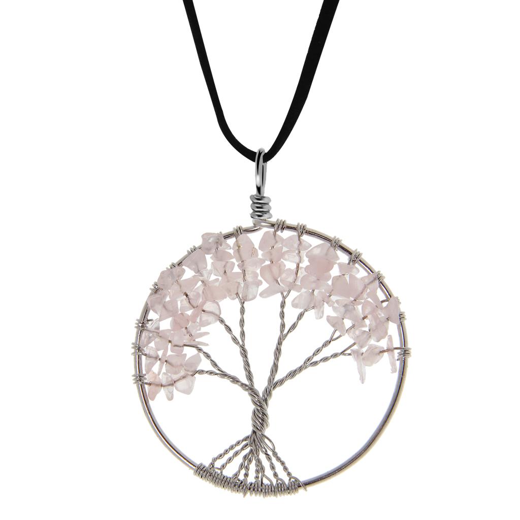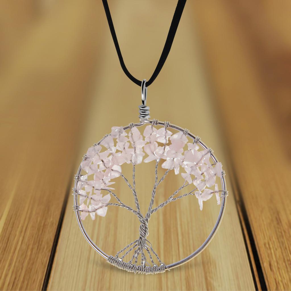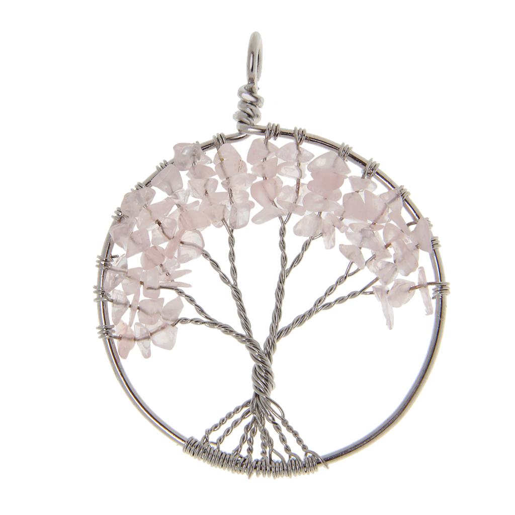 Handmade Tree of Life Pendant Rose Quartz Bead Copper Wire Wrapped Jewelry
