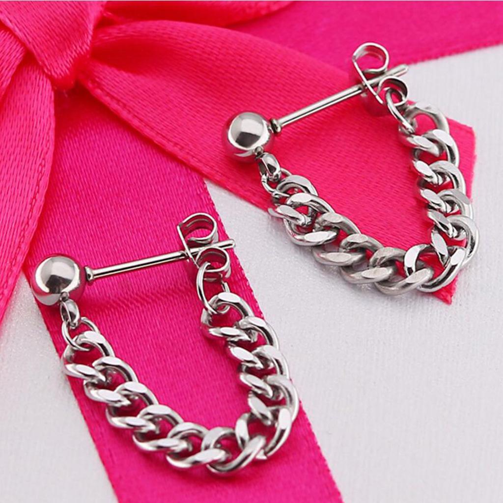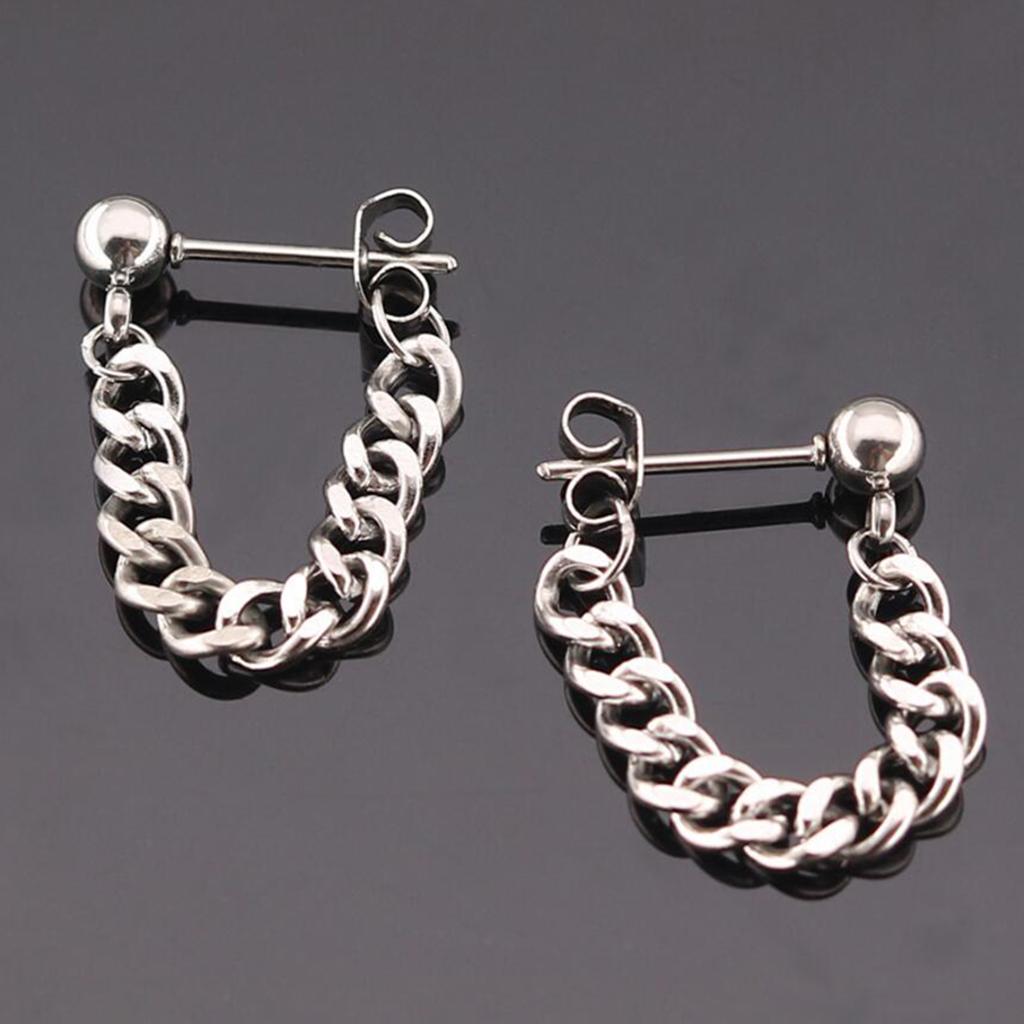 Hip Hop Stainless Steel Tassl Chain Dangle Earrings, Great Gift for Friend, Lovers, Family, etc.