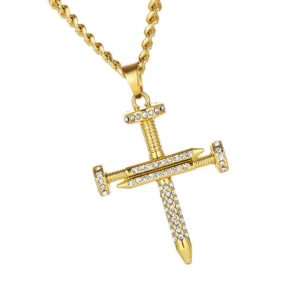Hip Hop Women Men's Crystal Rhinestone Cross Pendant Necklace Chain Jewelry